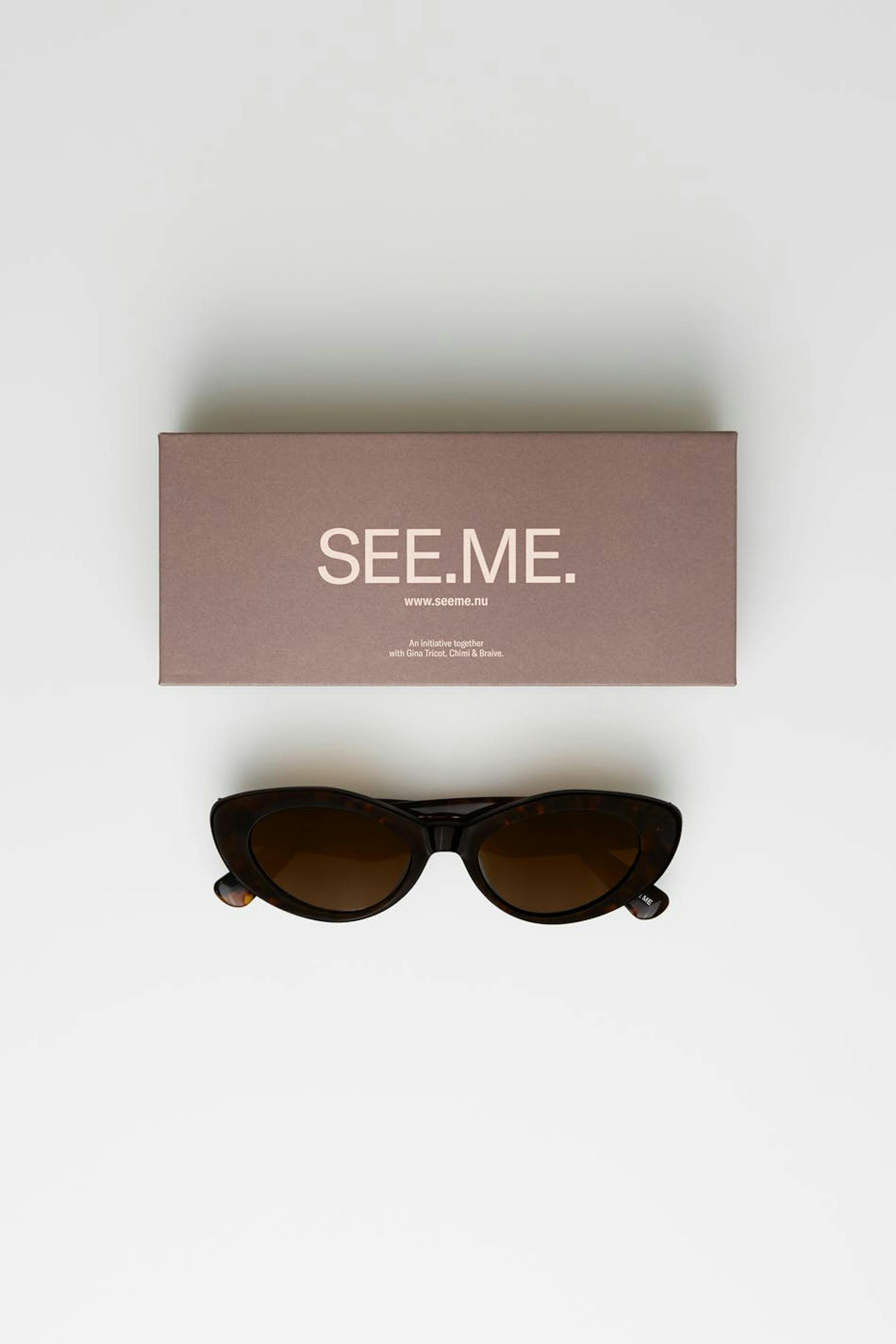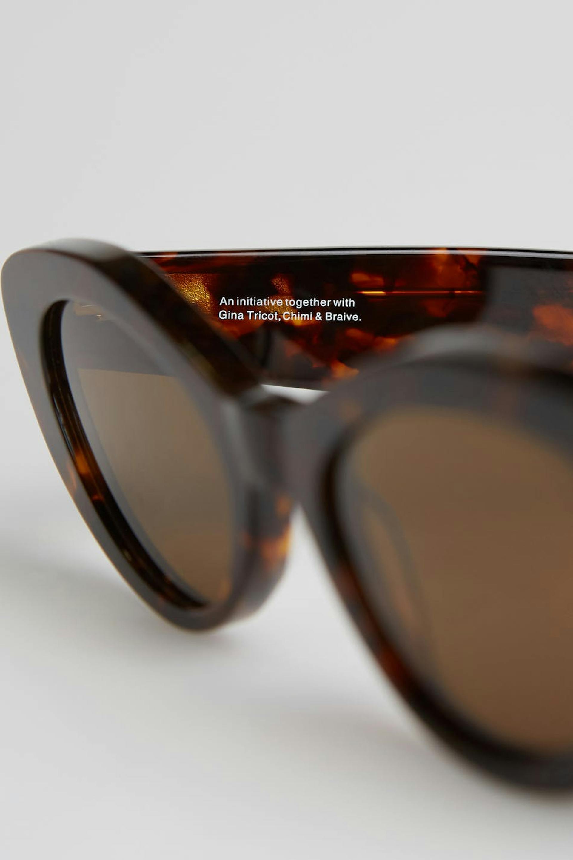 Chimi X Gina tricot. Aurinkolasit yhteistyössä Chimi & Braive:n kanssa. Muodikas aurinkolasit. Aurinkolasit on ruskea.