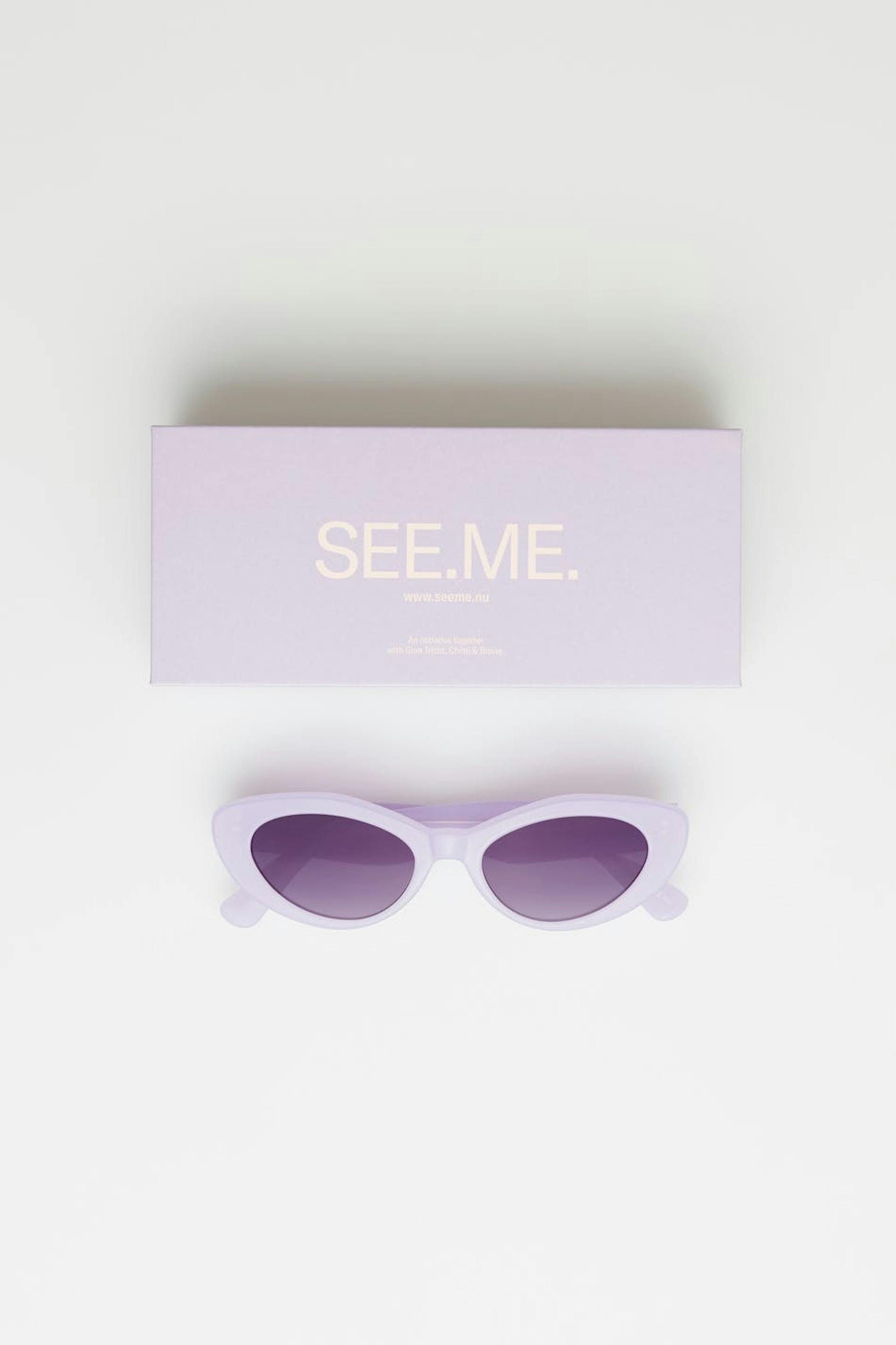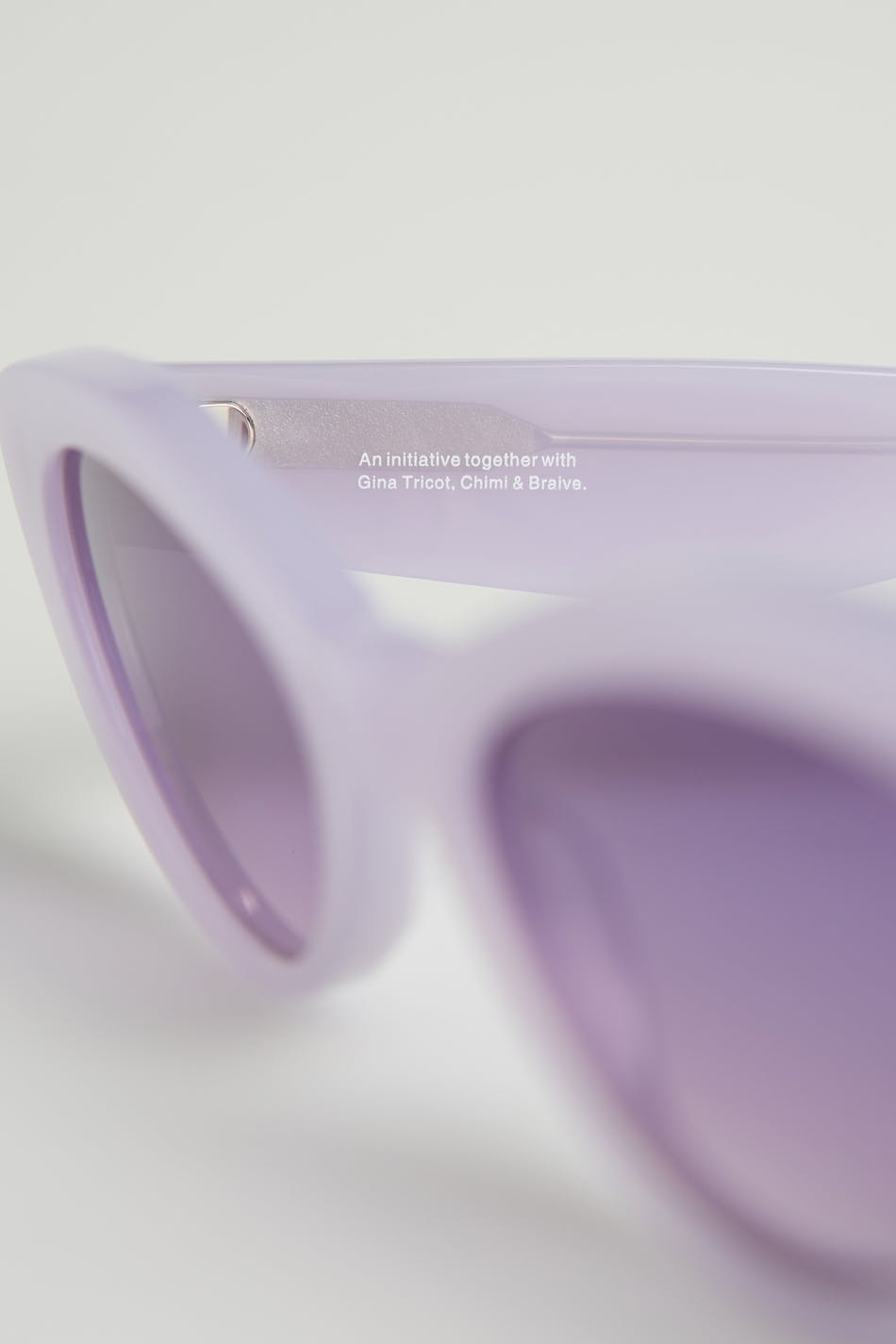 Chimi X Gina tricot. Aurinkolasitit yhteistyössä Chimi & Braive:n kanssa. Muodikkaat aurinkolasitit. Aurinkolasitit ovat liiloja.