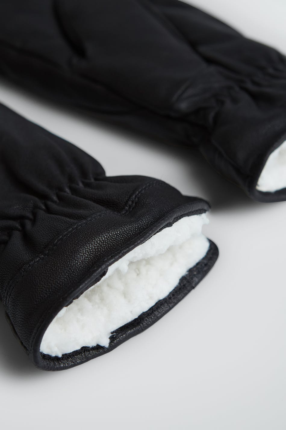 Kromittomat lapaset. Lapaset ovat mustia. Ne valmistetaan nahasta.