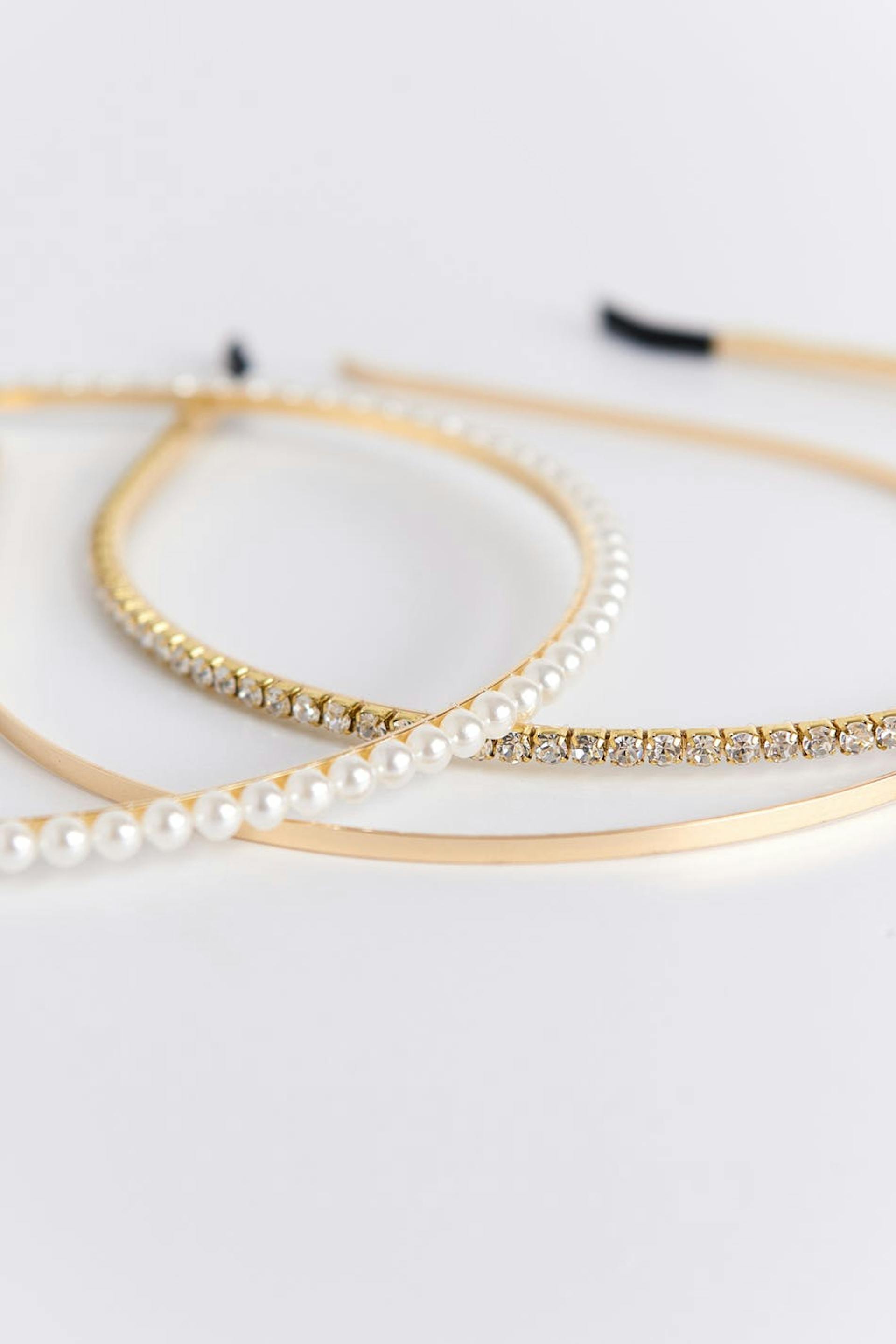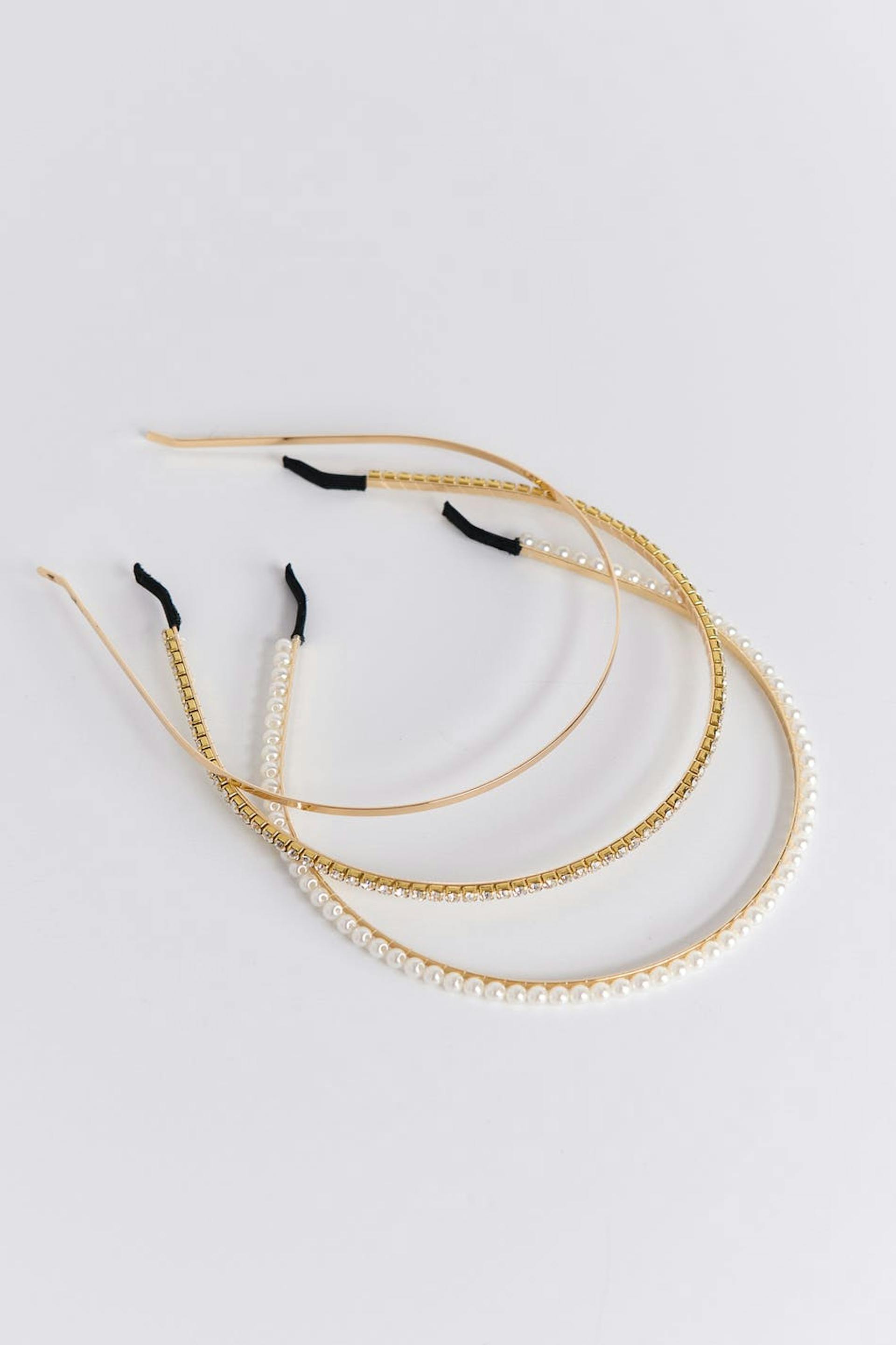 Ohuet hiuspannat eri malleissa. Hiuspannat ovat kultaisia.