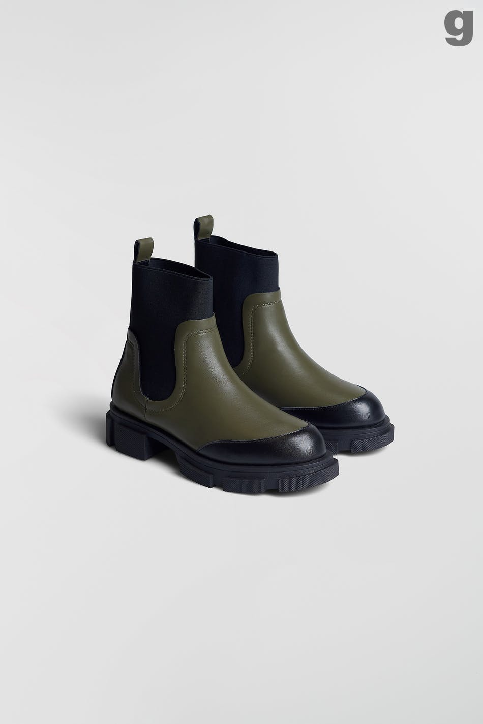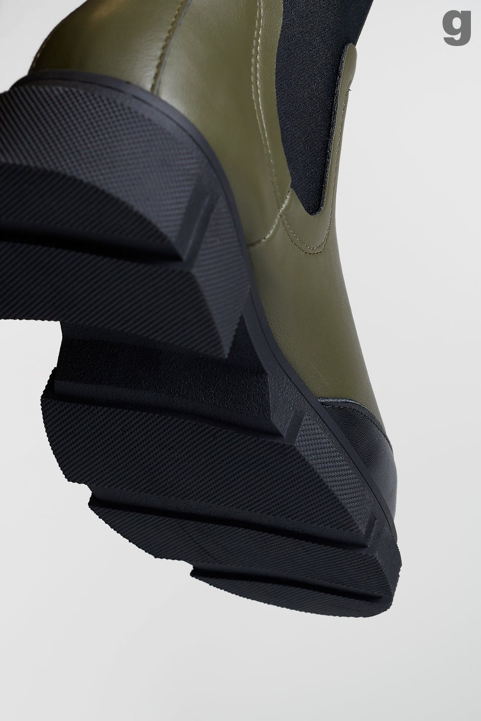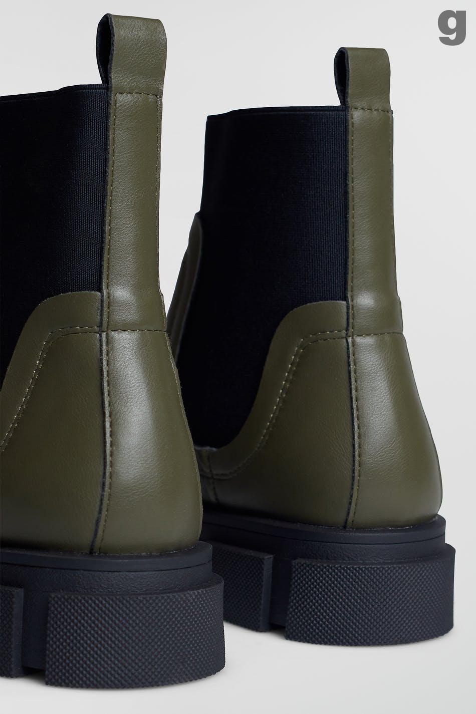 Matalat nilkkurit paksulla muotoilulla. Nilkkurit ovat vihreitä ja niissä on mustat yksityiskohdat. Niissä on resori sivuissa ja paksut pohjat.