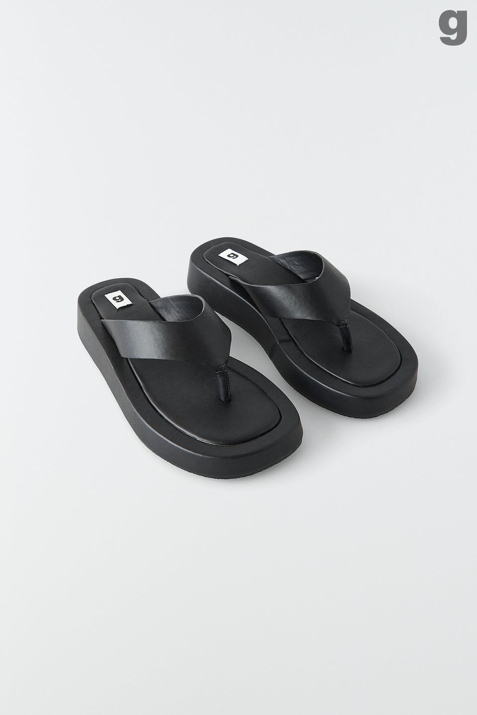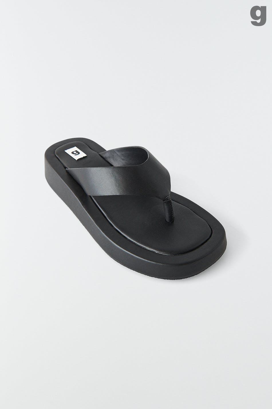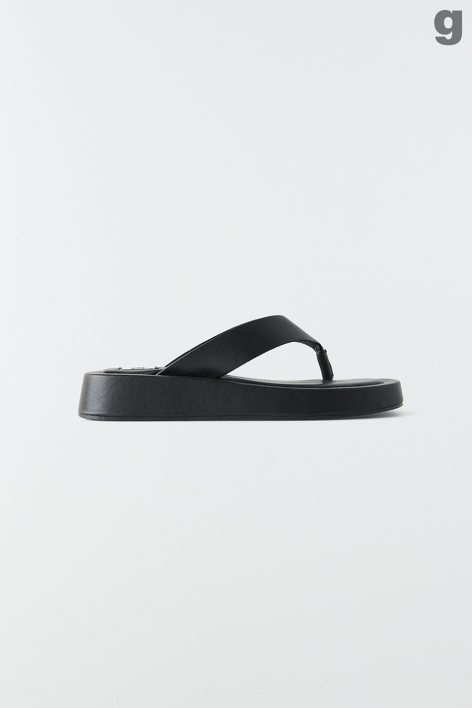 Sandaali platform-pohjalla. Sandaali on musta ja siinä on varvasremmi PU:sta.