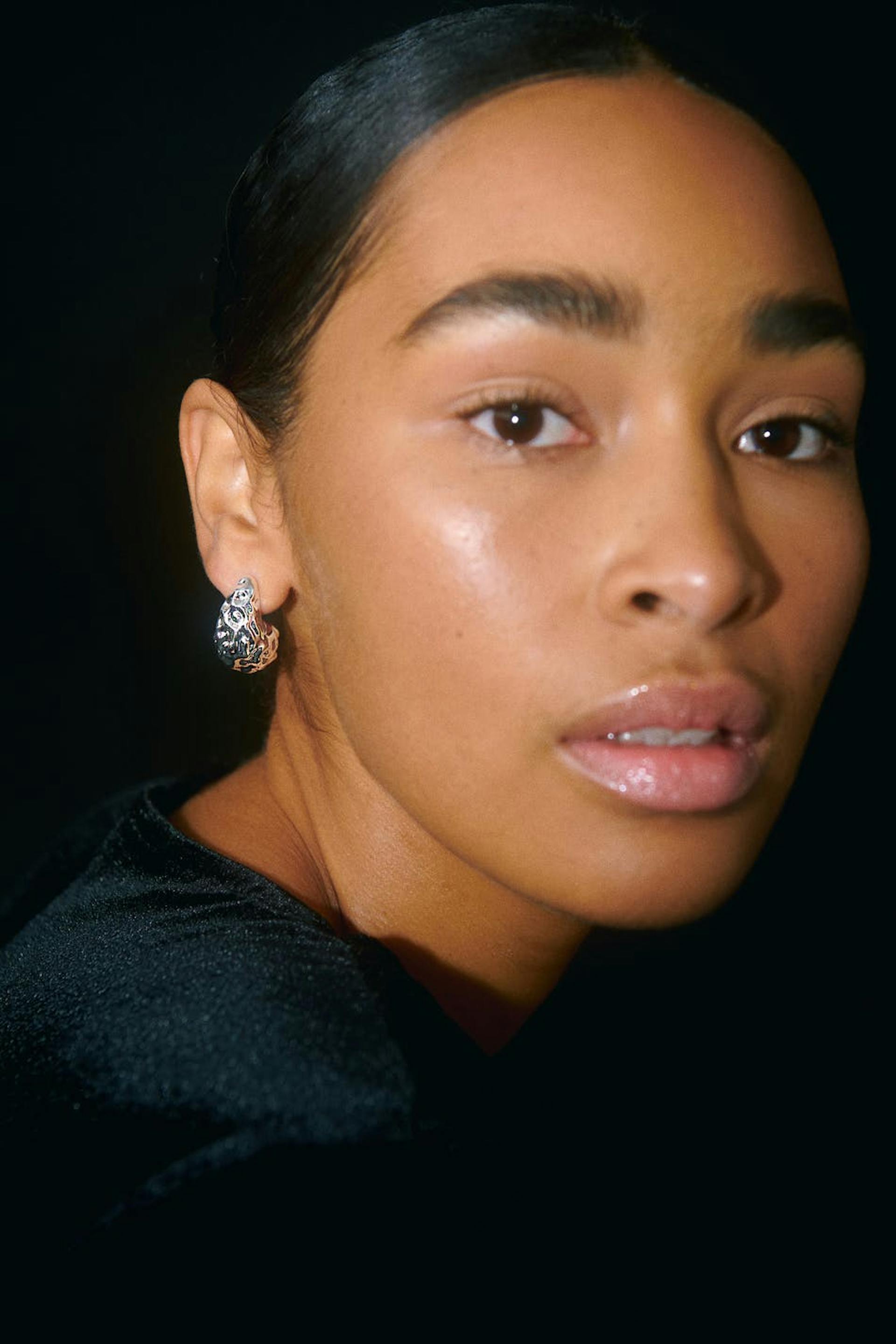 Crinkled silver drop earrings