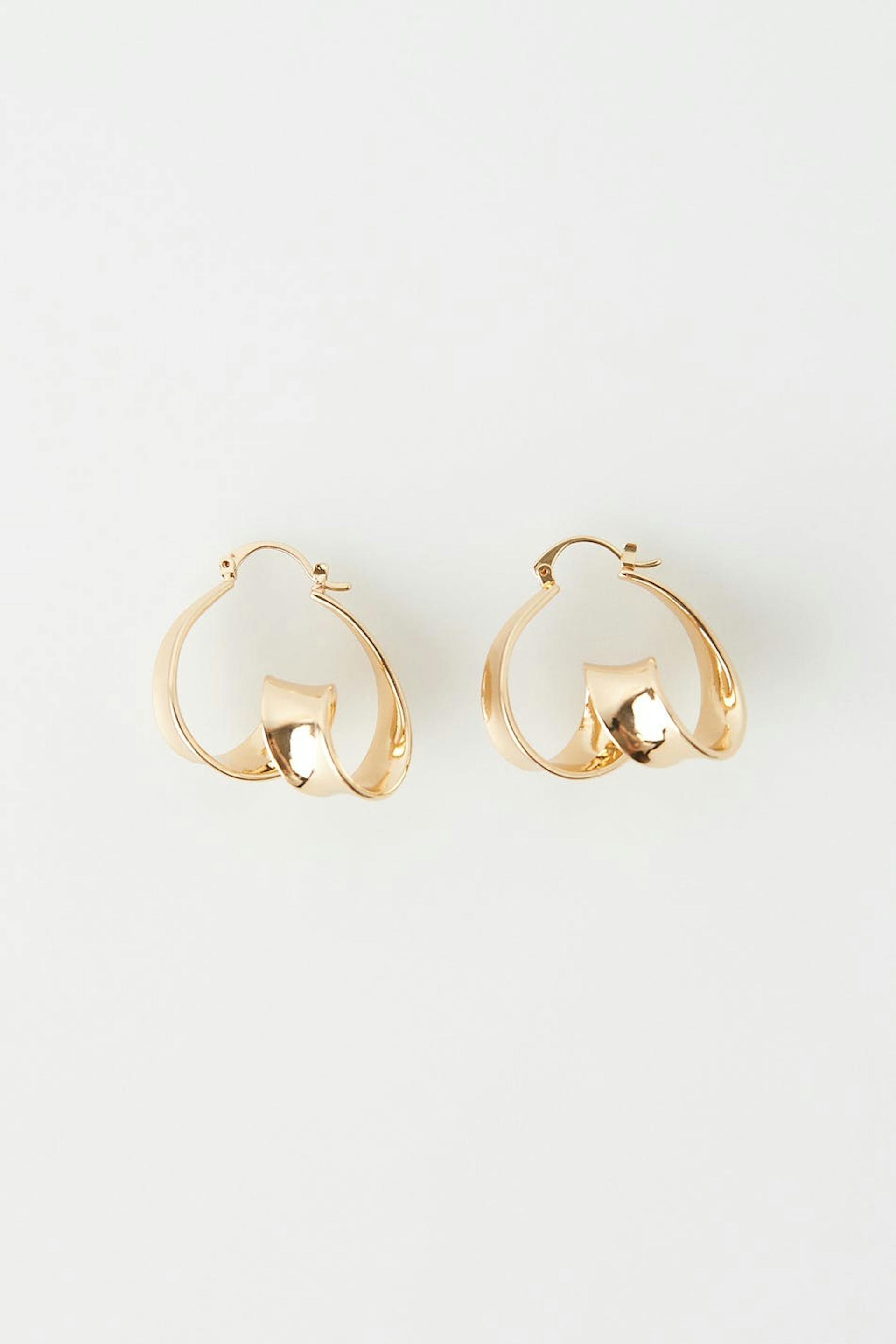 Korvakorut kierteisellä muotoilulla. Korvakorut ovat kultaisia.