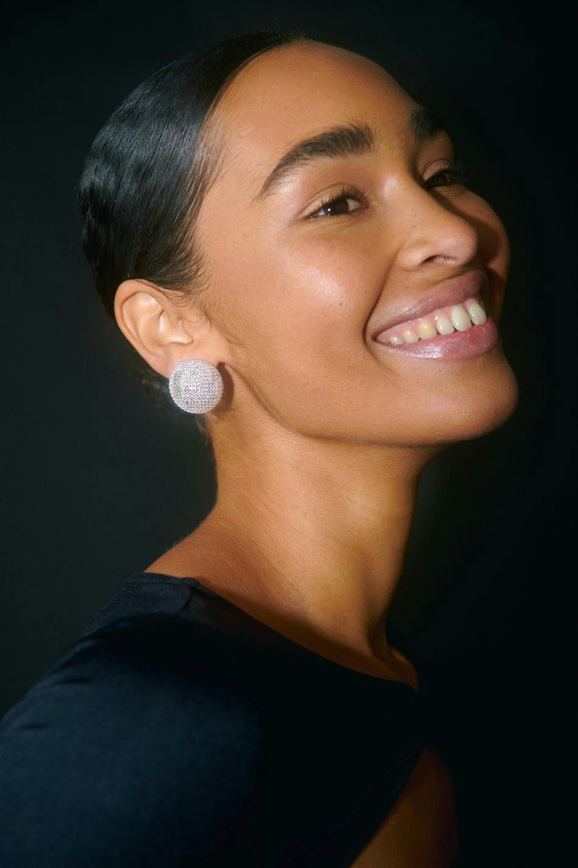 Muli Collection X Gina Tricot. Nikkelivapaat korvakorut 925-sterlinghopeasta tekojalokivellä. Korvakorut ovat hopeoituja ja niissä on pallomuoto.
