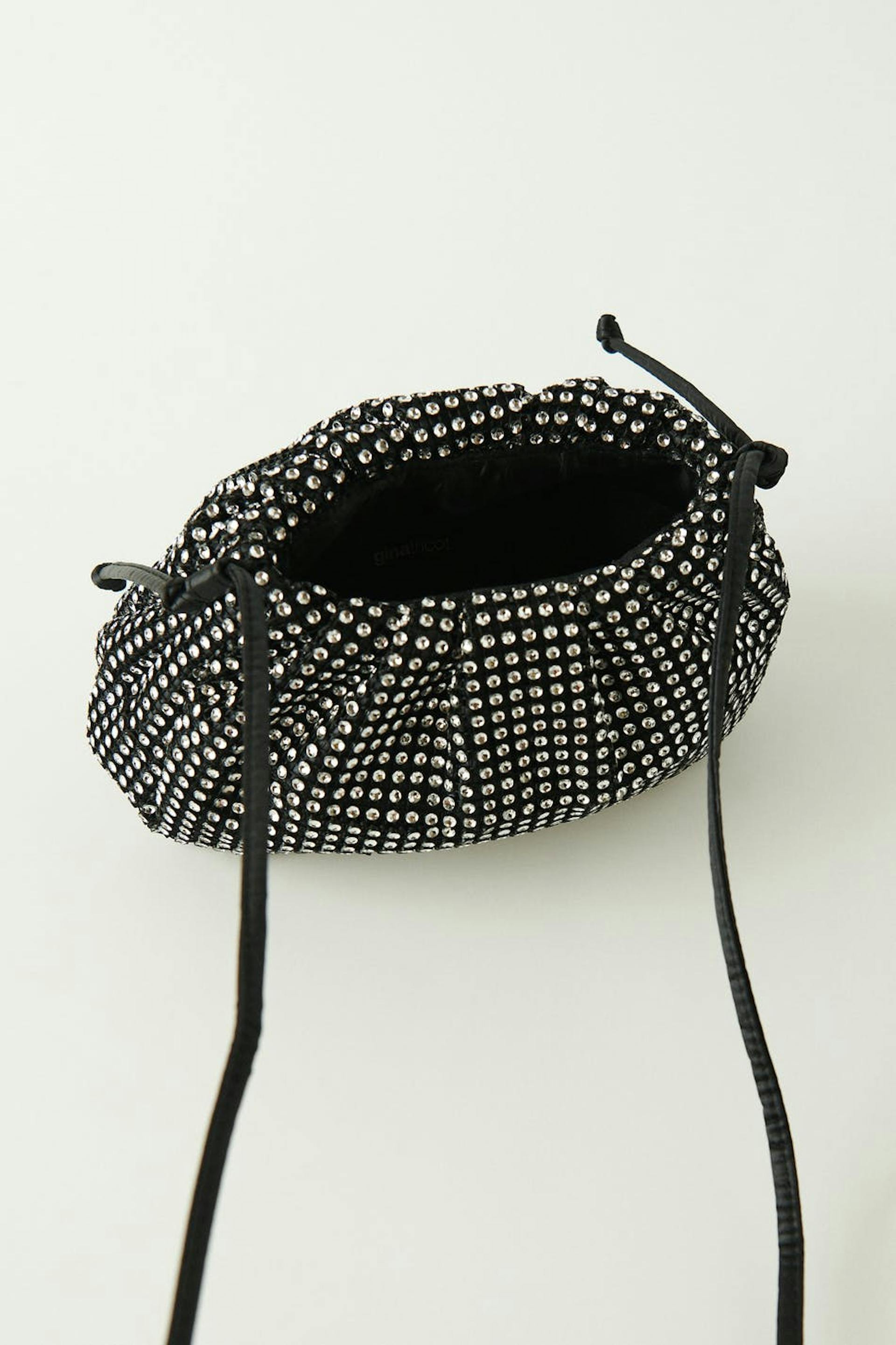 Pieni laukku PU:sta niittiyksityiskohdilla. Laukku on musta ja siinä on ohut olkain.