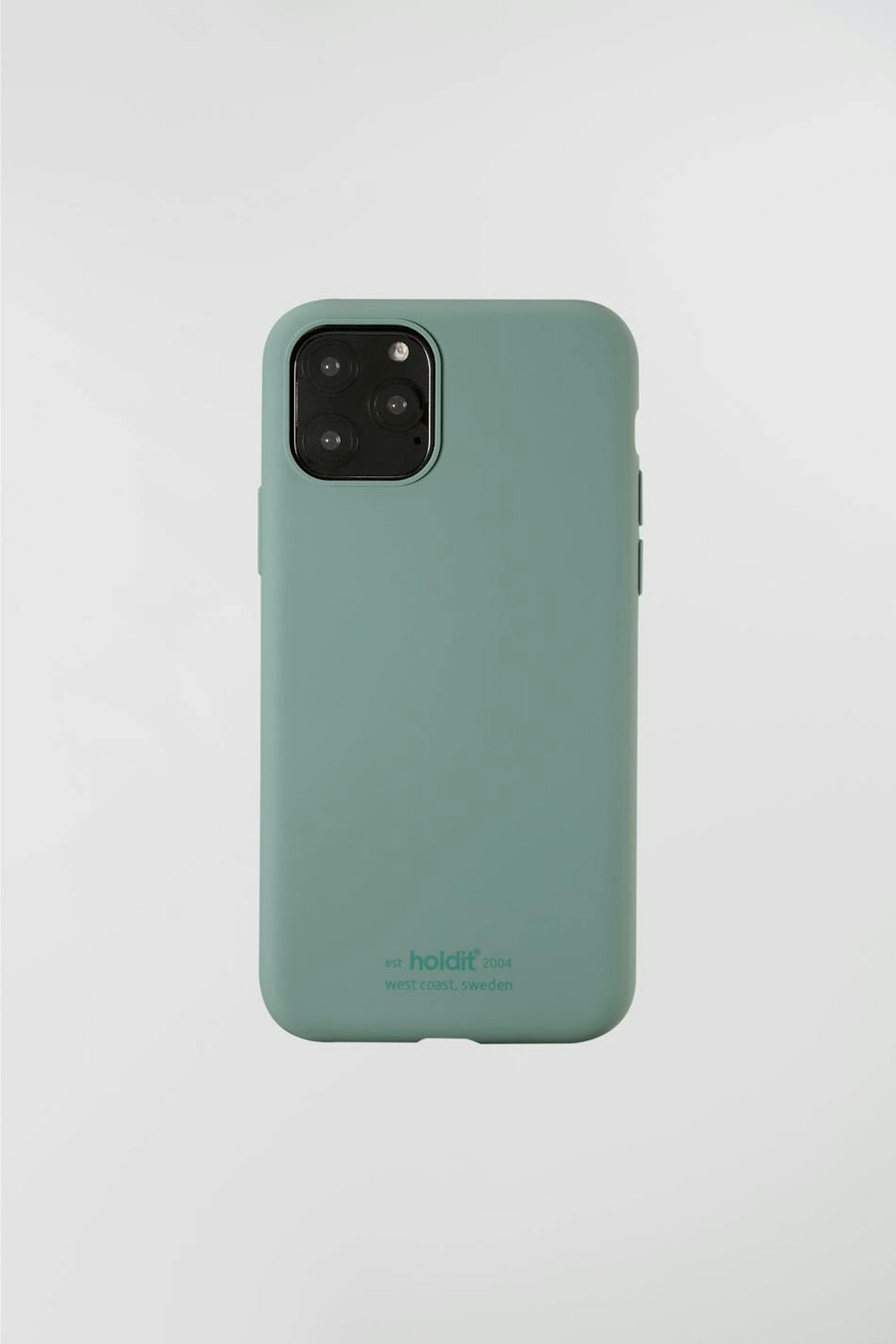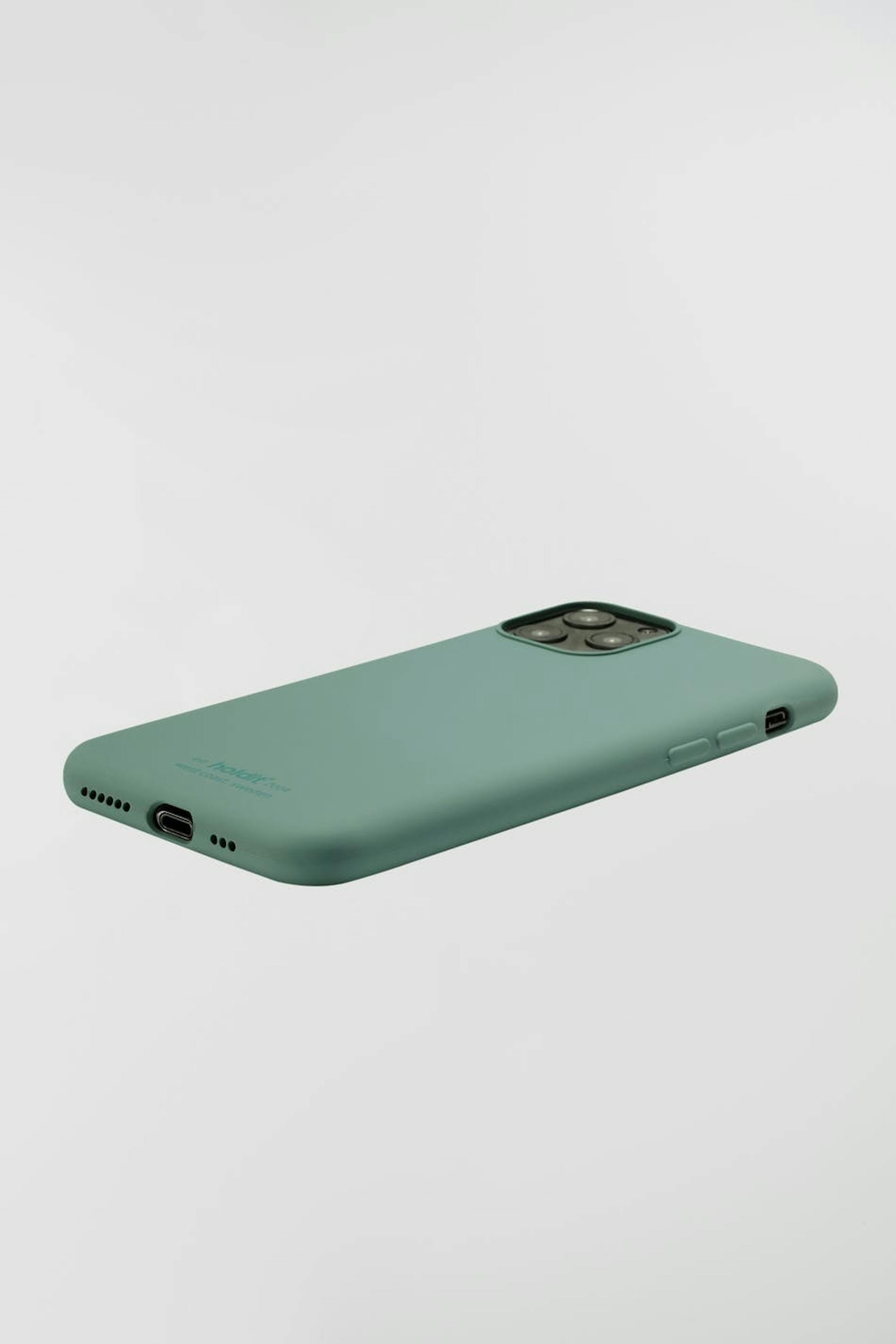 Älypuhelimen suojakuori Holdit-tuotemerkiltä. Älypuhelimen suojakuori on vihreä. Se valmistetaan silikonista. iPhone 12/12 pro.