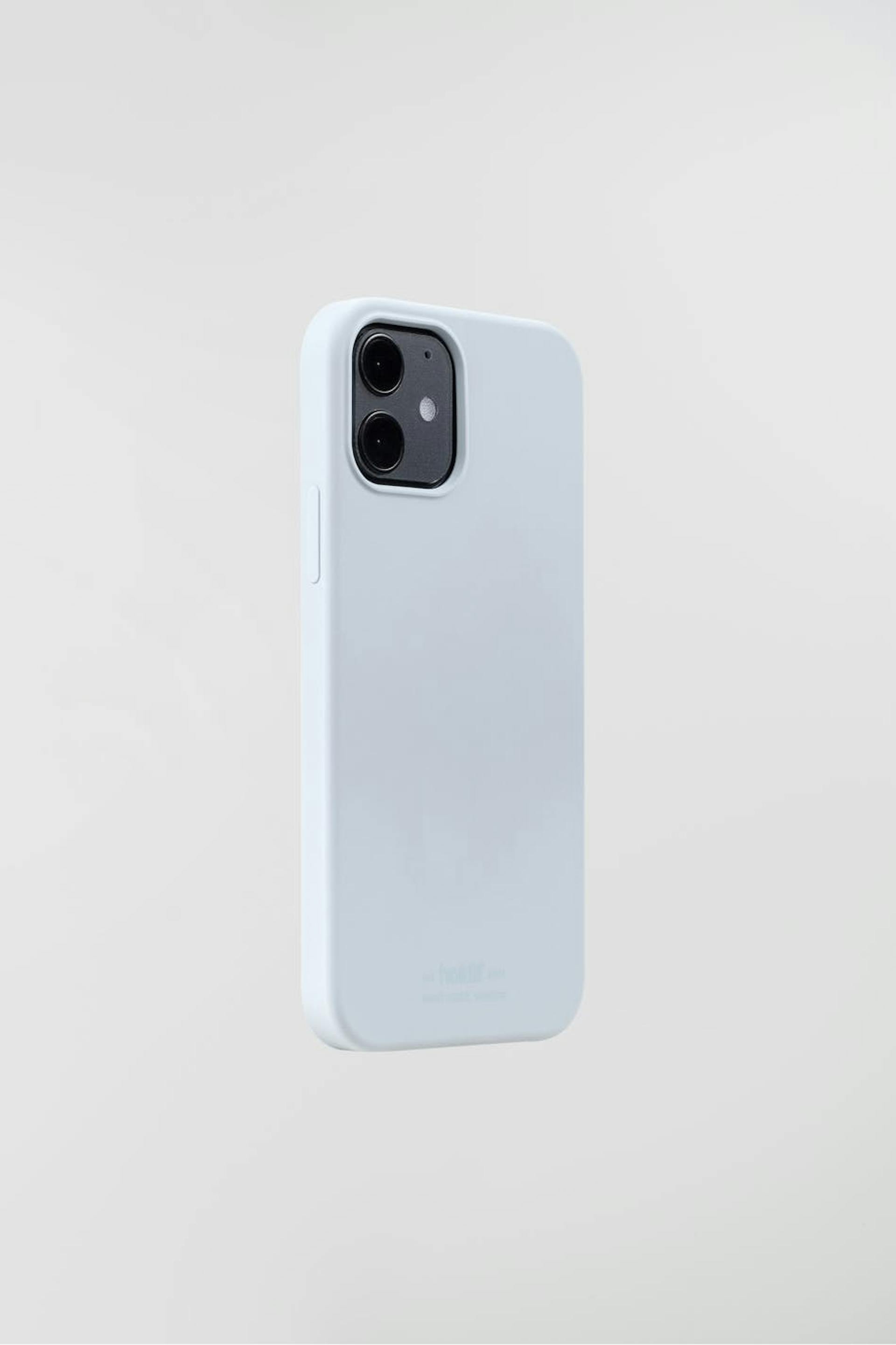 Älypuhelimen suojakuori Holdit-tuotemerkiltä. Älypuhelimen suojakuori on vaaleansininen. Se valmistetaan silikonista. iPhone 11.