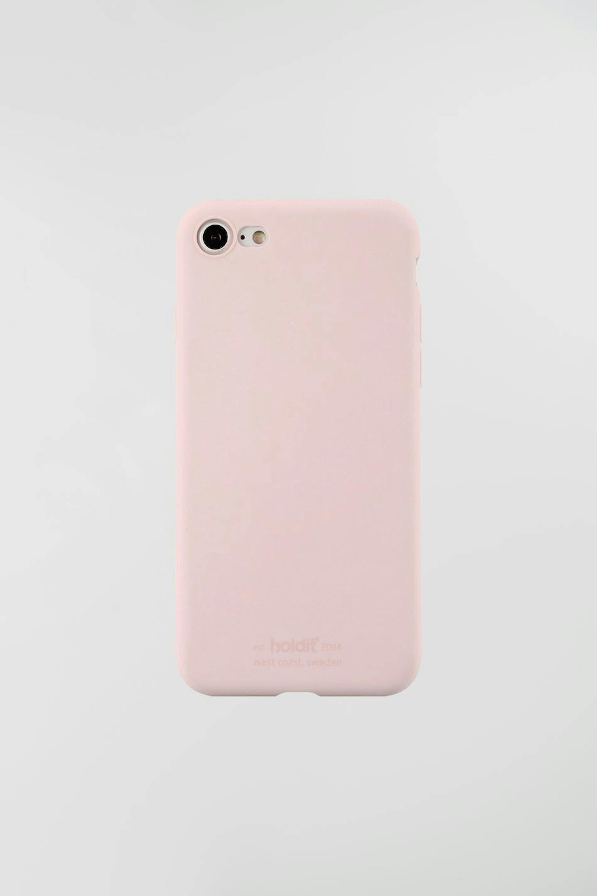 Älypuhelimen suojakuori Holdit-tuotemerkiltä. Älypuhelimen suojakuori on vaaleanpunainen. Se valmistetaan silikonista. iPhone 7/8.