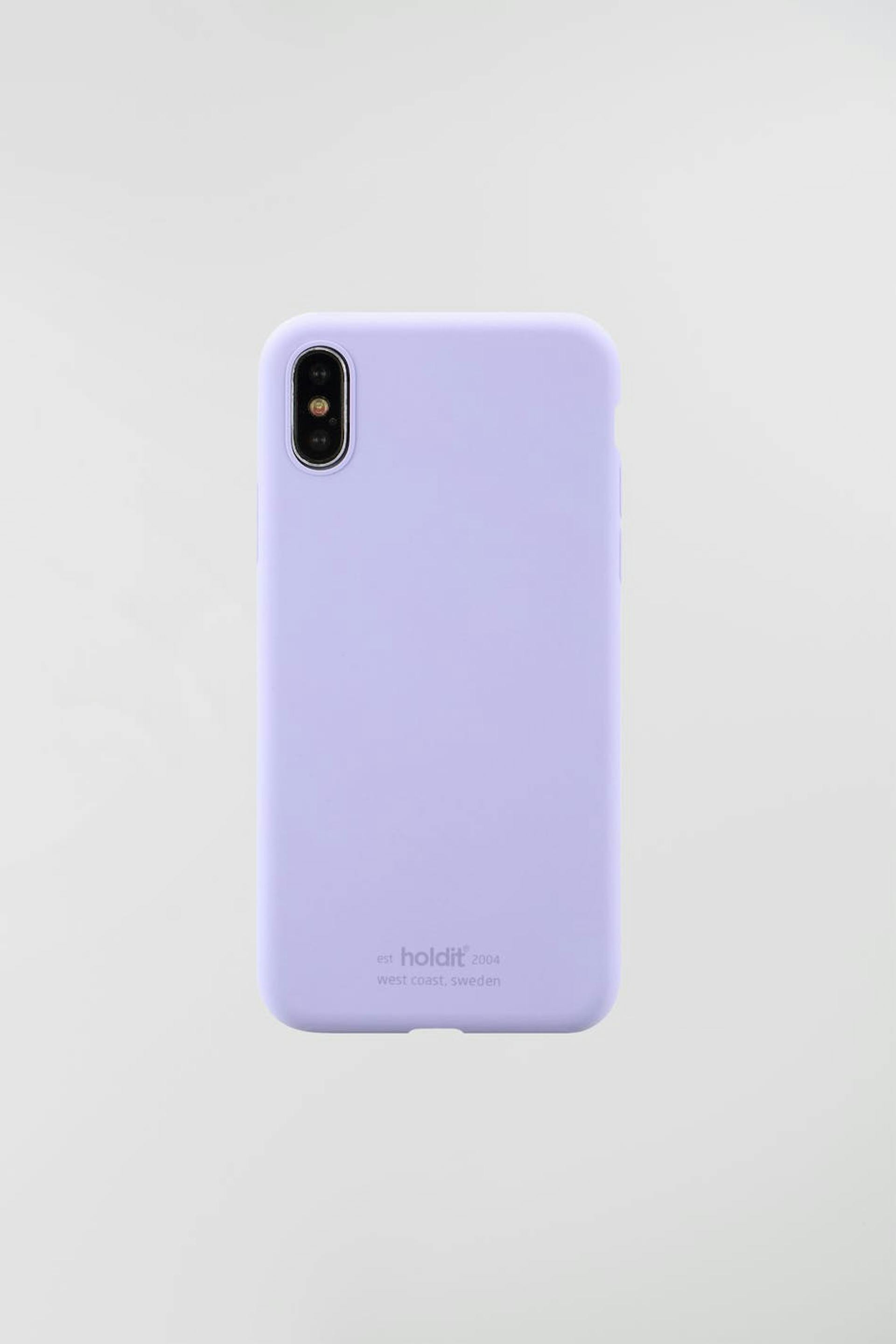 Älypuhelimen suojakuori Holdit-tuotemerkiltä. Älypuhelimen suojakuori on liila. Se valmistetaan silikonista. iPhone X/XS.