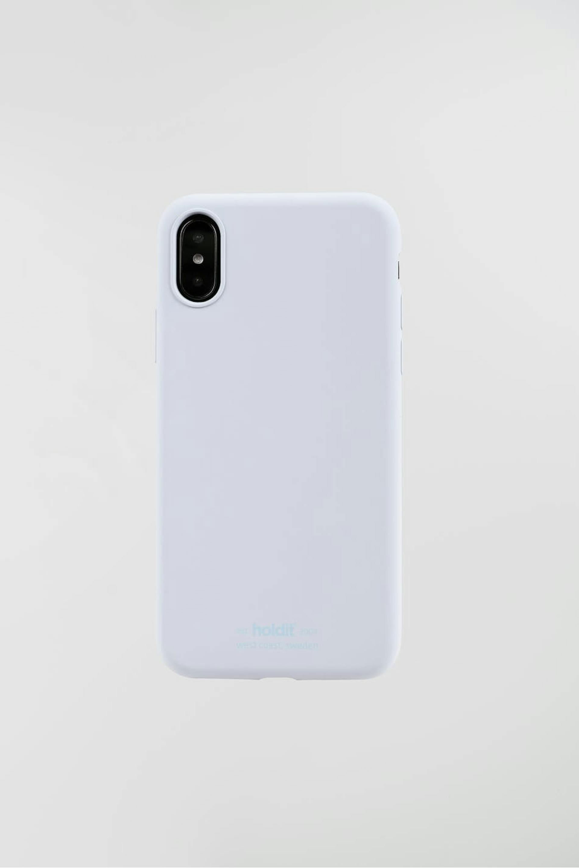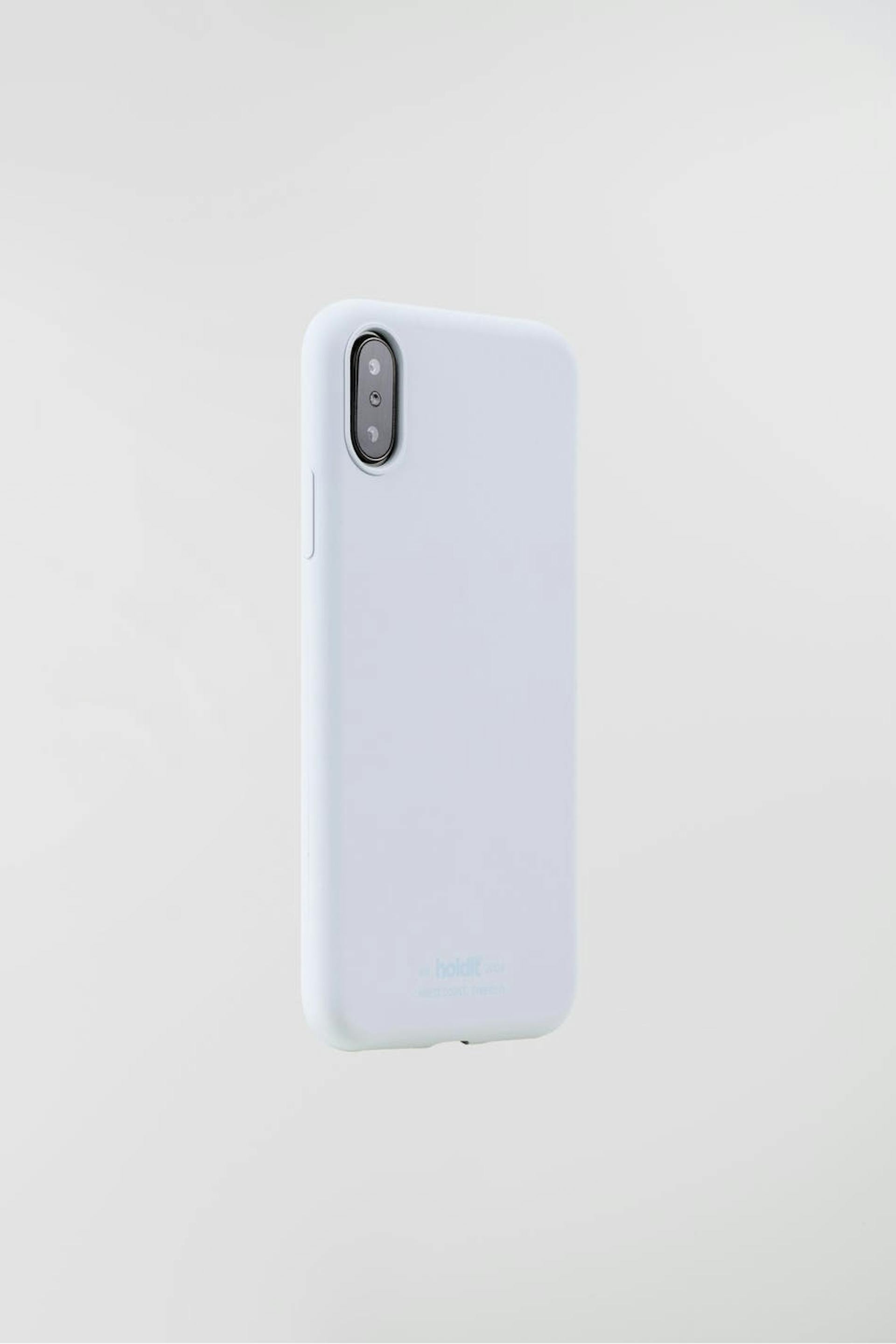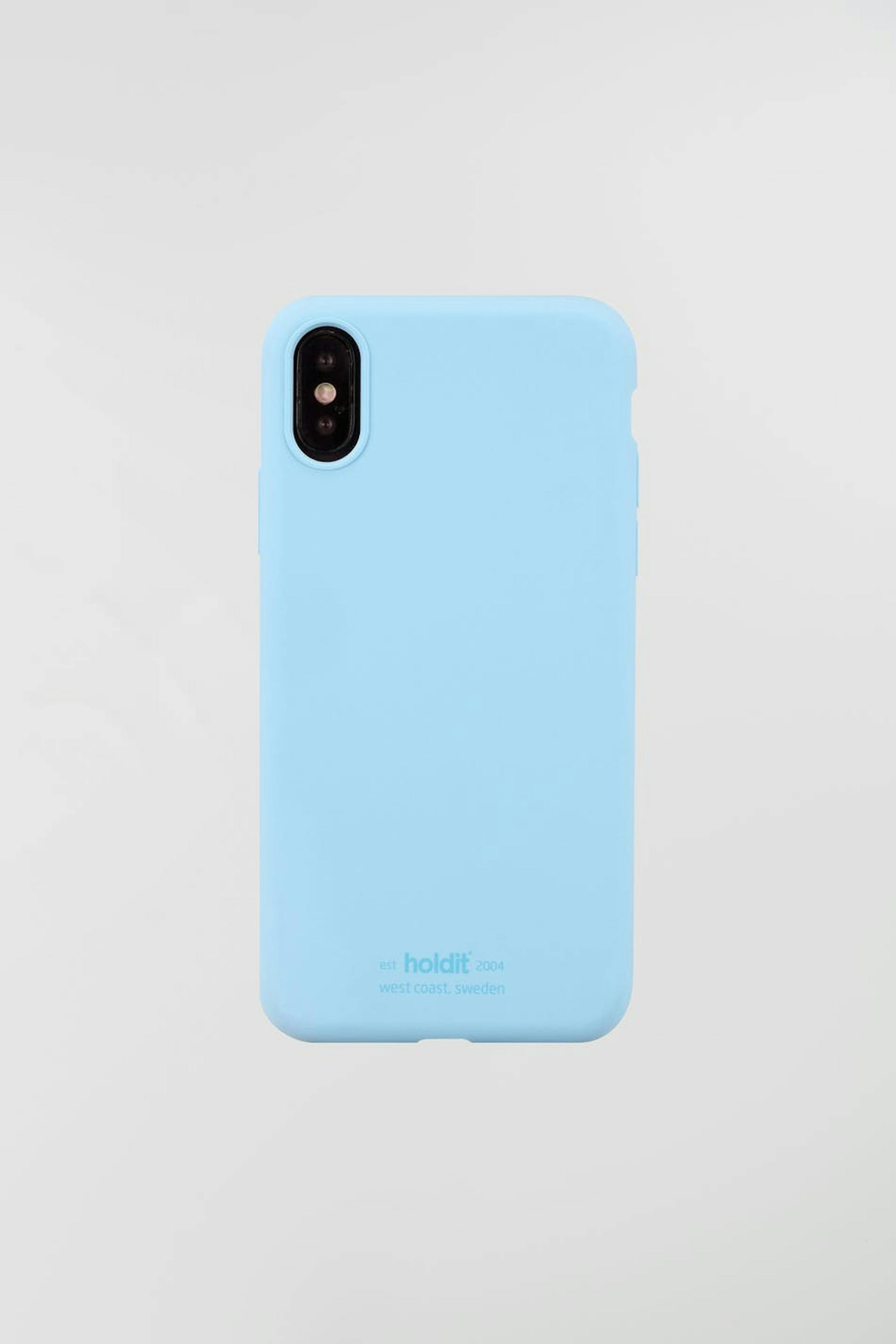 Älypuhelimen suojakuori Holdit-tuotemerkiltä. Älypuhelimen suojakuori on vaaleansininen. Se valmistetaan silikonista. iPhone X/XS.