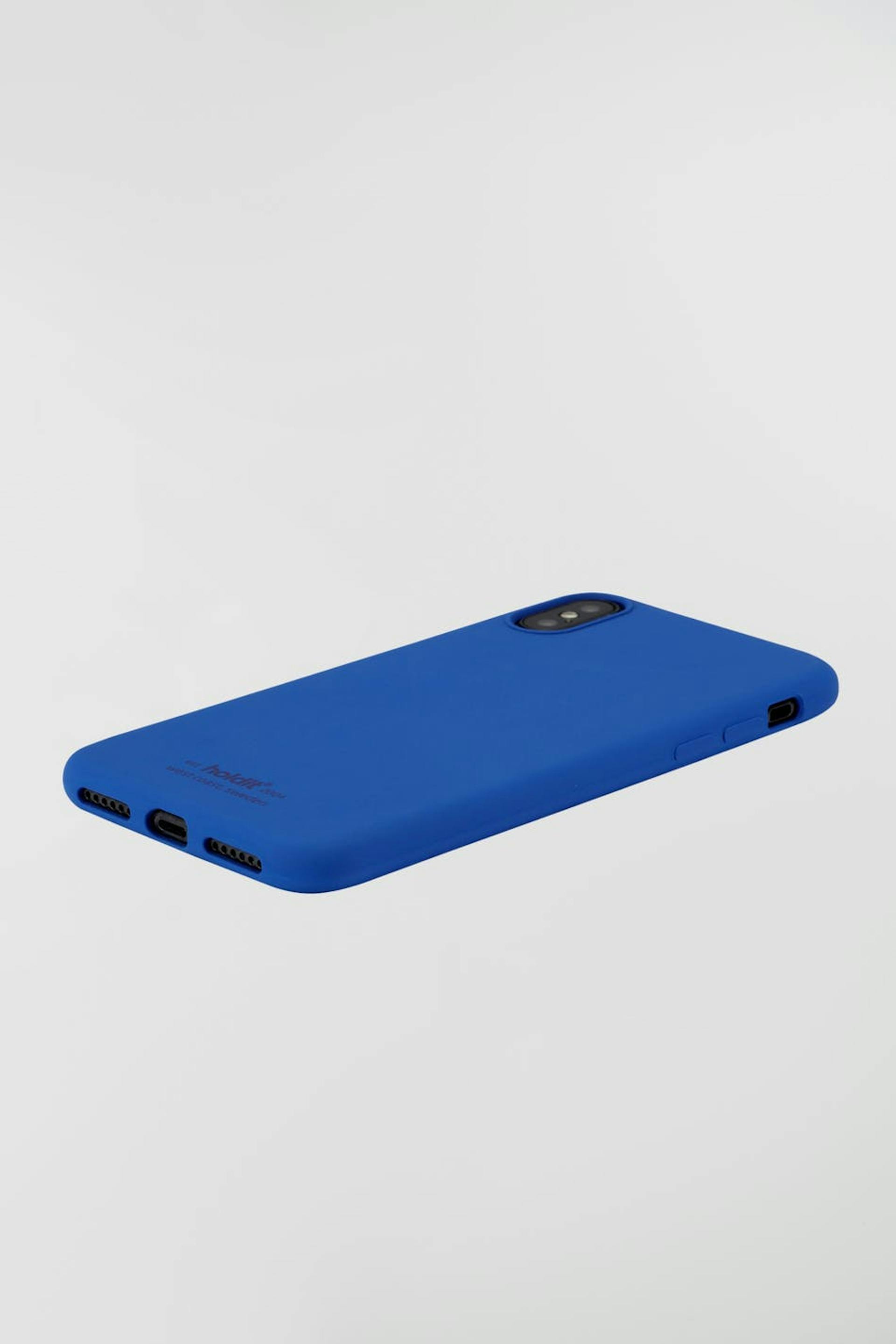 Älypuhelimen suojakuori Holdit-tuotemerkiltä. Älypuhelimen suojakuori on sininen. Se valmistetaan silikonista. iPhone X/XS.