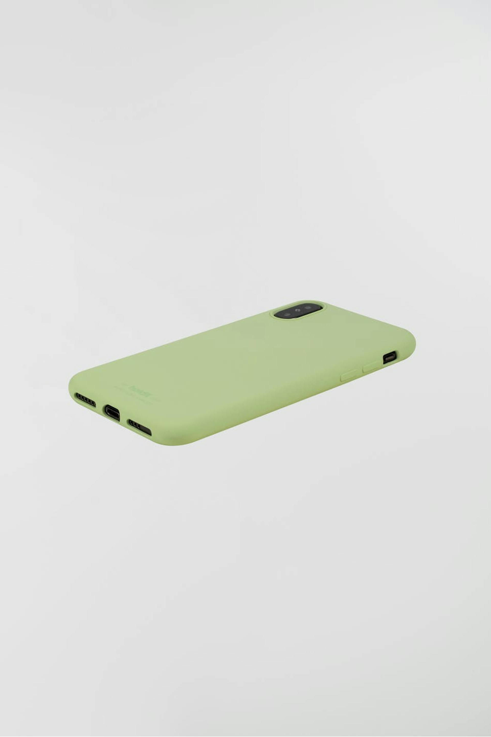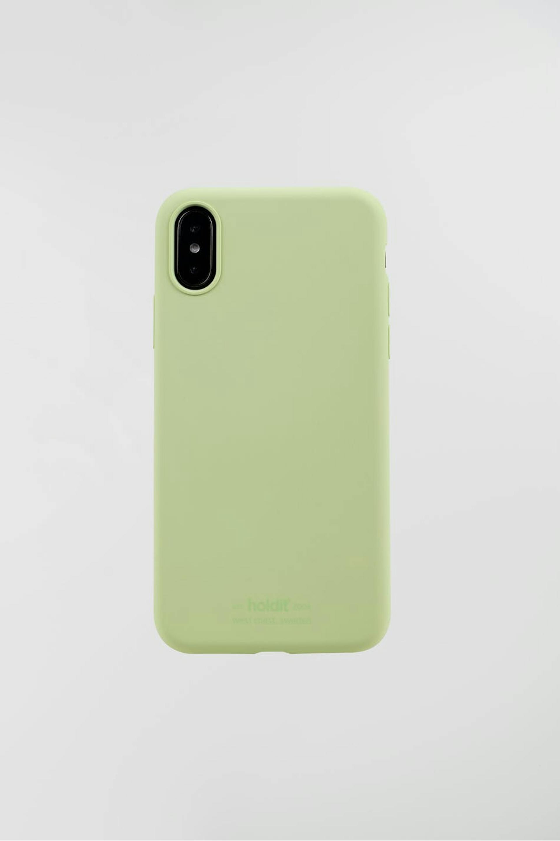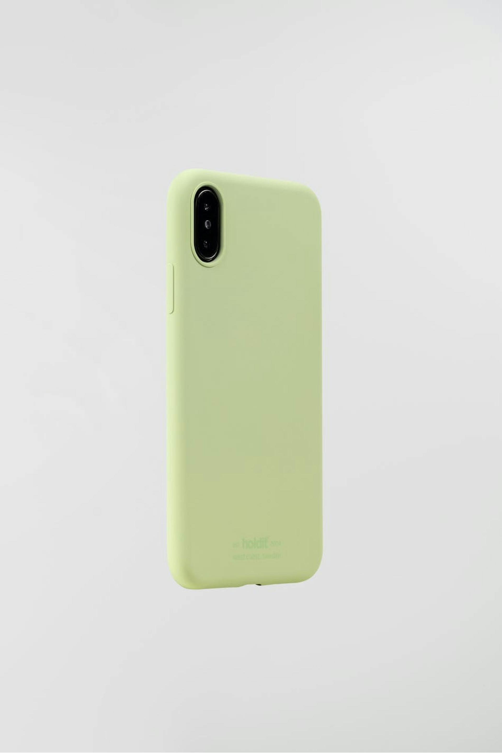 Älypuhelimen suojakuori Holdit-tuotemerkiltä. Älypuhelimen suojakuori on vaaleanvihreä. Se valmistetaan silikonista. iPhone X/XS.