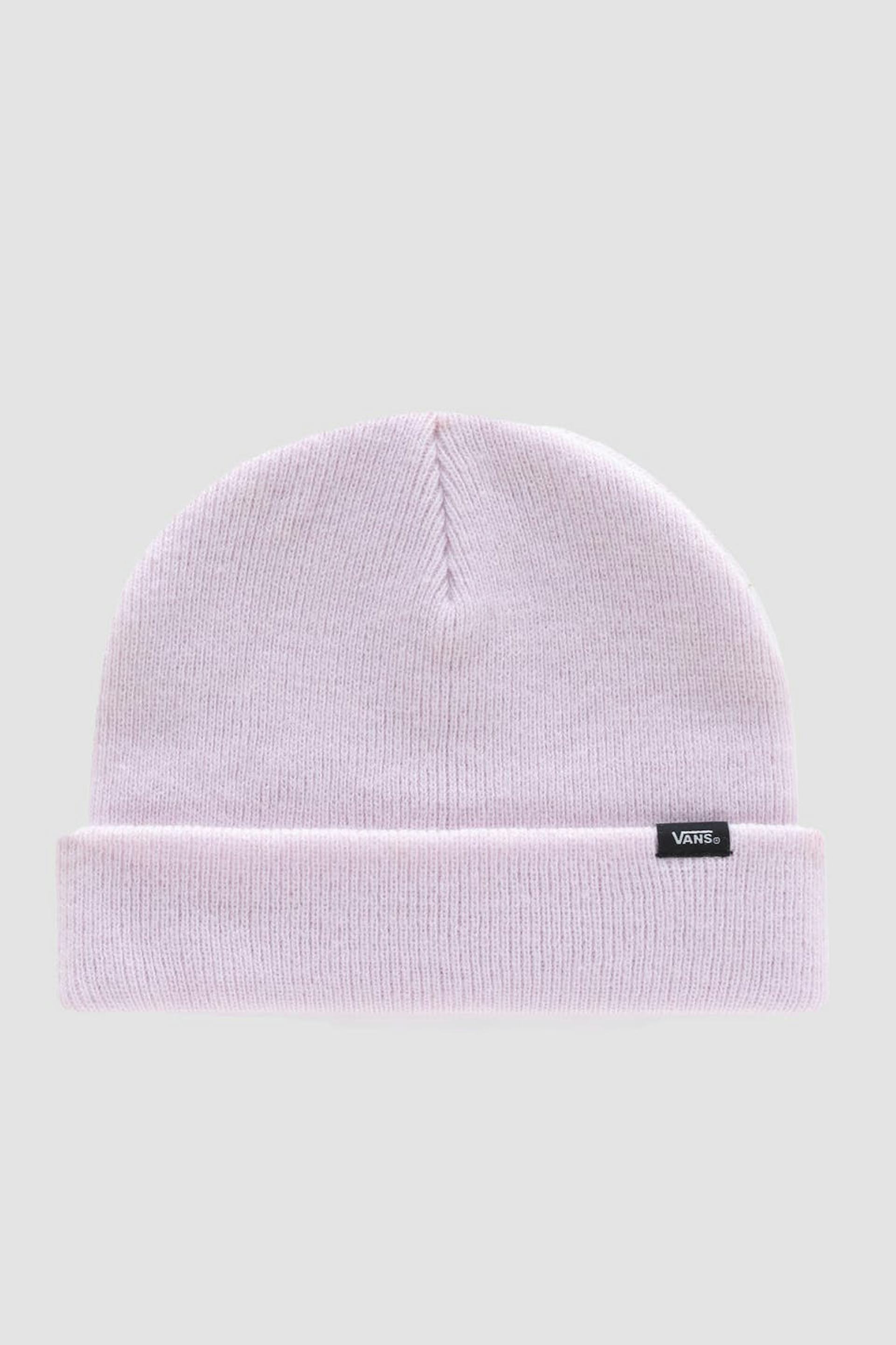 Neulottu pipo Vans-tuotemerkiltä taitetulla reunalla. Pipo on liila.