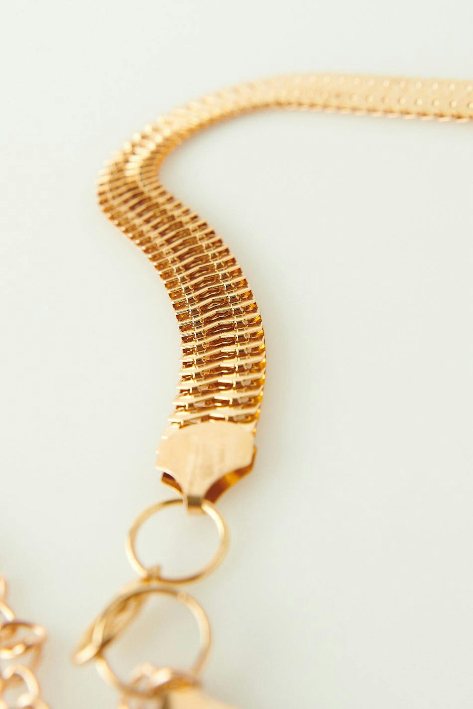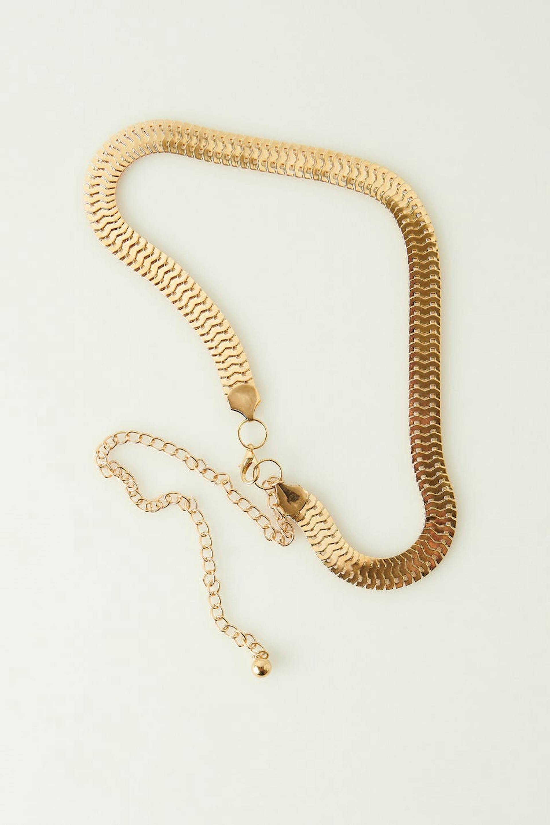 Ketjuvyö metallista kultaisella huolittelulla.