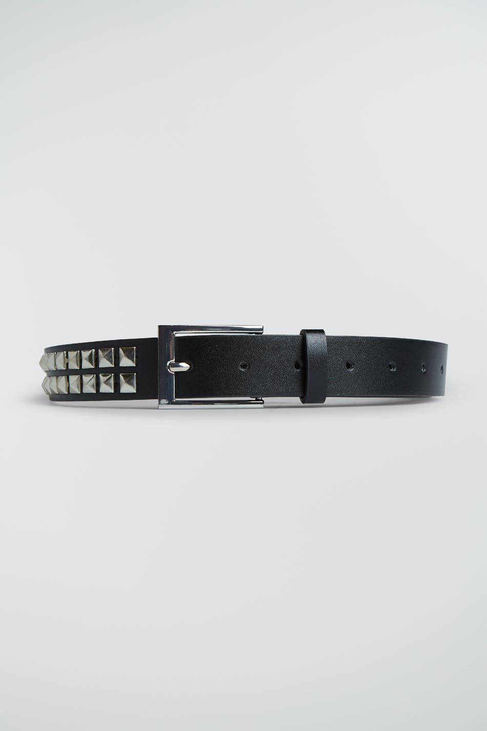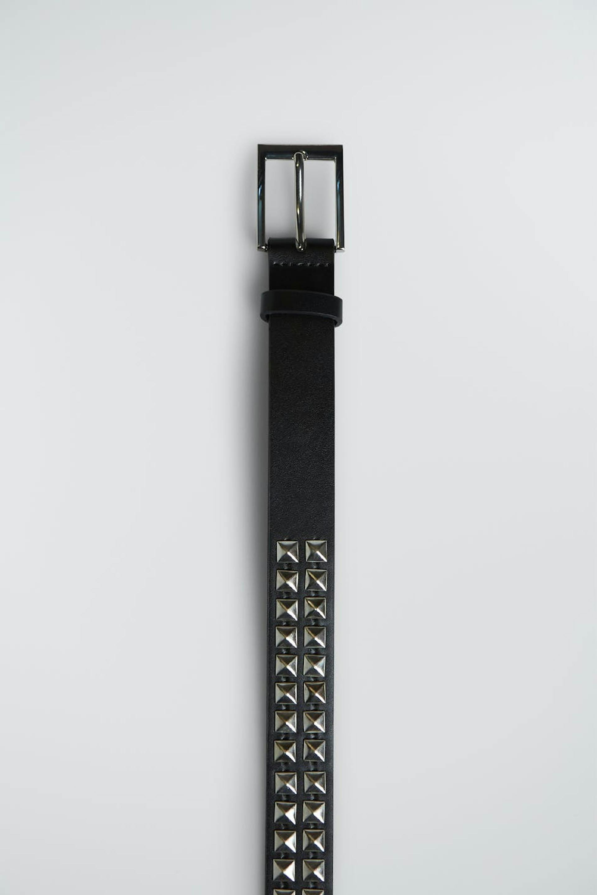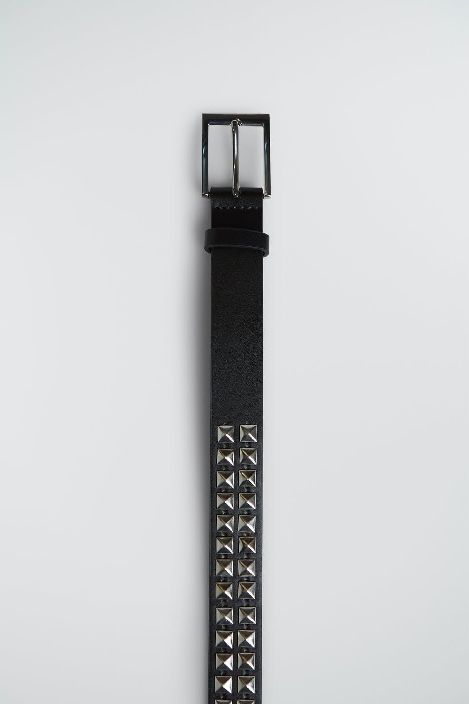 Vyö pienillä niiteillä. Vyö on musta. Se valmistetaan PU:sta.