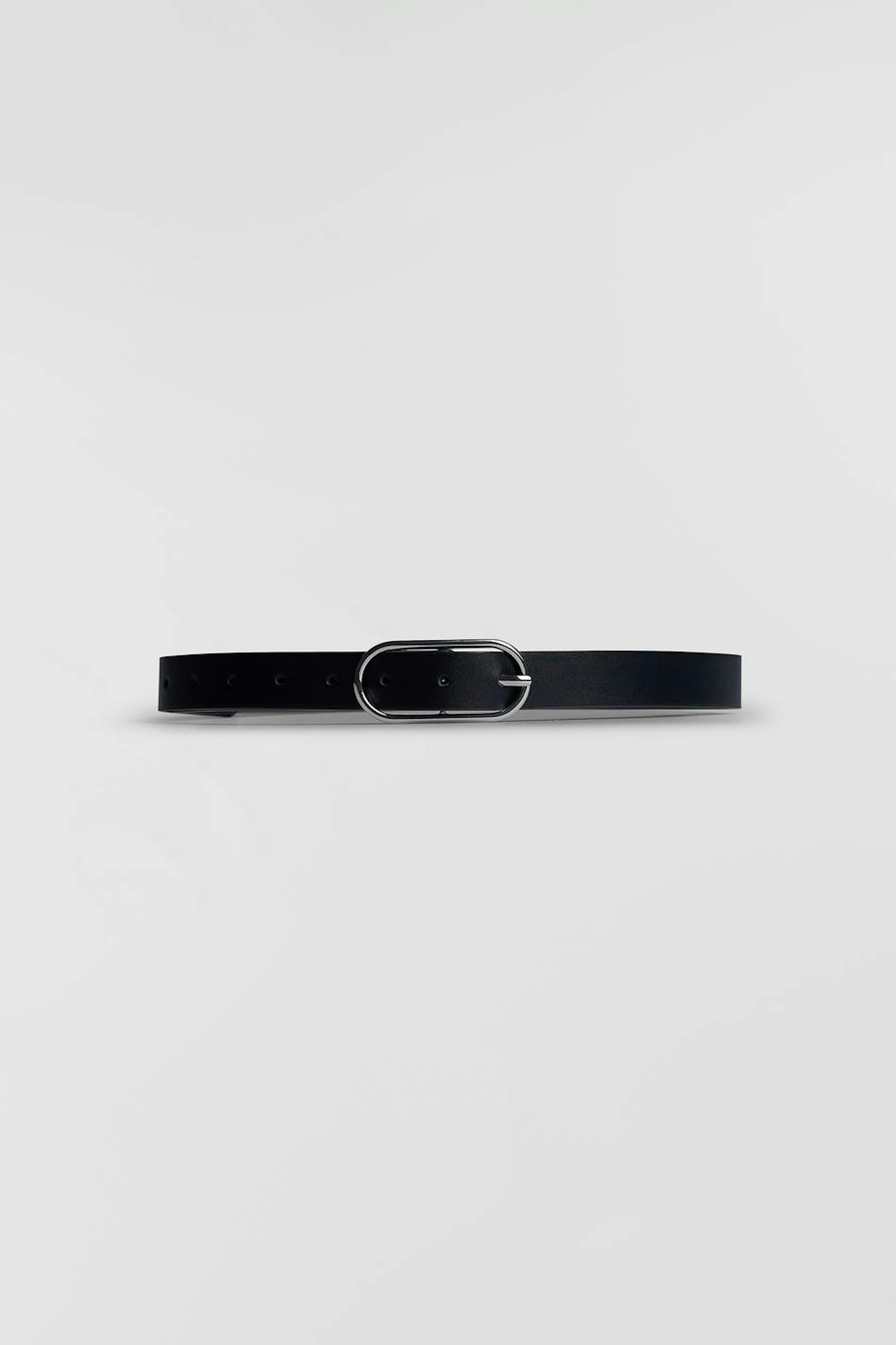 Vyö hopealla metallisella soljella.