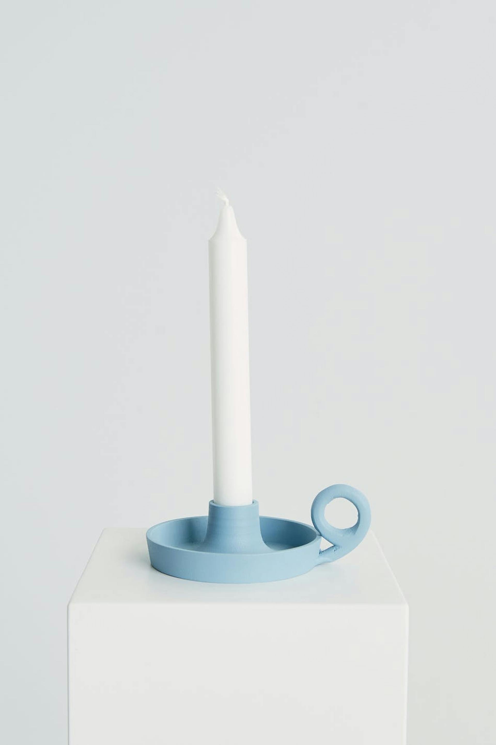 Kynttilänjalka ByOn-tuotemerkiltä. Kynttilänjalka on vaaleansininen.