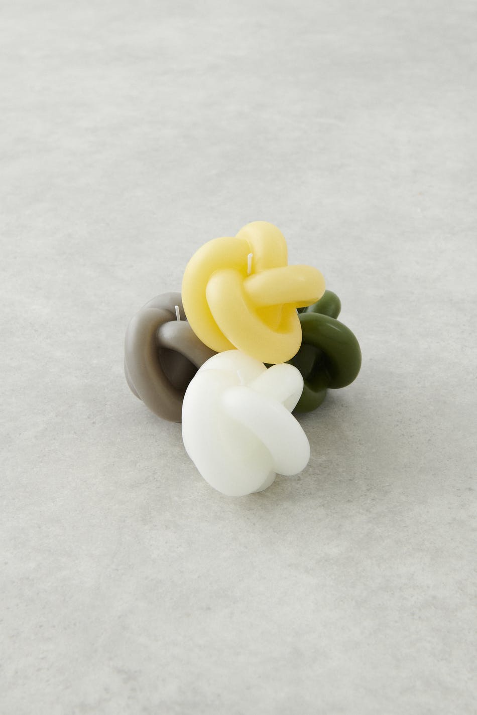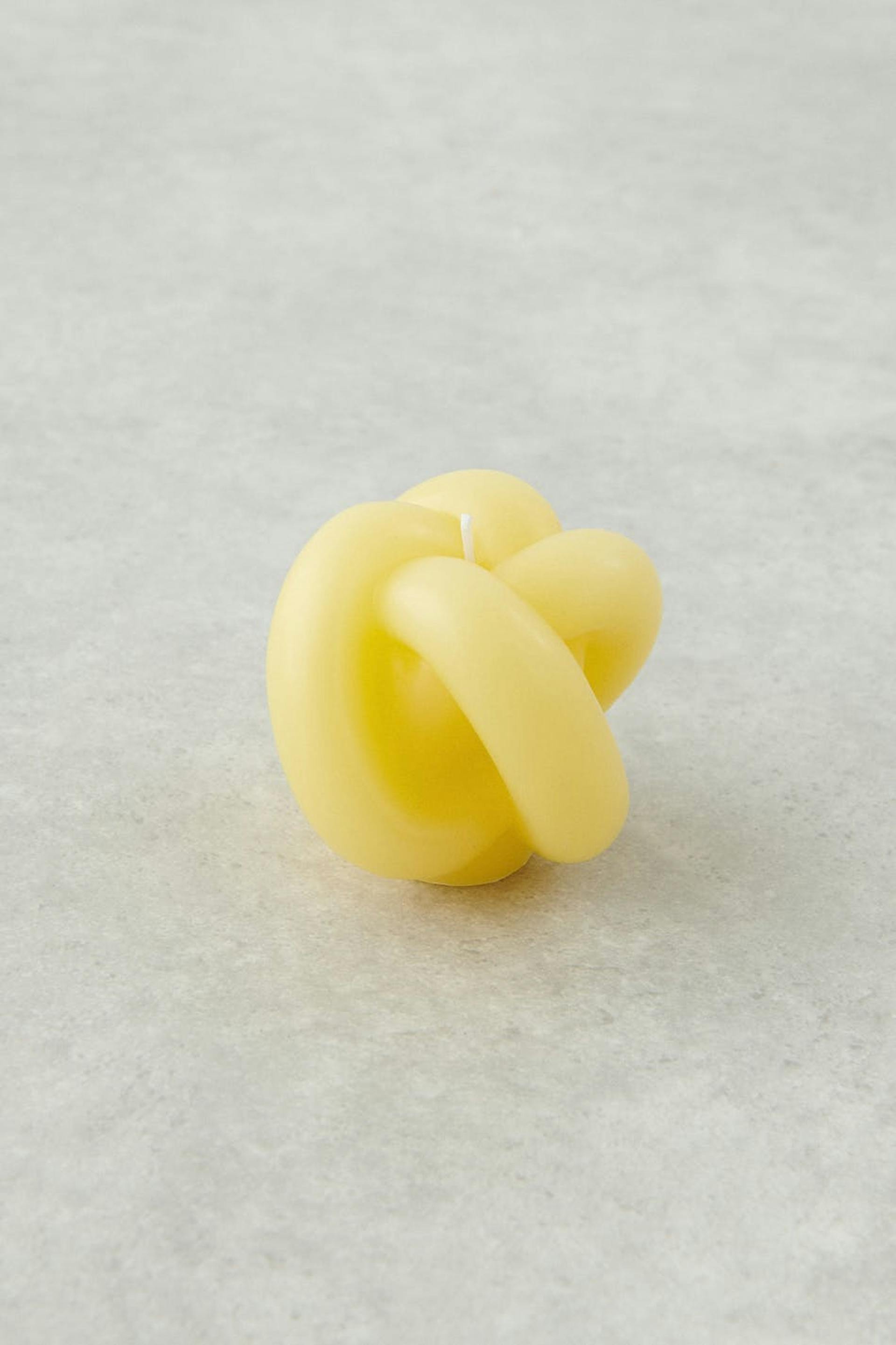Solmuksi muotoiltu kynttilä Gina Home-tuotemerkiltä. Kynttilä on keltainen.