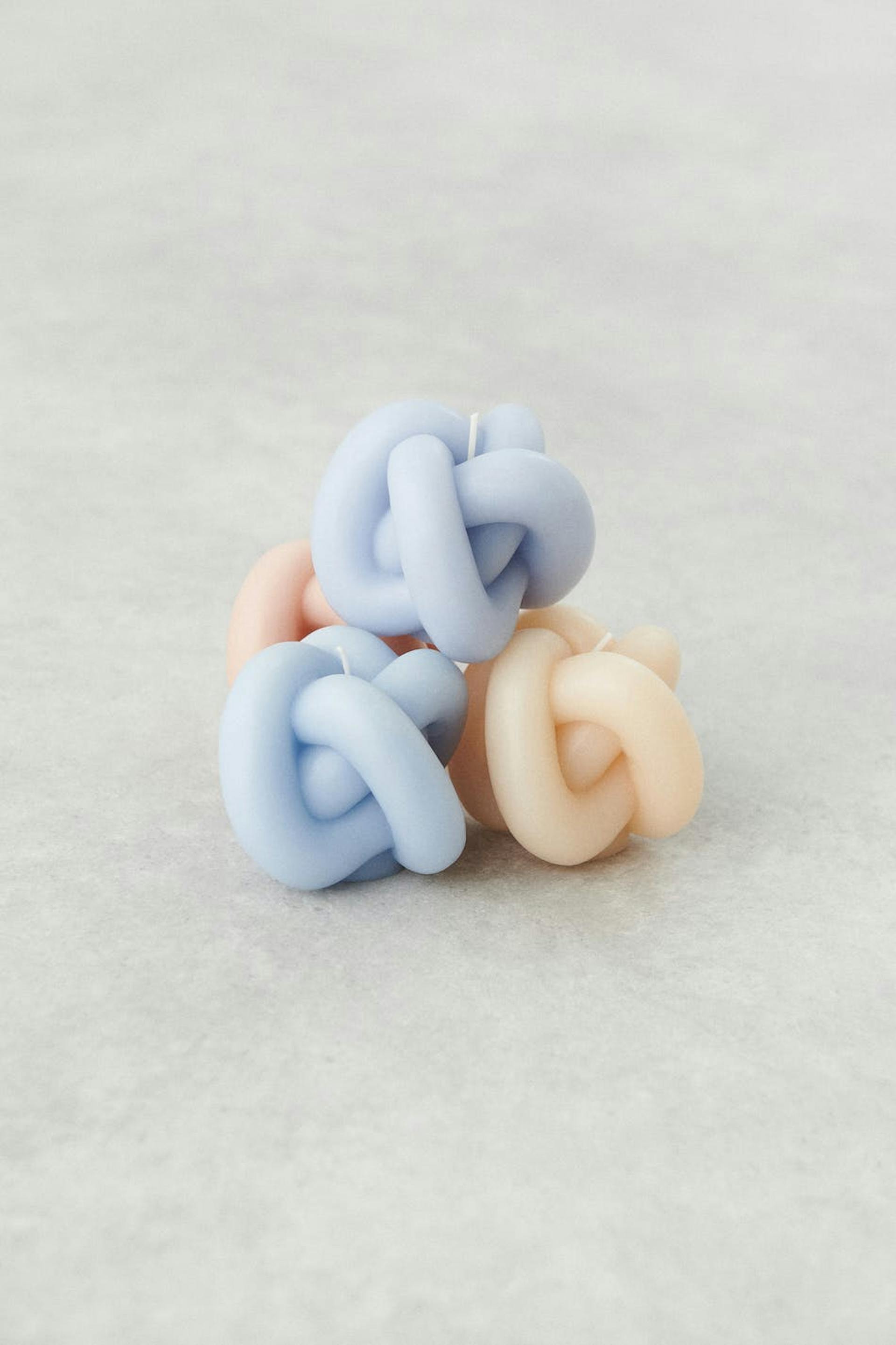 Solmuksi muotoiltu kynttilä Gina Home-tuotemerkiltä. Kynttilä on sininen. Se valmistetaan parafiinivahasta.