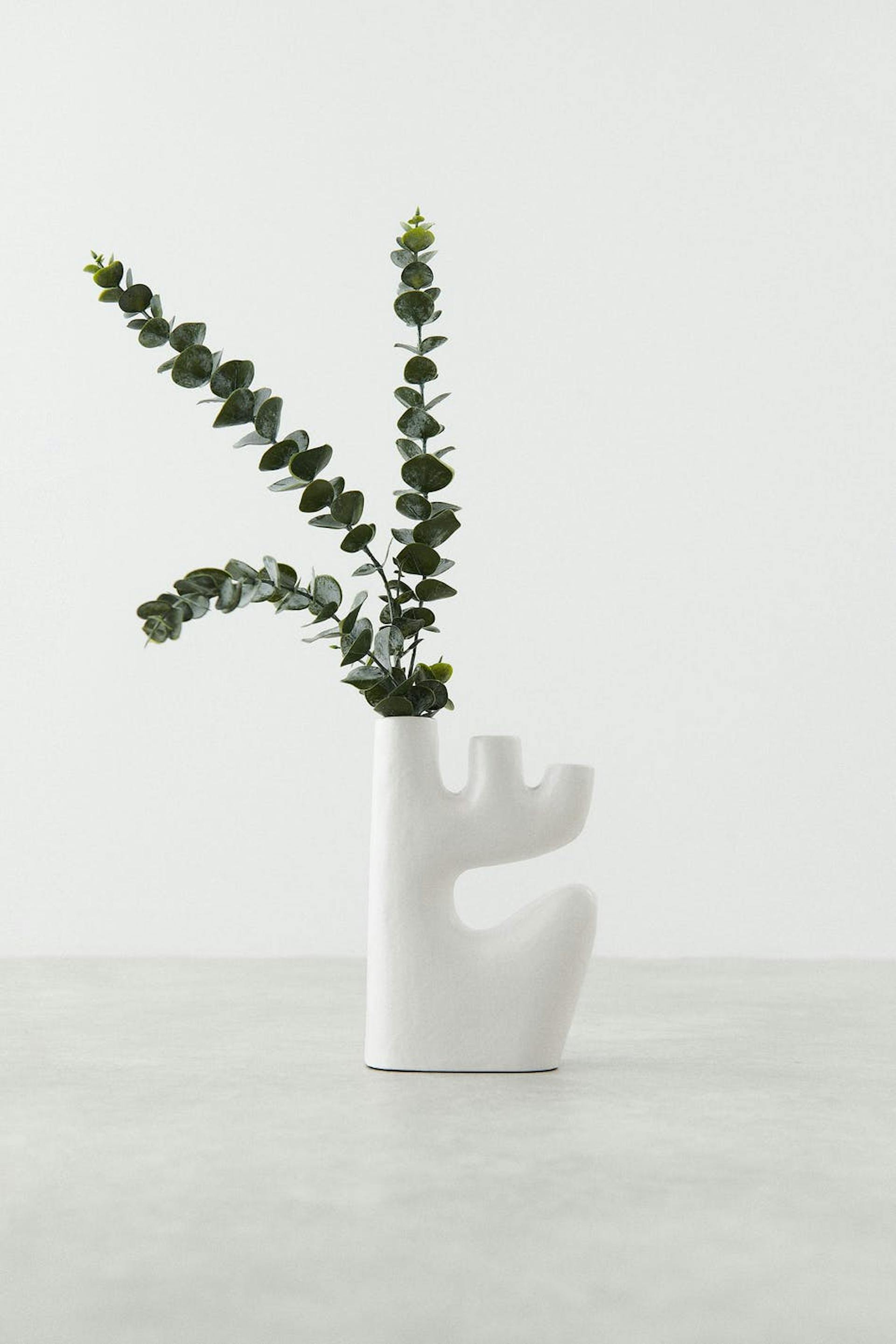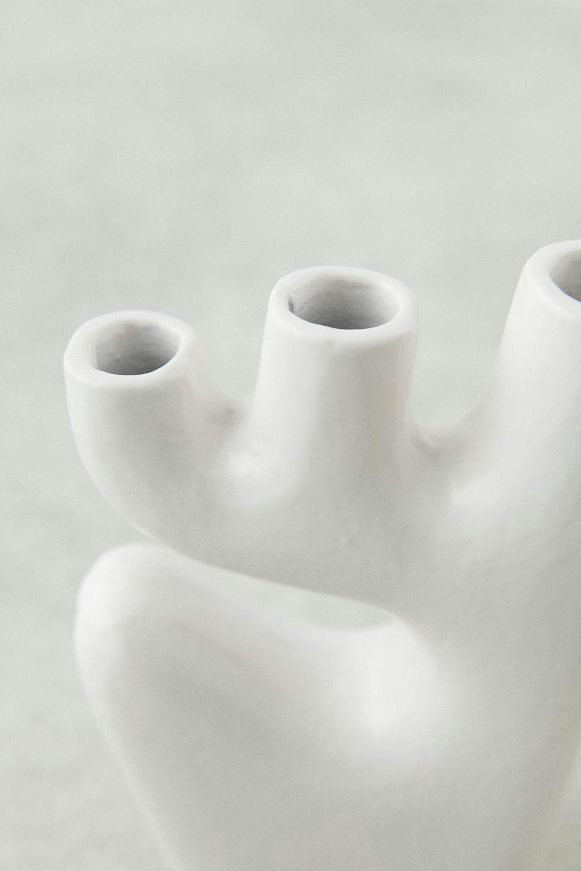 Vaasi Gina Home-tuotemerkiltä metallista uniikilla, leikkisällä muodolla. Vaasi on valkoinen. Käytä vaasia sisustusobjektina tai yhdessä kukkakimpun kanssa.