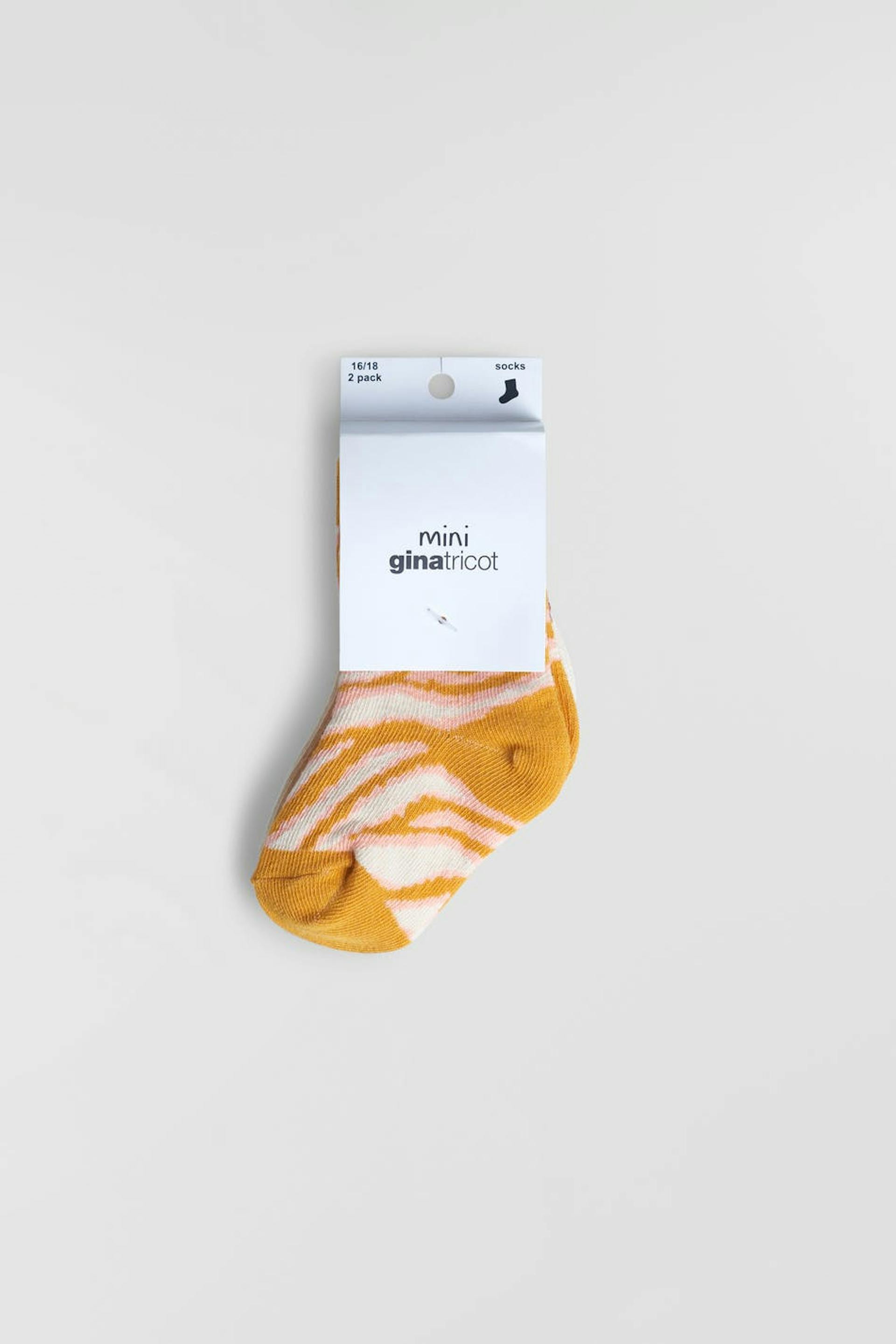 Sukat lapsille 2 kpl -pakkauksella. Sukat ovat keltaisia.