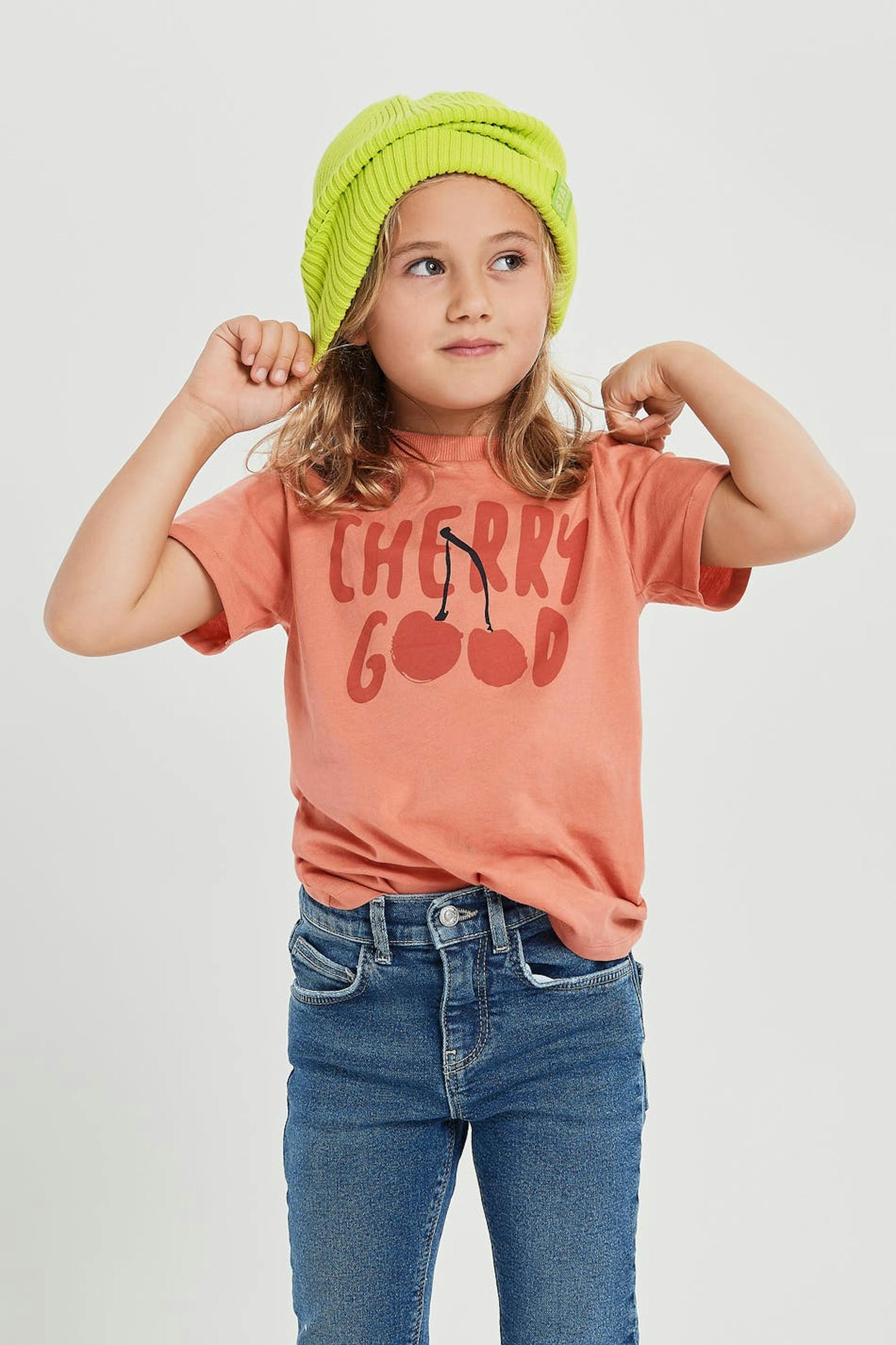 Unisex T-paita lapsille normaalilla leikkauksella. T-paita on pinkki ja siinä on printti edessä.