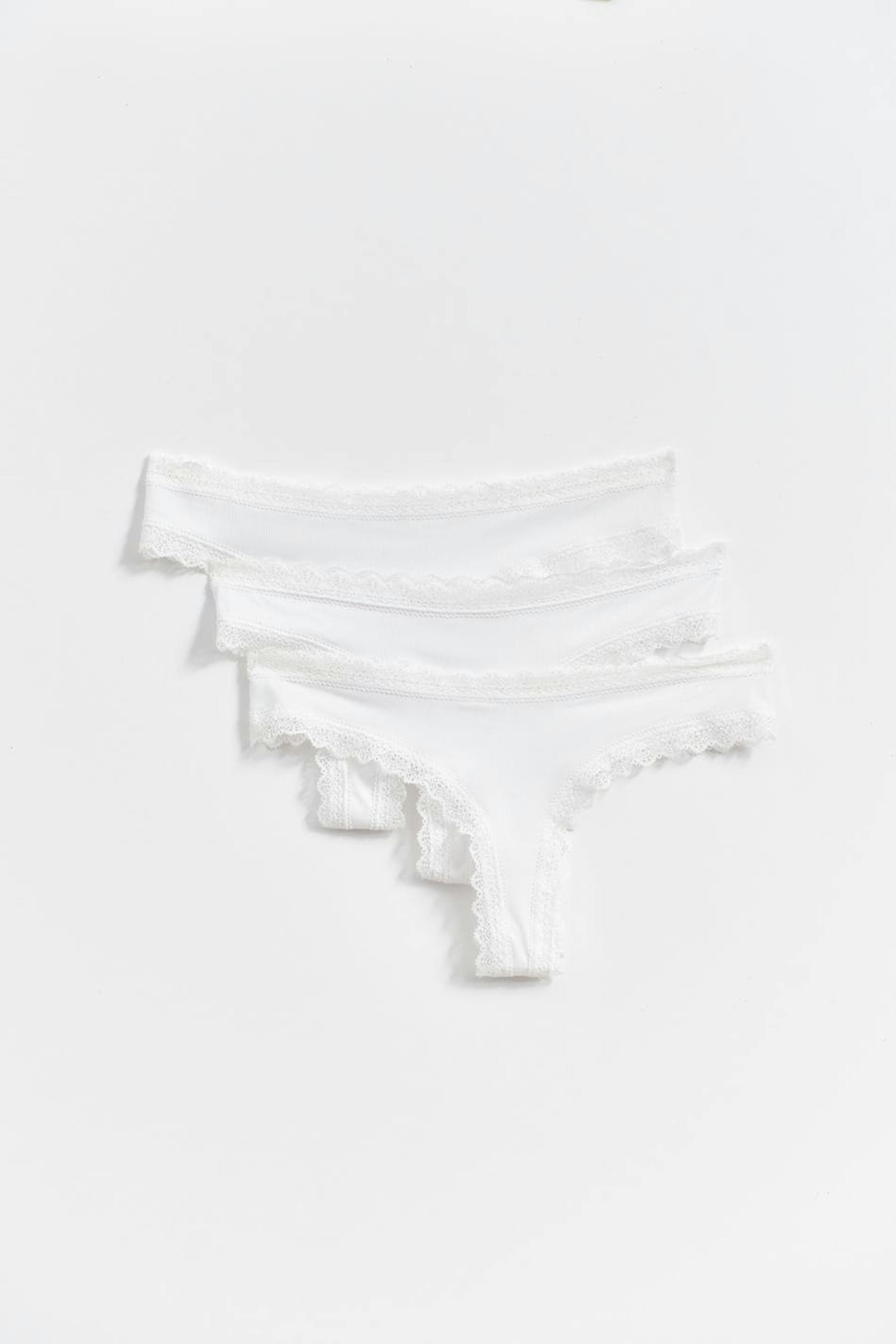 Waist Rise: Mid waist Fit: Figure hugging Description: Lace, Rib Additional Description: Lace trim, thong shape,