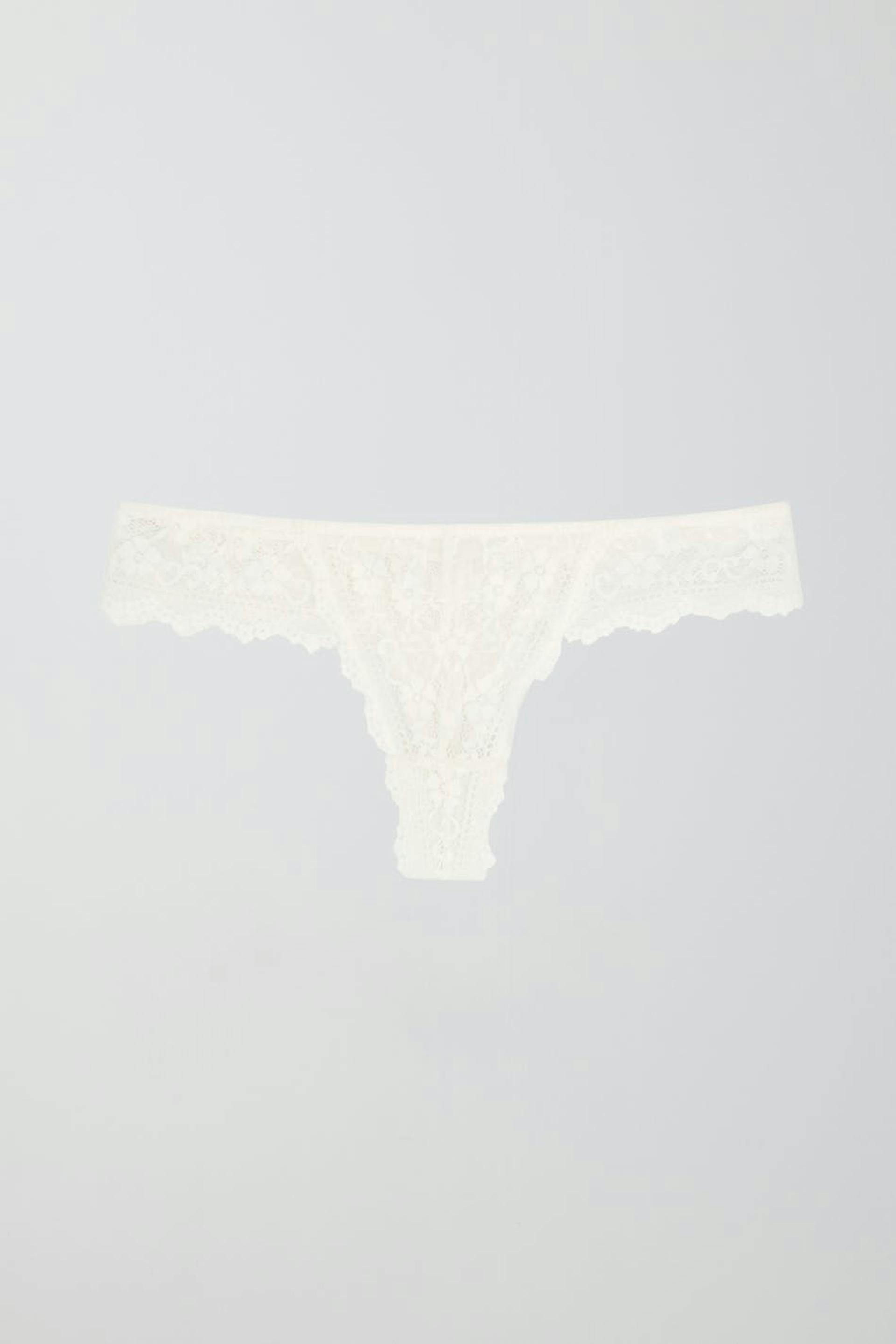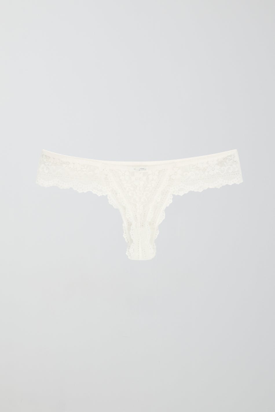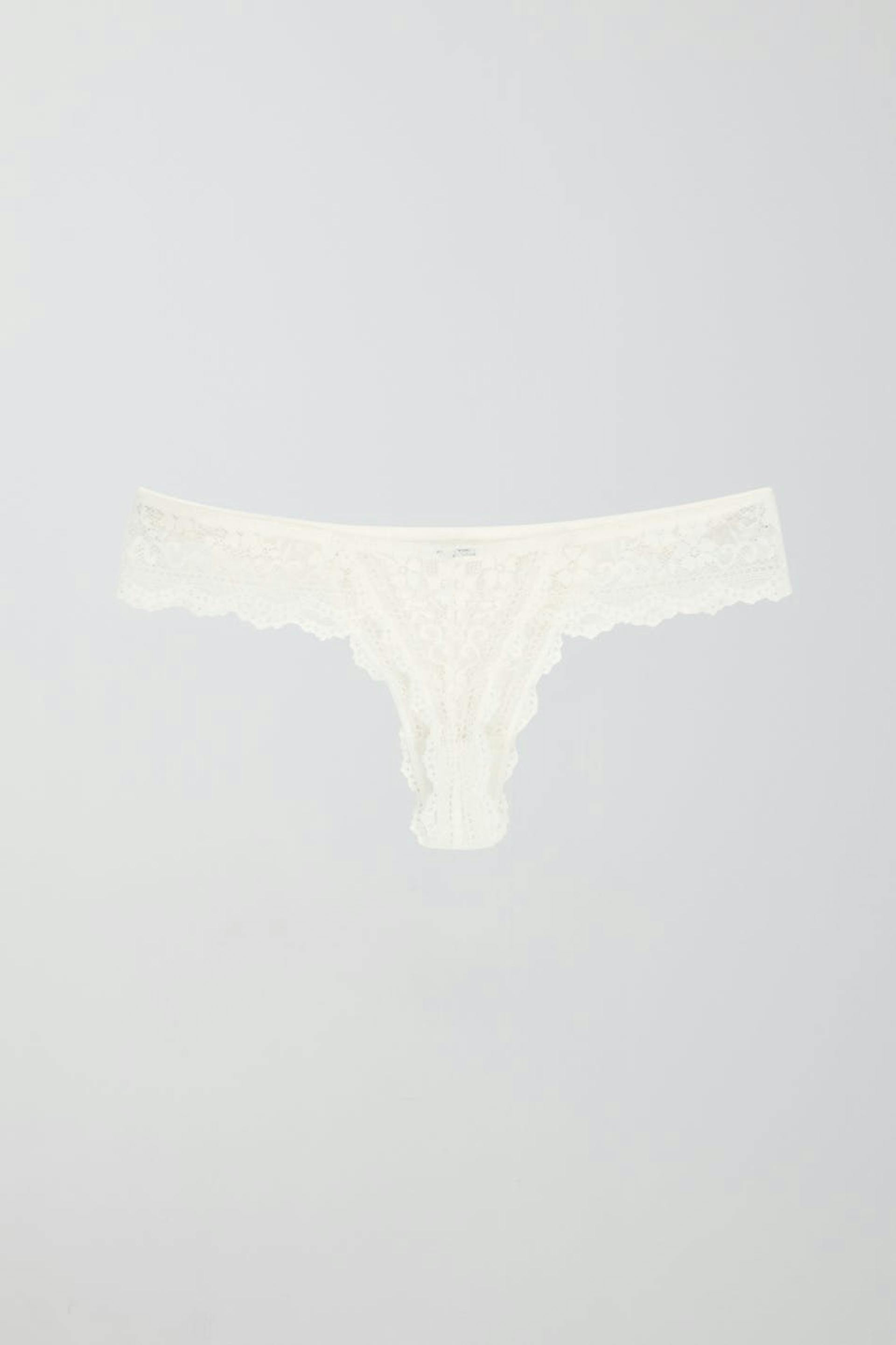 Stringi pitsistä haaravälin vuorilla. Stringi on valkoinen.