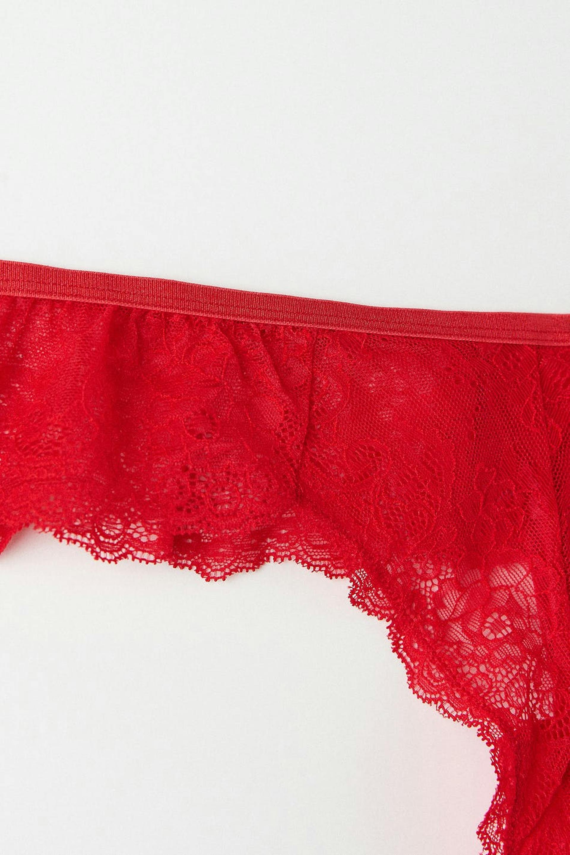 Pitsit stringit vuoratulla haaralla. Stringit ovat punaisia.