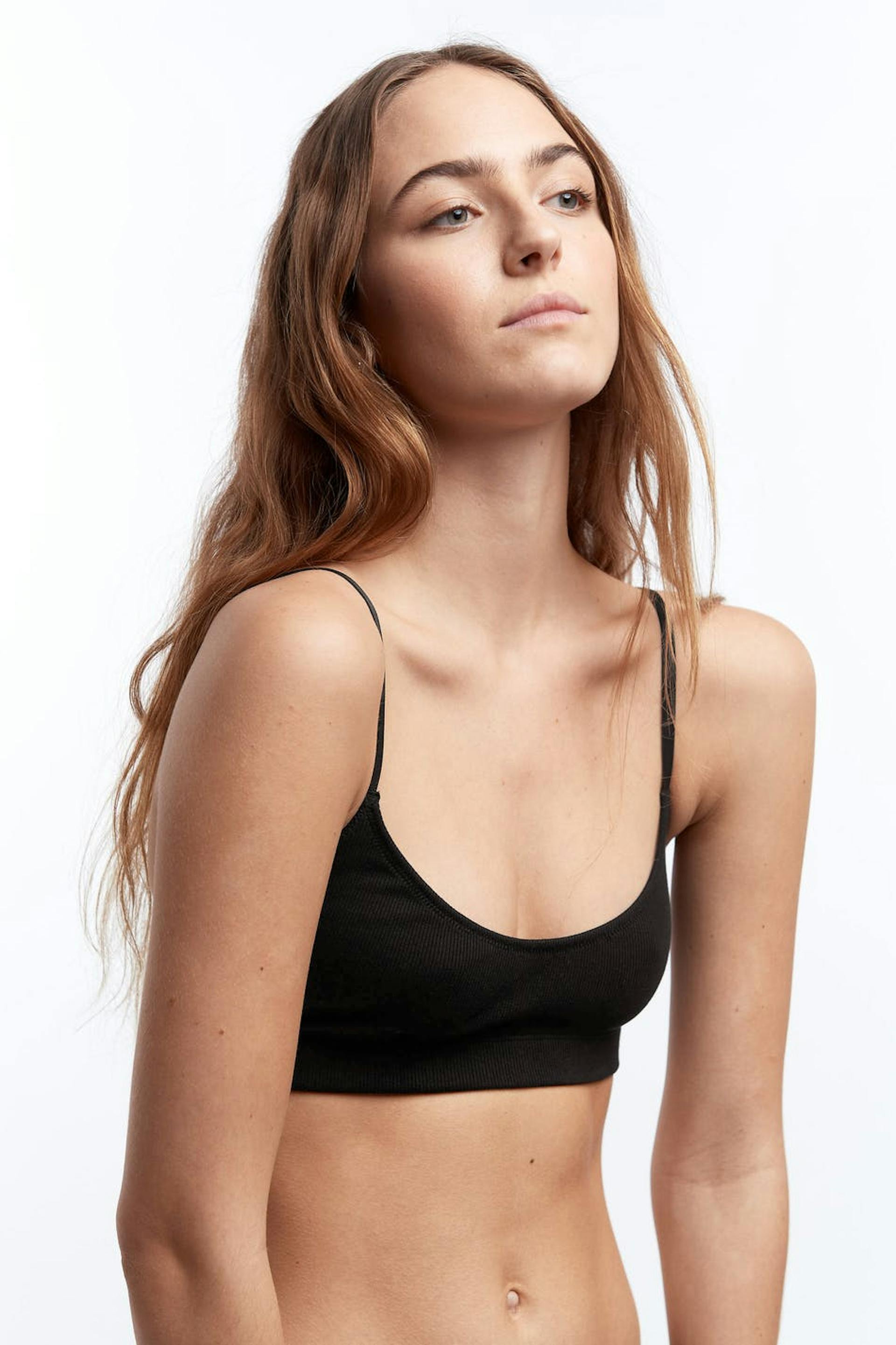 Pehmeät rintaliivitit. Rintaliivitit ovat mustia ja resorimaisia. Ne valmistetaan puuvillasta.