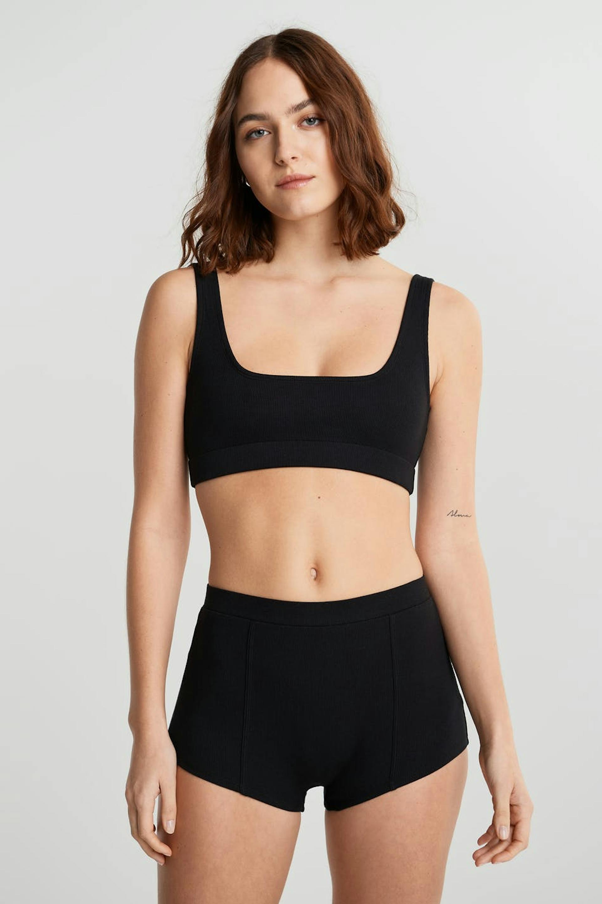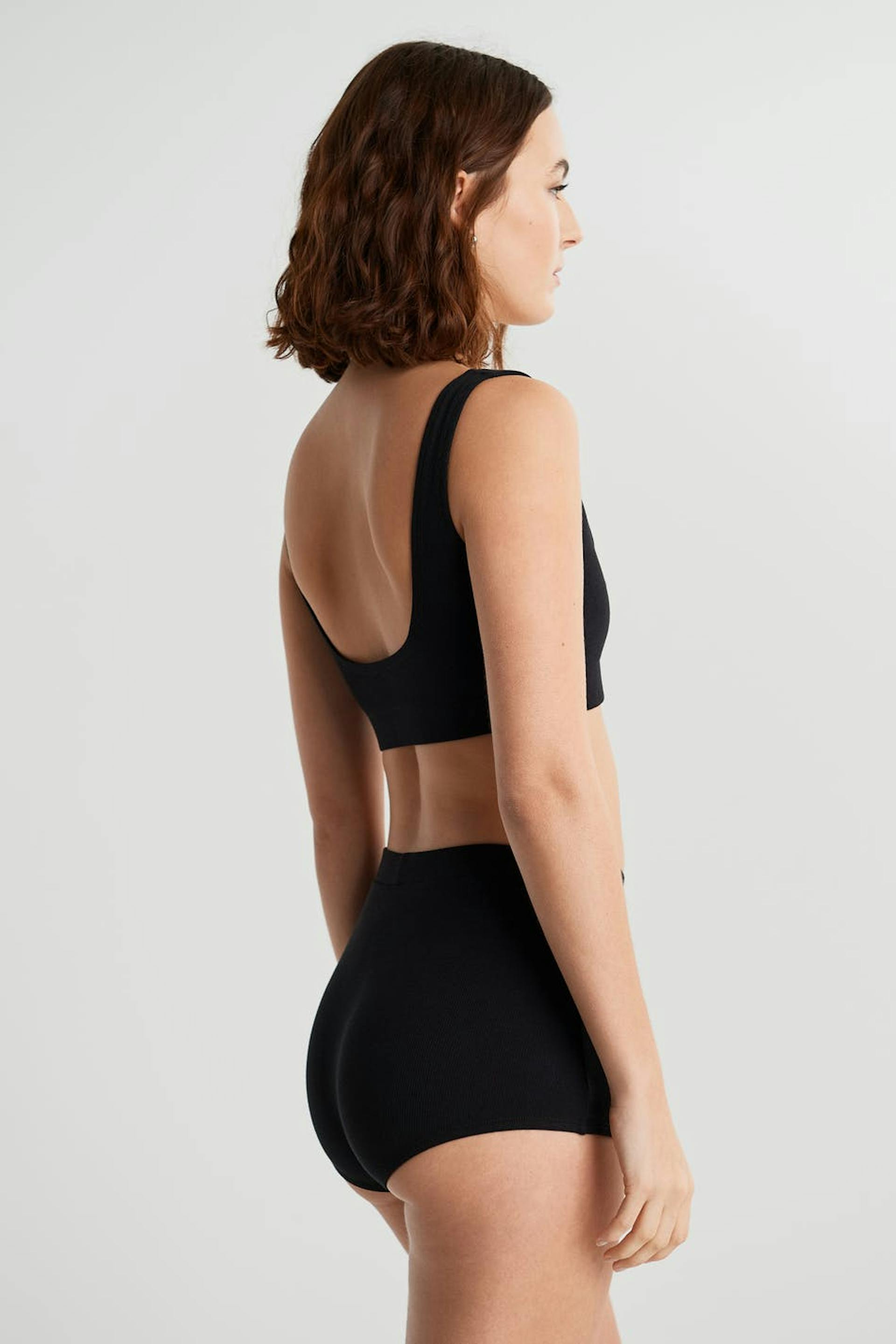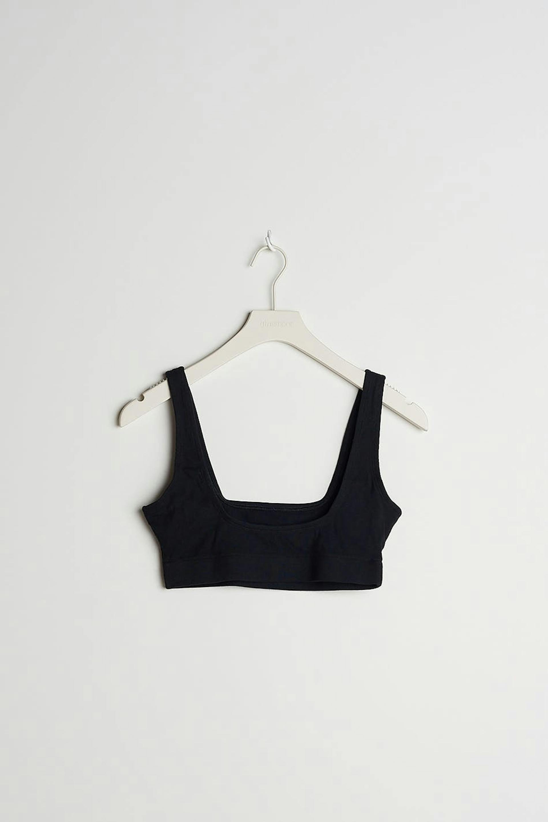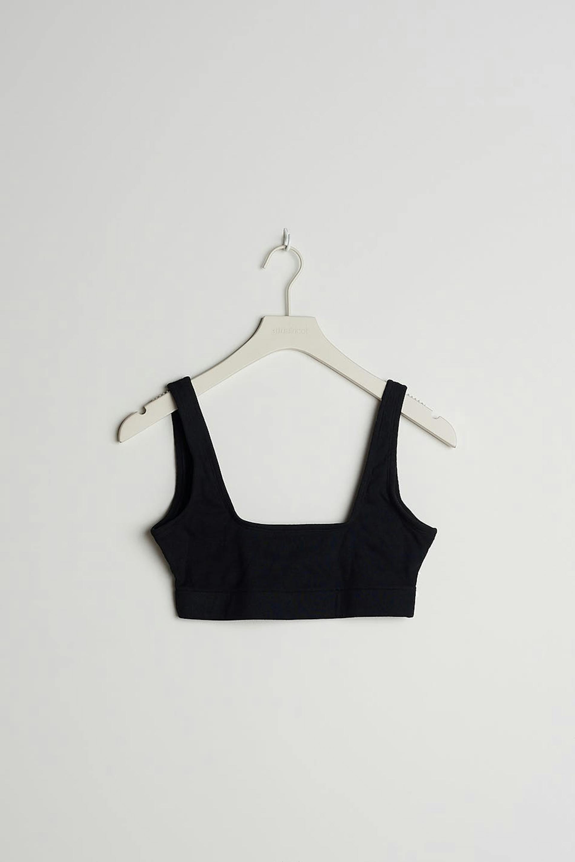 Resorimaiset rintaliivit. Rintaliivit ovat mustia ja pehmeitä. Ne valmistetaan puuvillasta.