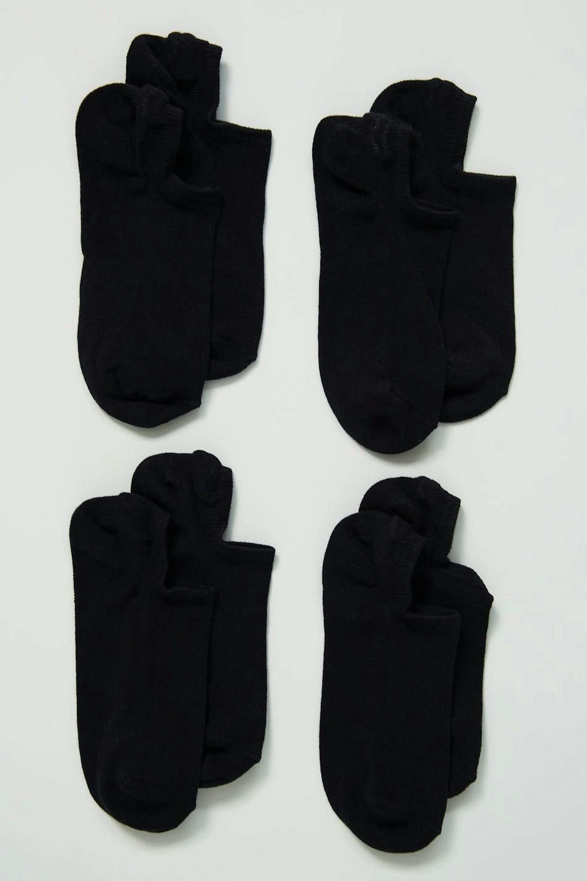 Nilkaan ylettyvät sukat 4 kpl -pakkauksella. Sukat ovat mustia.
