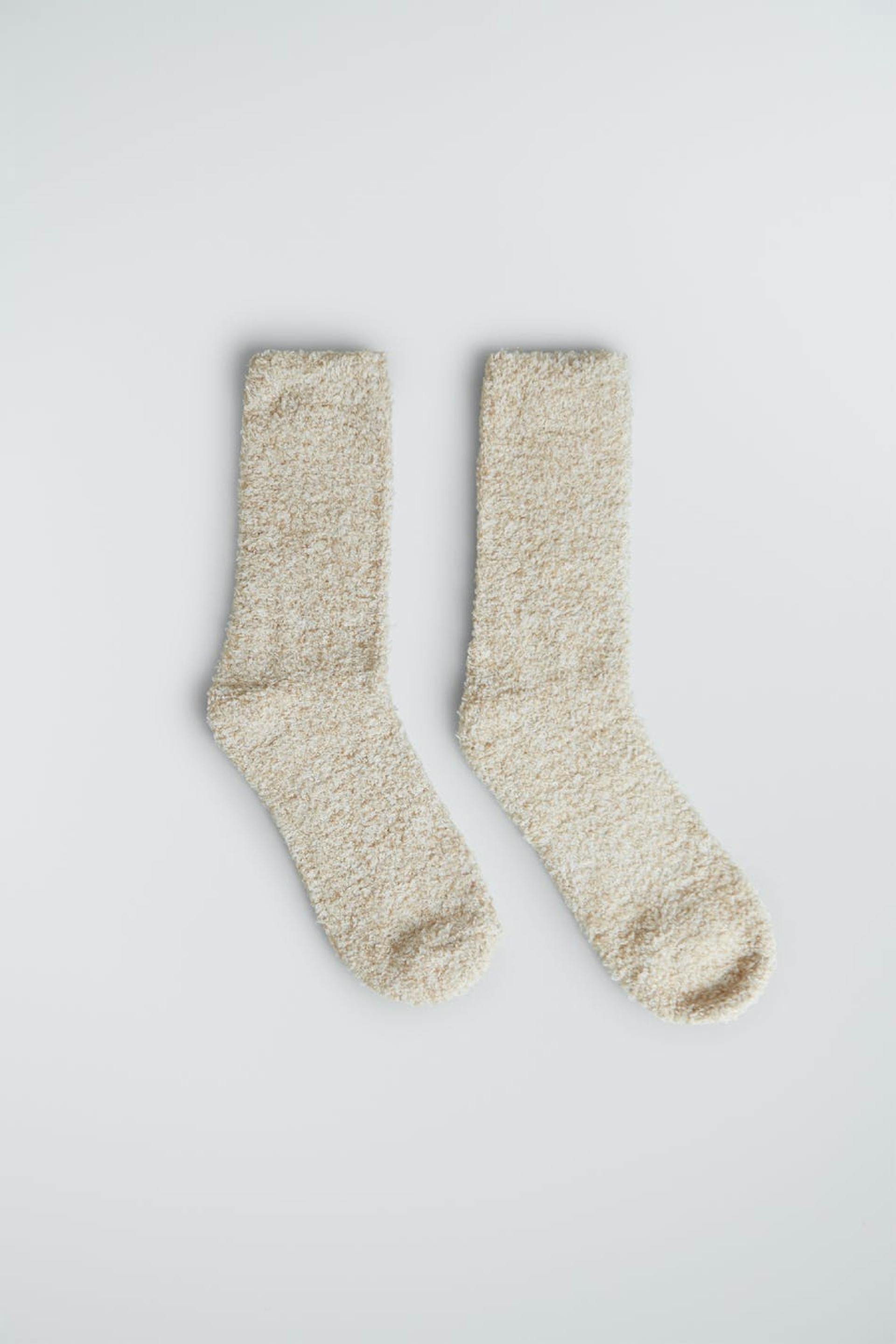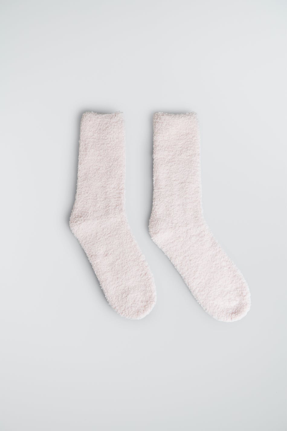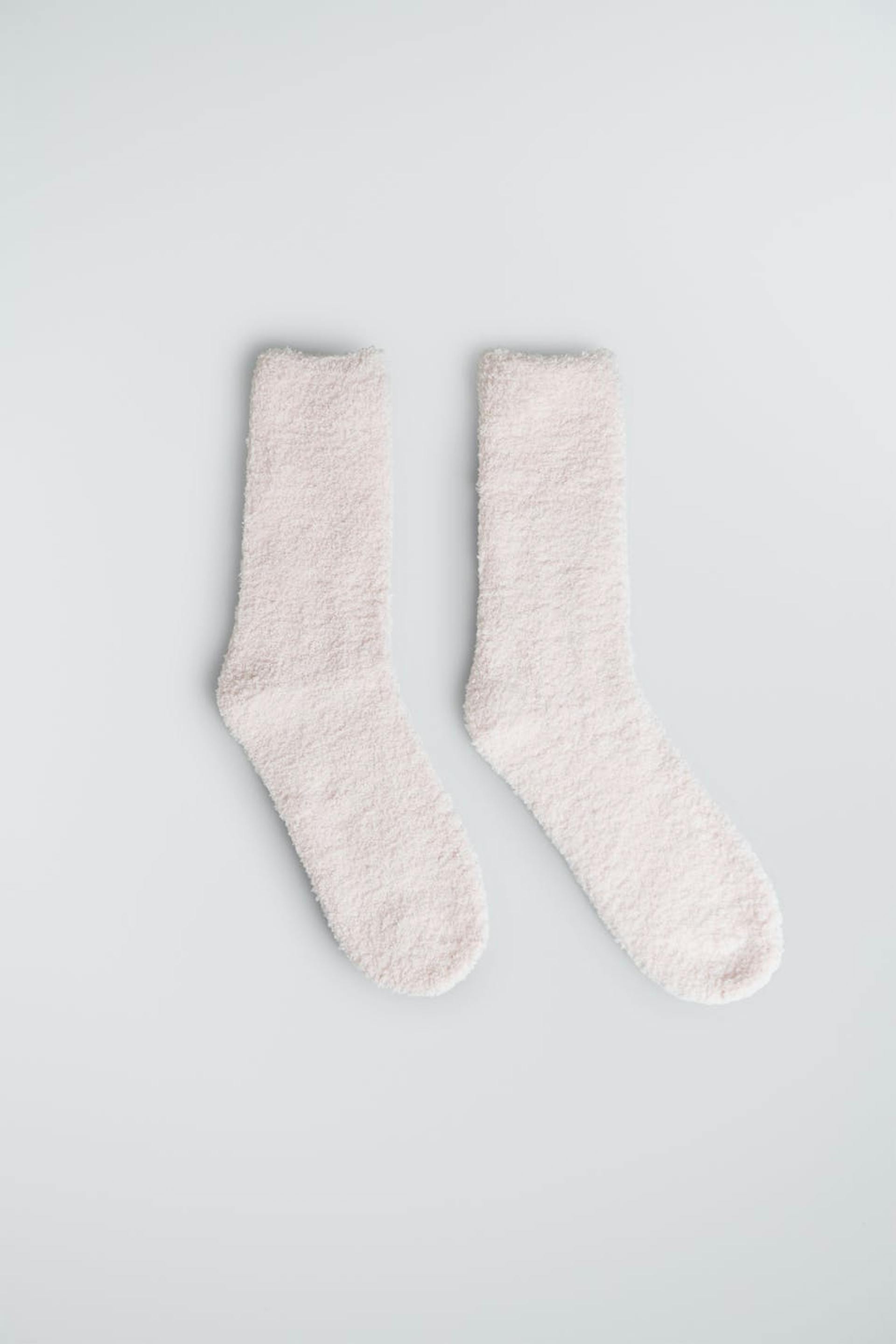 Pörröiset sukat 2 kpl -pakkauksella. Sukat ovat beigejä.