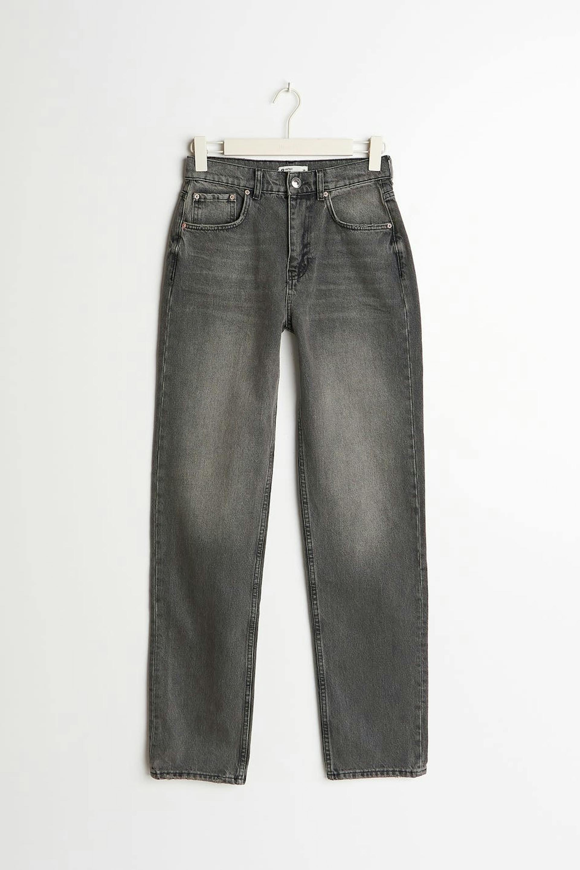 Joustamattomat straight-farkut korkealla vyötäröllä. Farkut ovat harmaita ja niissä on 90-luvun innoittava, suora istuvuus. Niissä on pitkä lahkeen pituus. Sinulle, joka olet ainakin 176 cm pitkä. Sinulle, joka olet ainakin 176 cm pitkä.
