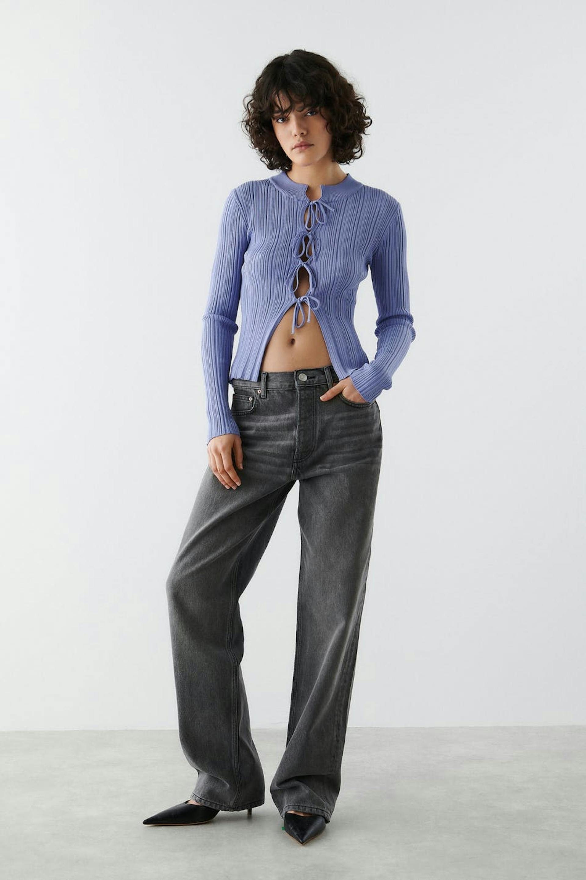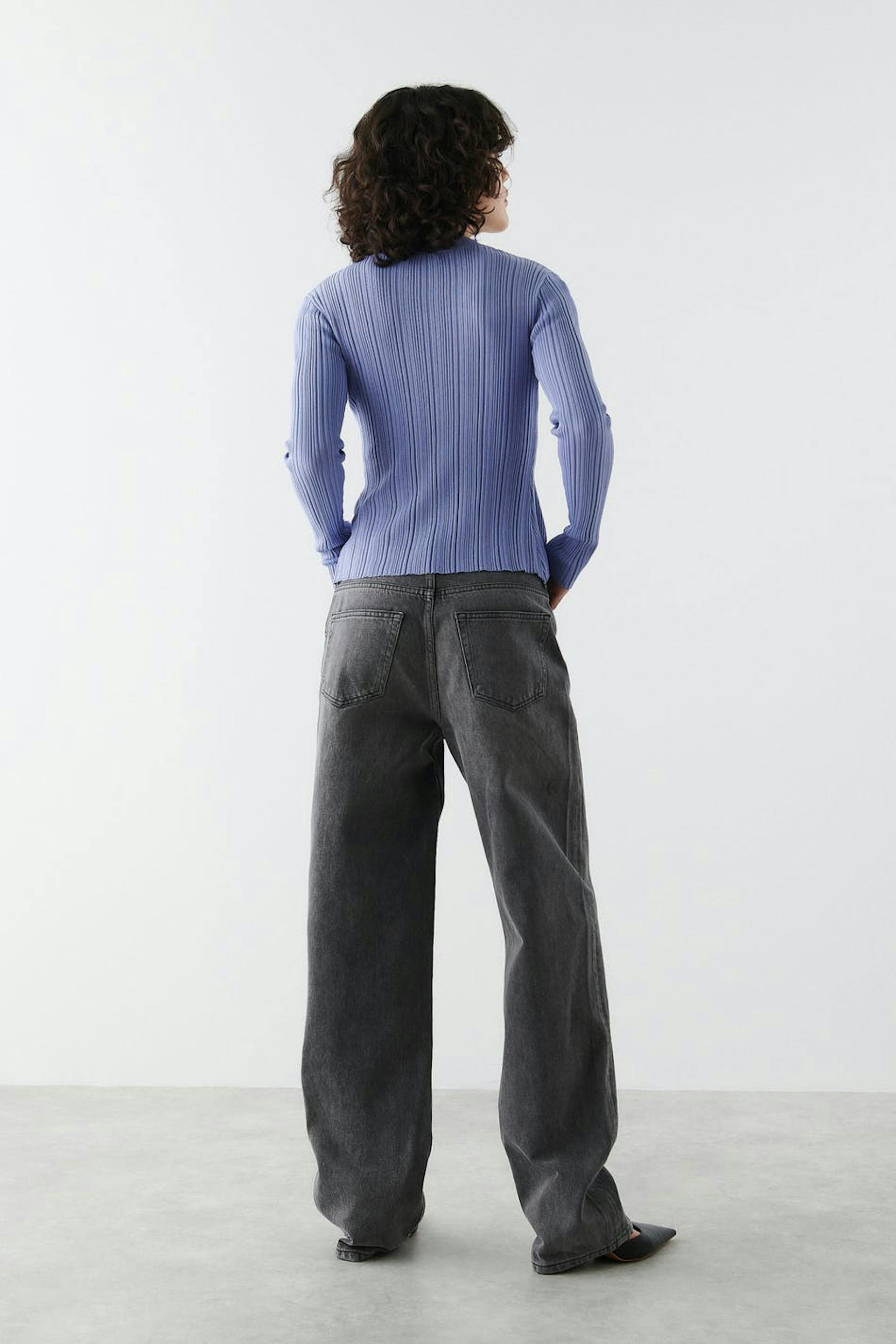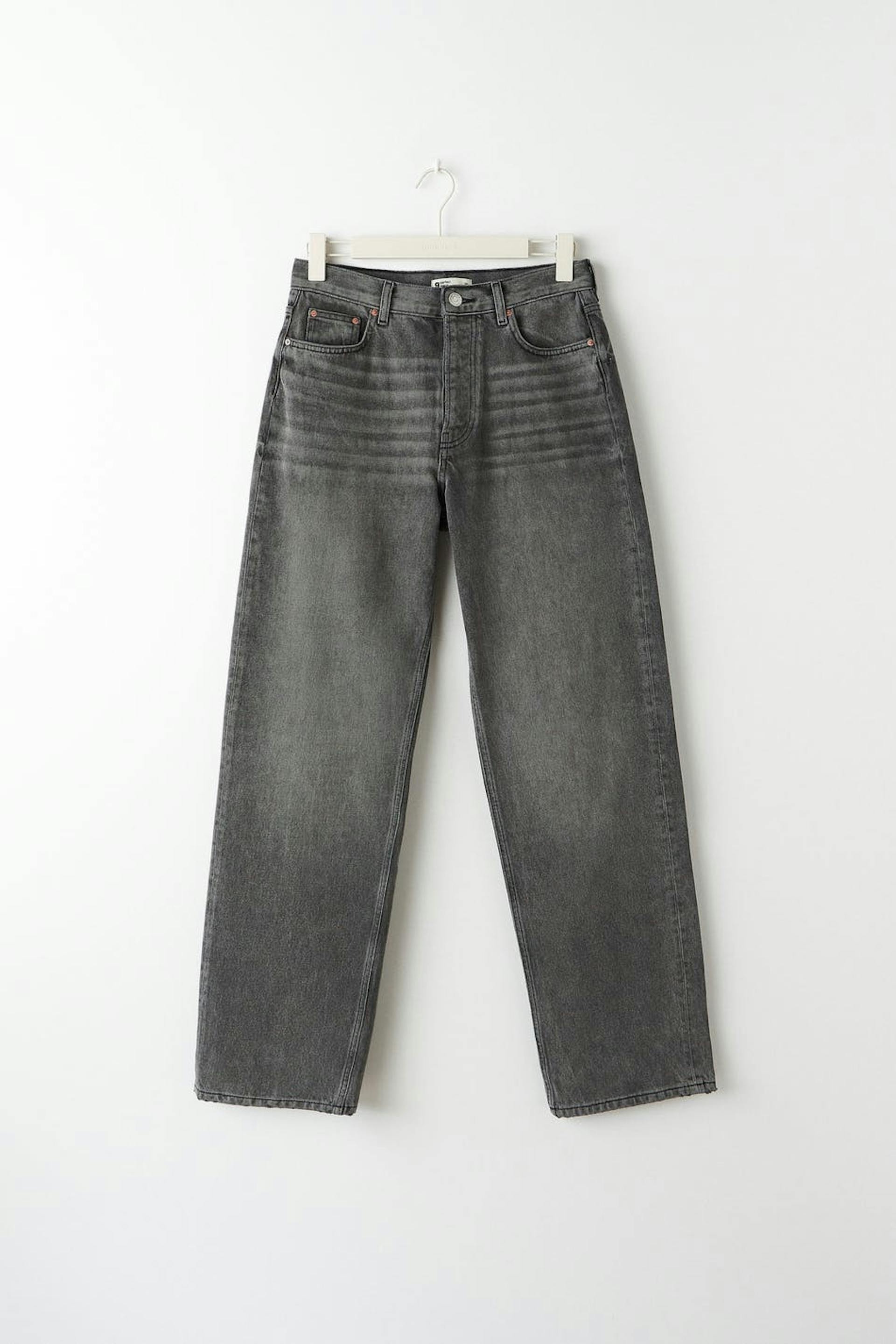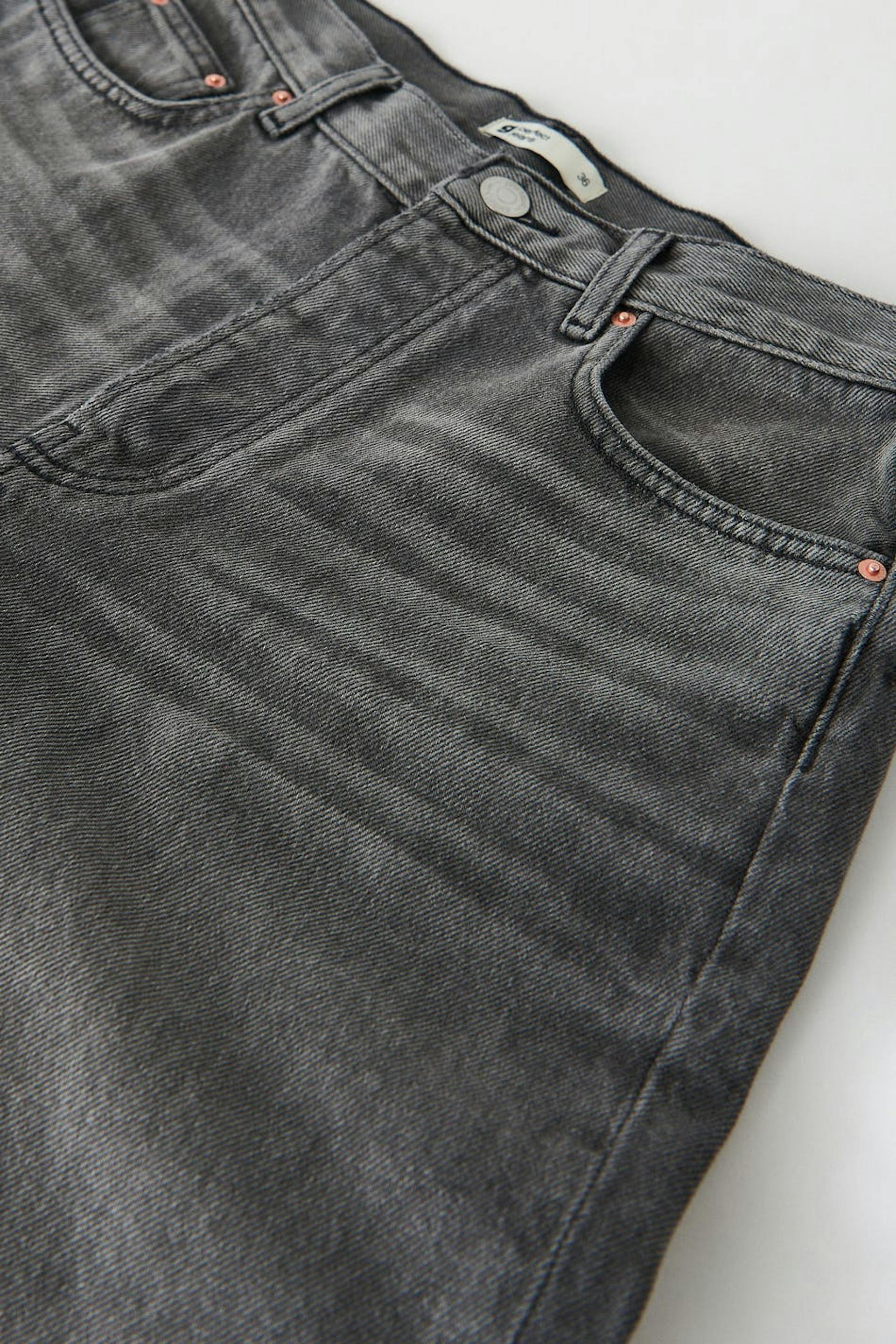 Boyfriend-farkut matalalla vyötäröllä. Farkut ovat harmaita ja niissä on löysä, suora istuvuus pehmeästä joustamattomasta denimistä. Niissä on nappisepalus ja housunlahkeet täyspituudella. Käytä koko-opastamme oikean koon löytämiseksi.