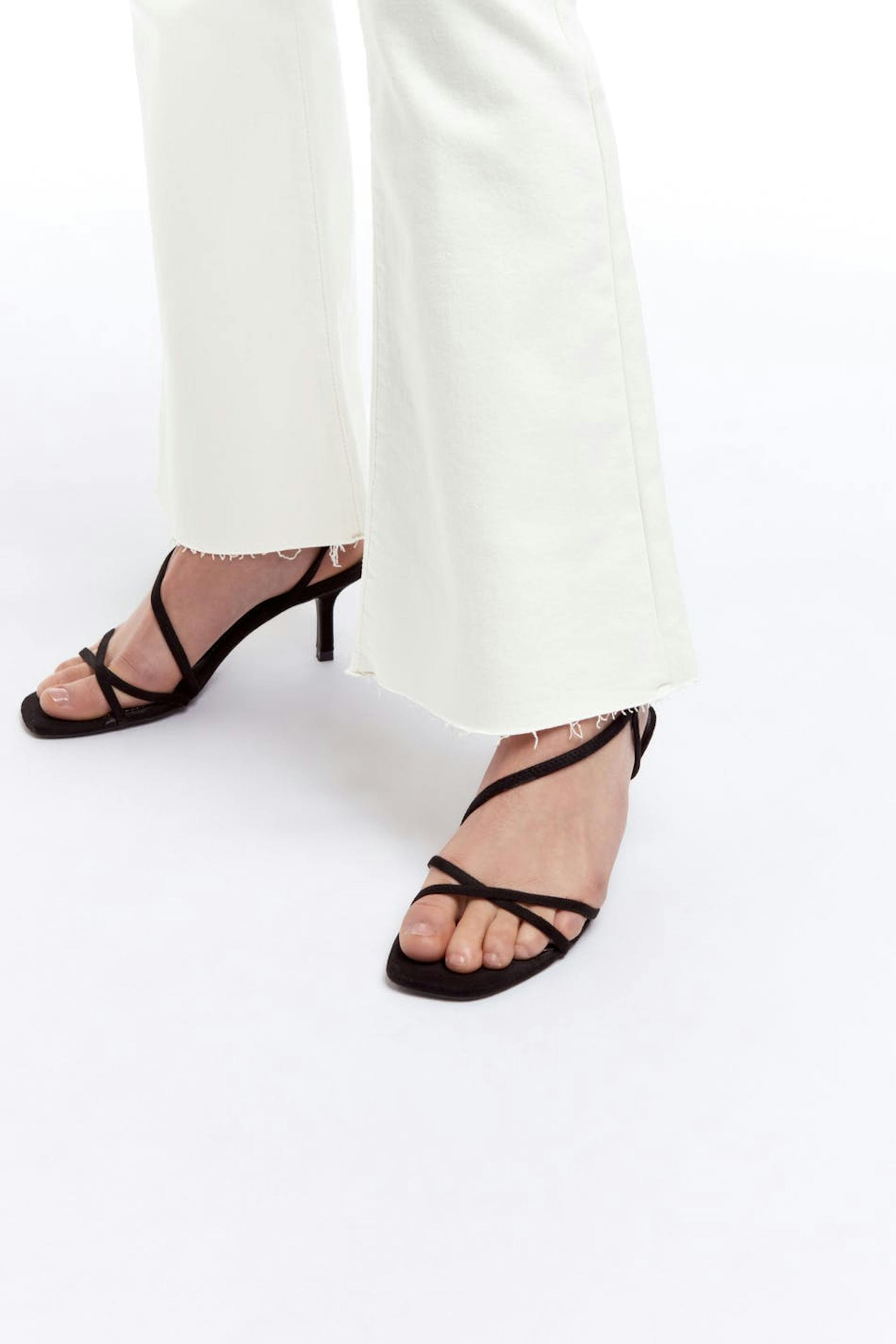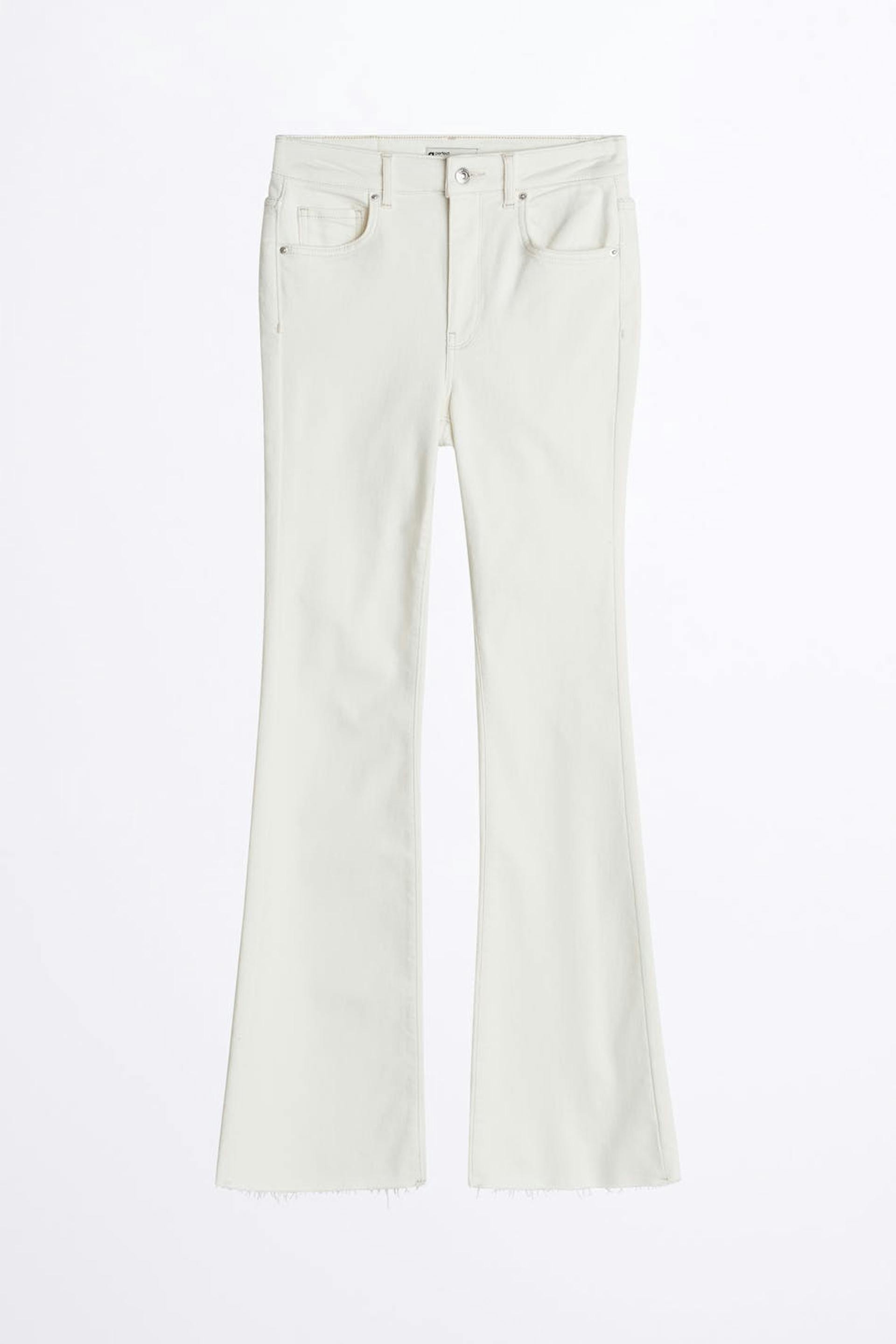 Levenevät farkut skinny-mallilla. Farkut ovat valkoisia ja niissä on comfort-stretch. Niissä on raaka helma.