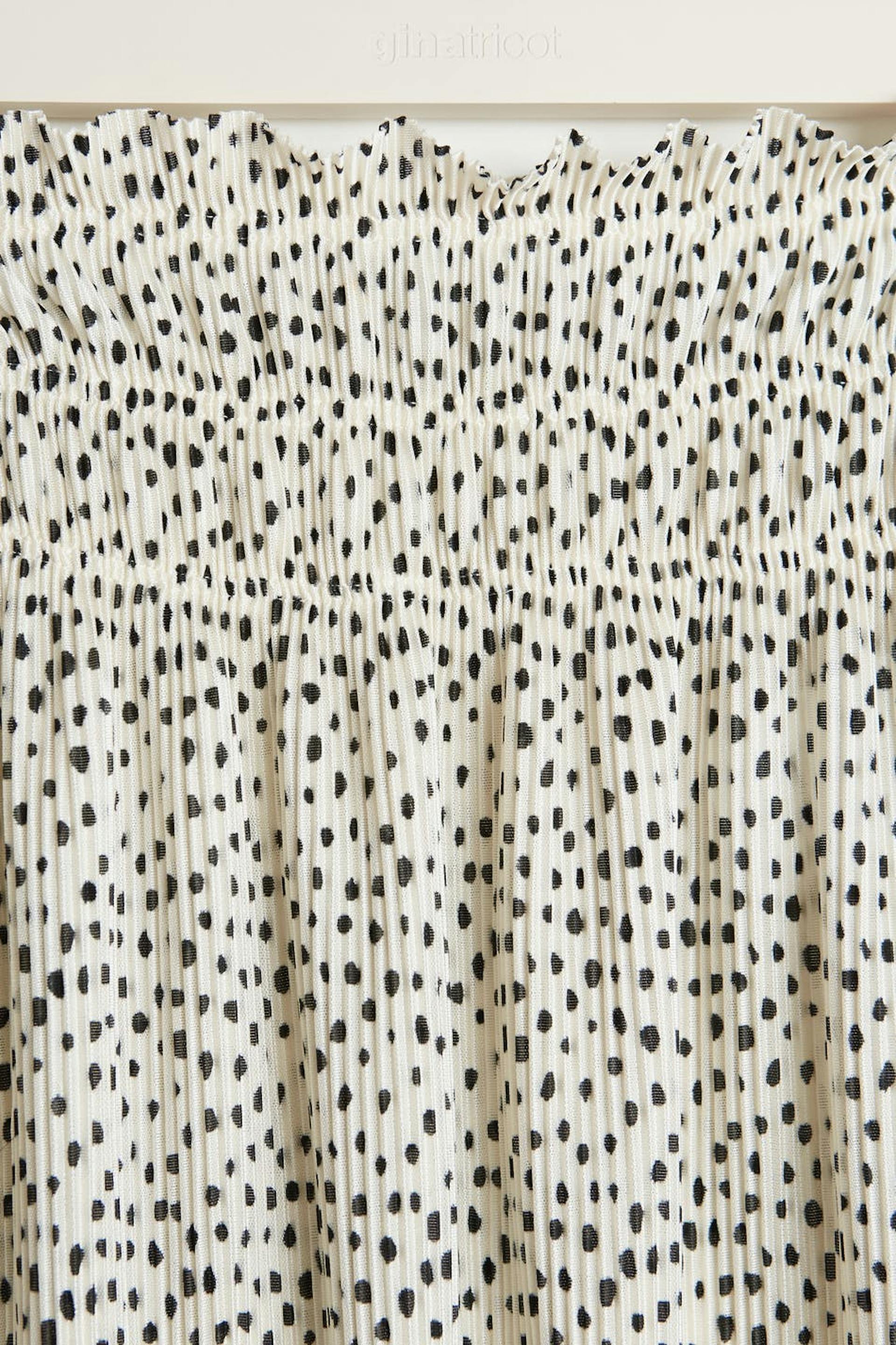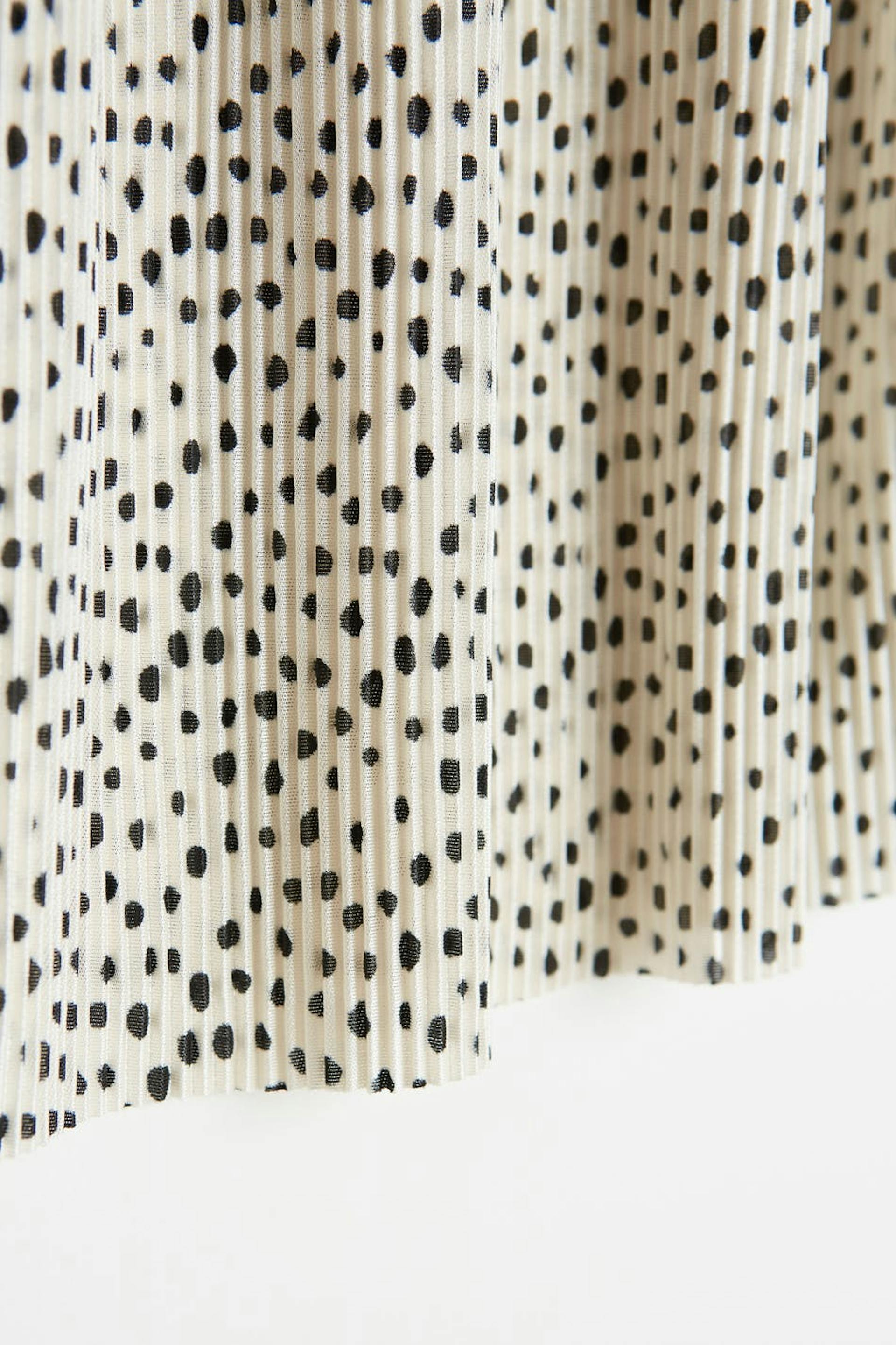Polveen ulottuva hame normaalilla leikkauksella. Hame on valkoinen ja siinä on joustonauha vyötäröllä. Siinä on röyhelöinen kangas.