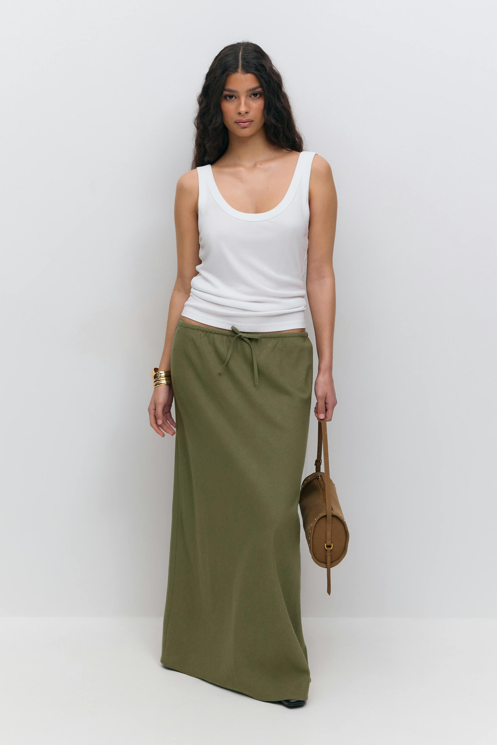 Drawstring maxi skirt
