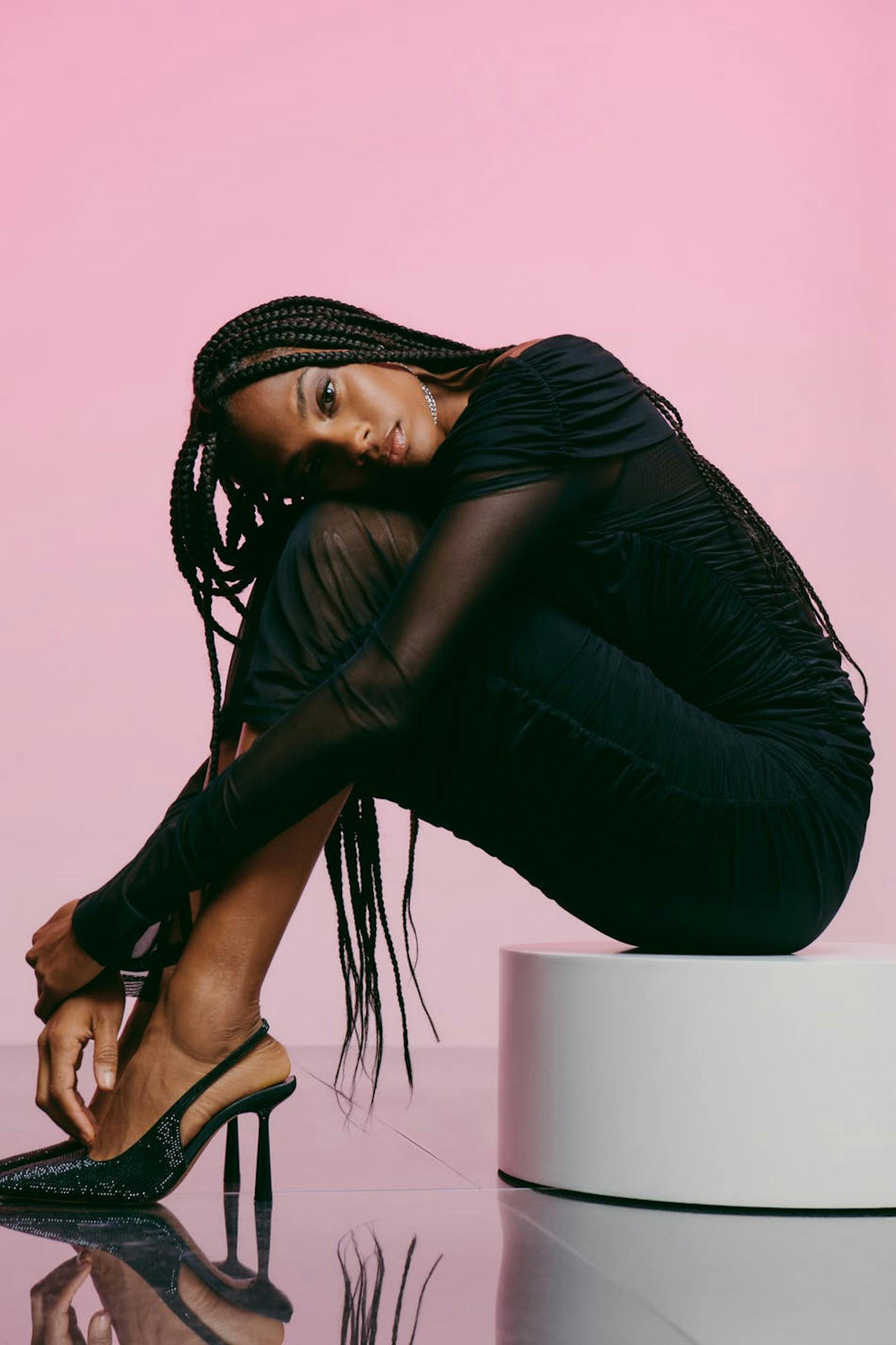 Mallin pituus on 176 cm ja hänellä on päällä koko S