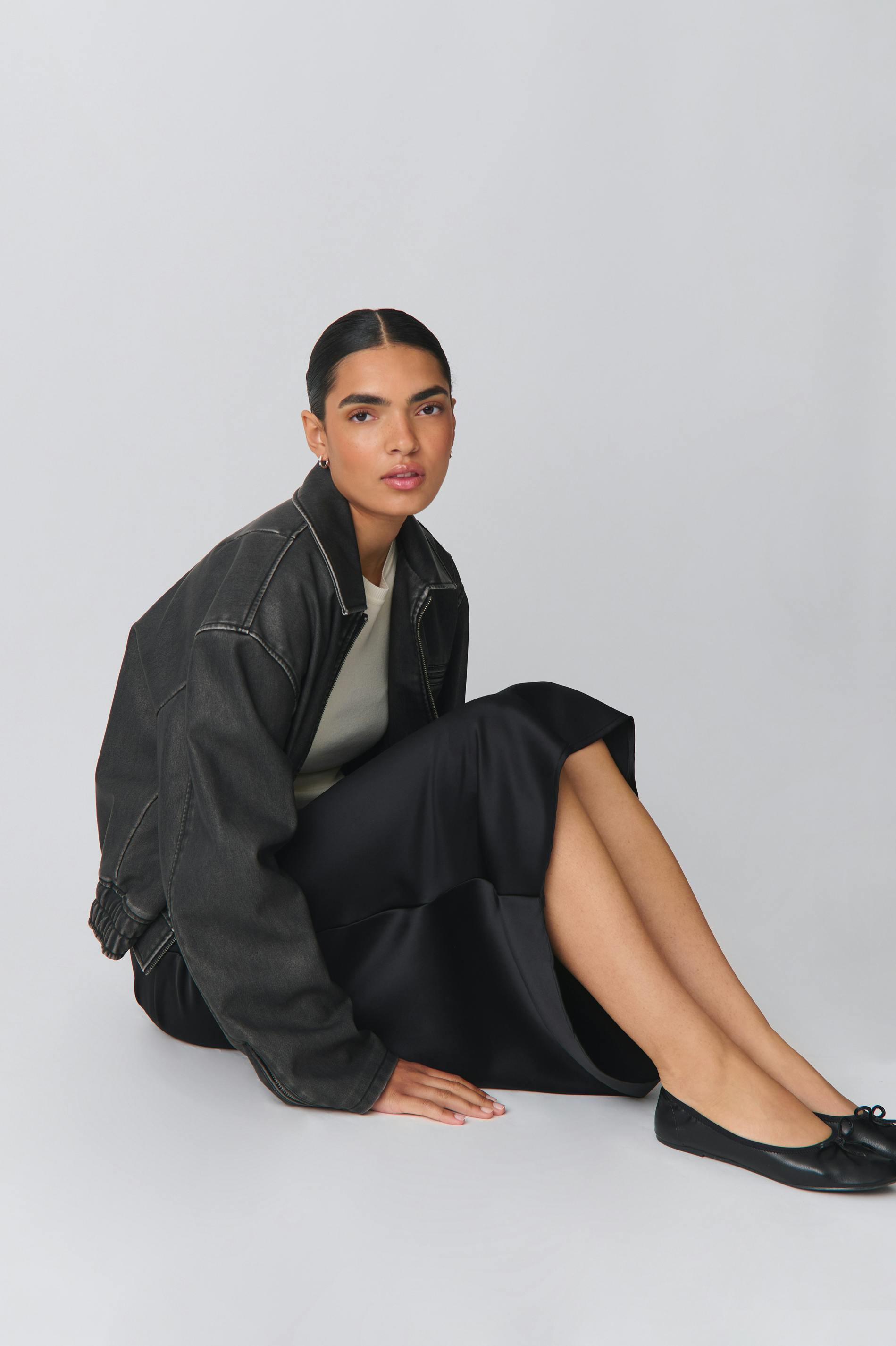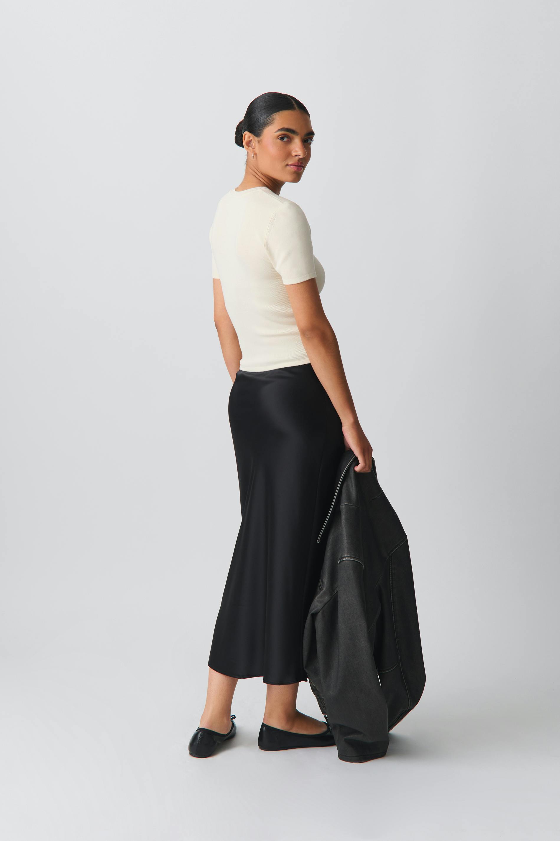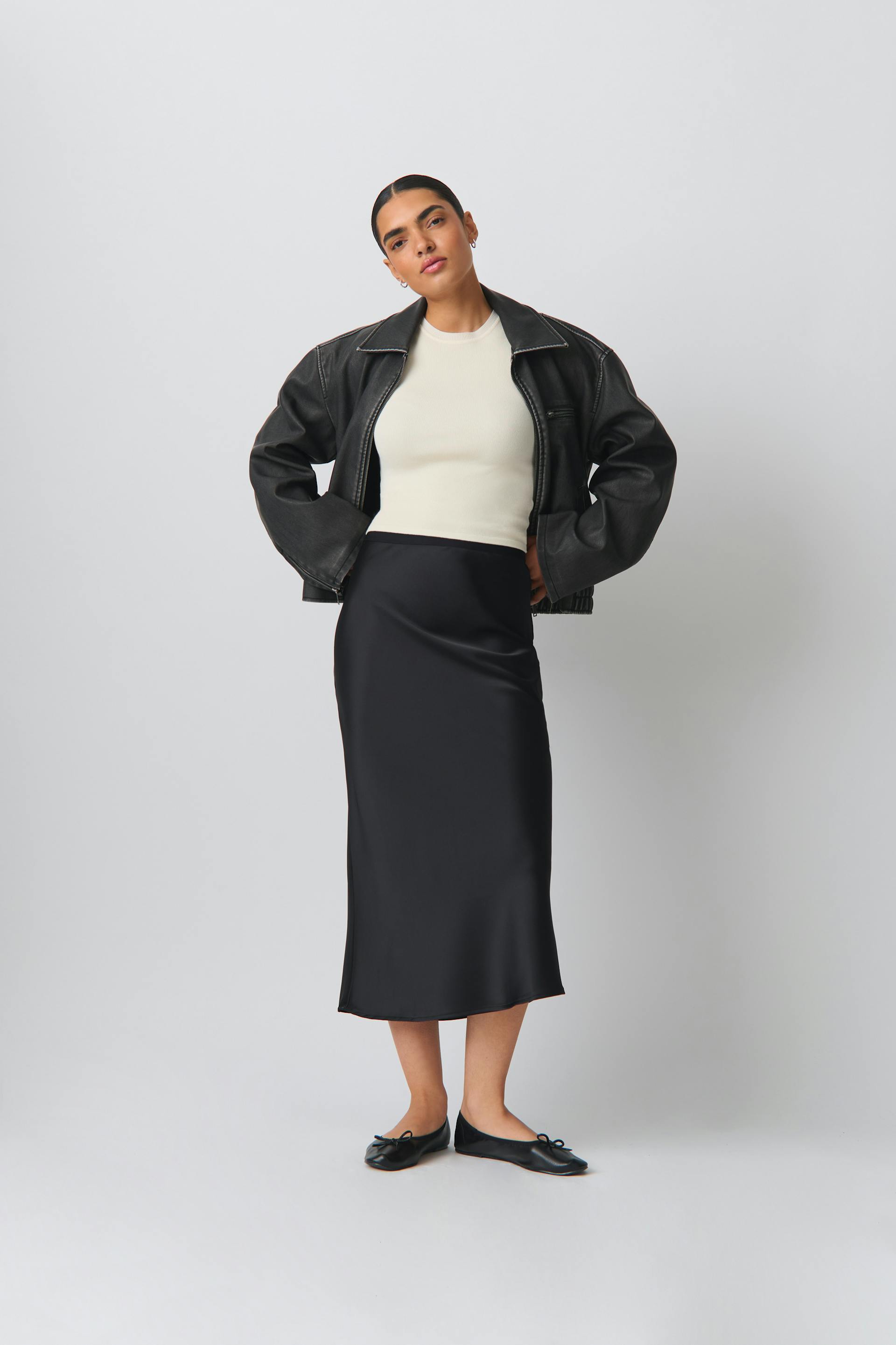 elastic satin midi skirt