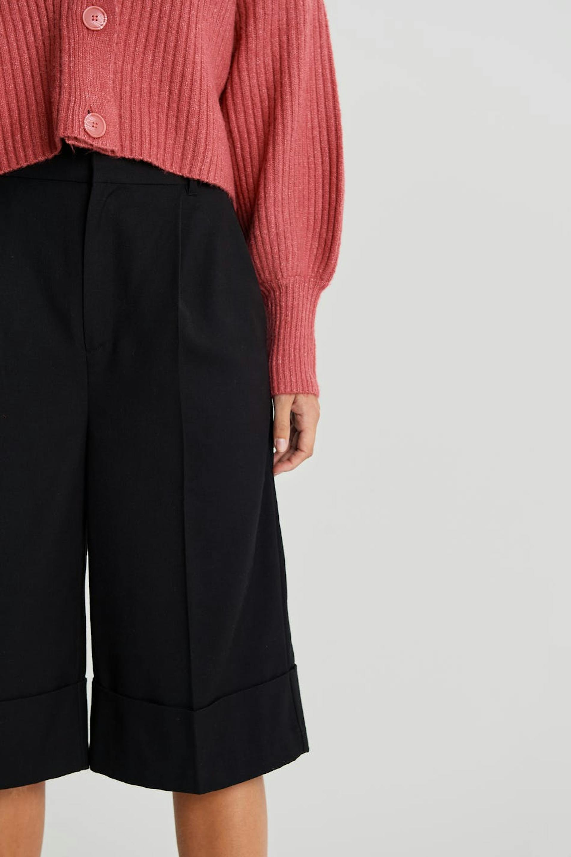 Polveen ulottuva culottes leveillä jaloilla laskoksilla. Culottes on musta.
