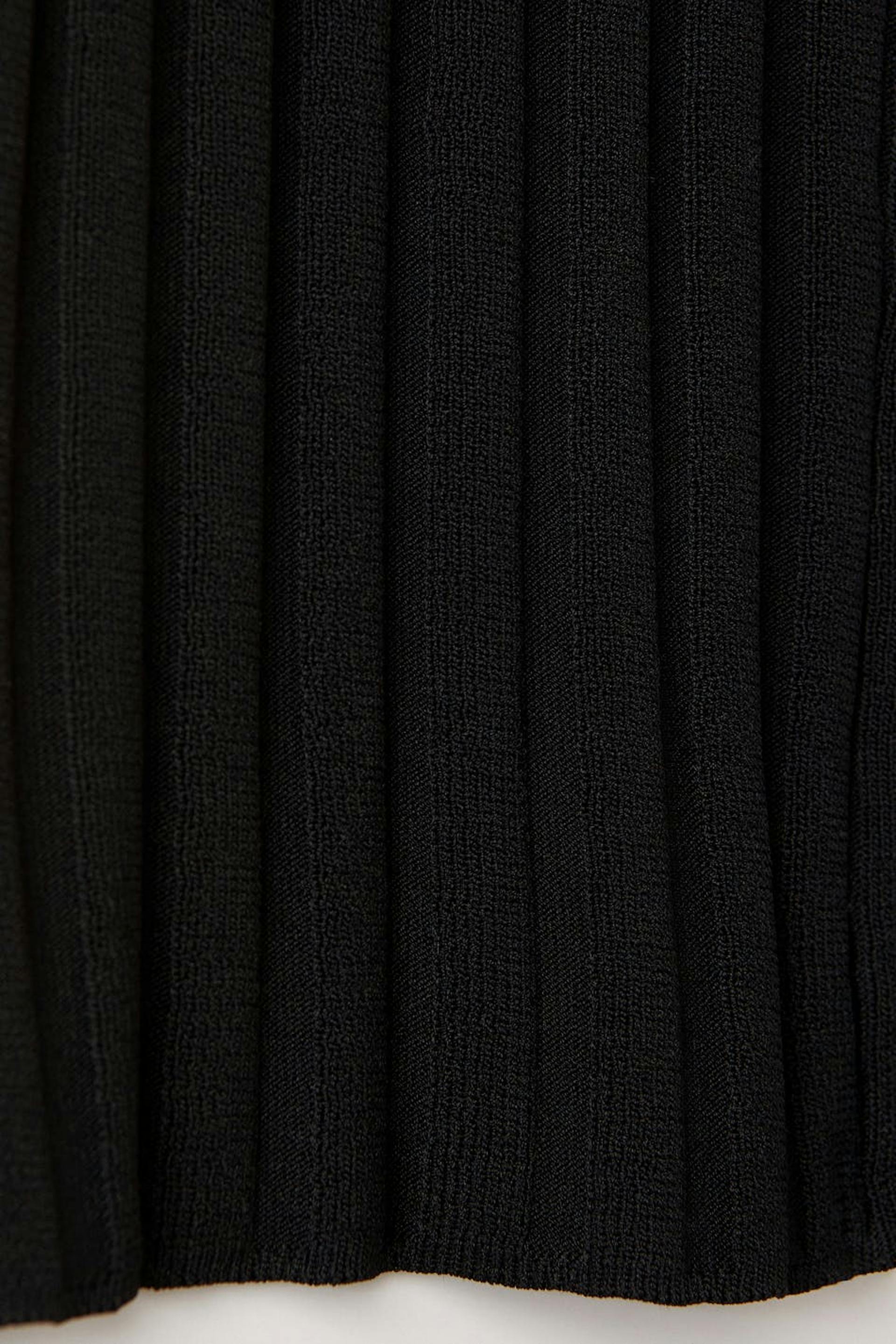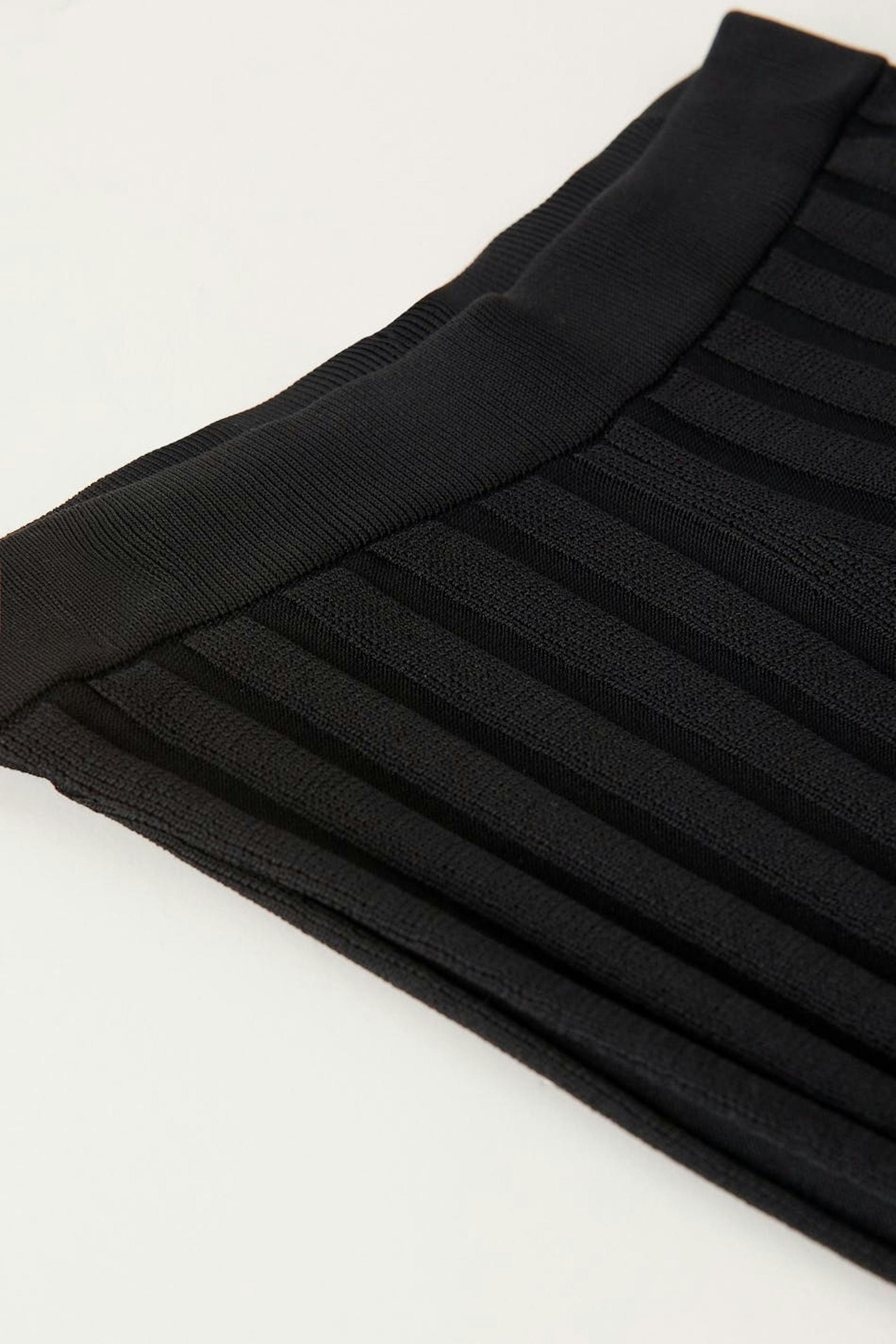 Neulotut housut kuminauhalla vyötäröllä. Housut ovat mustia ja niissä on suorat lahkeet pehmeällä, ribatulla laadulla.