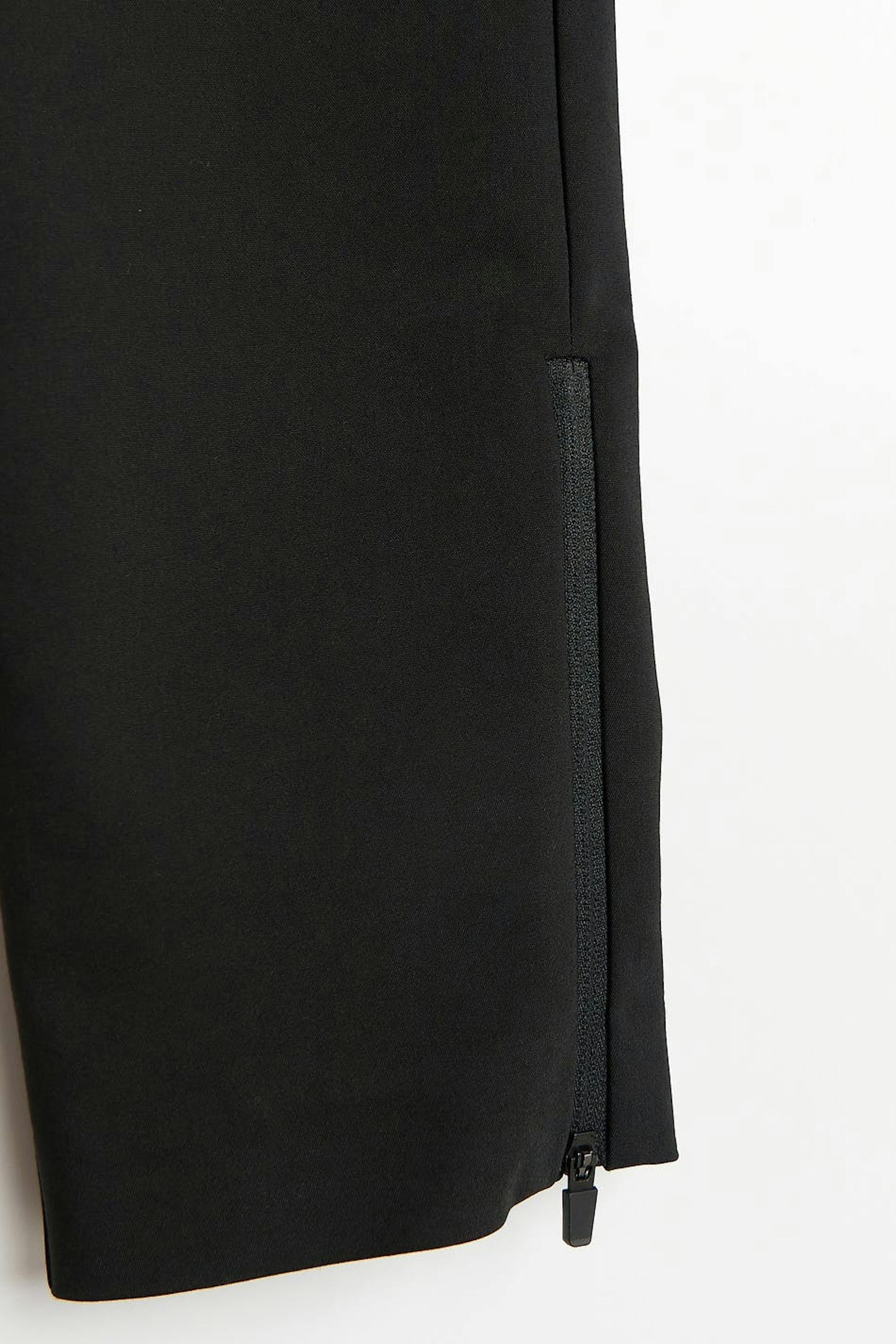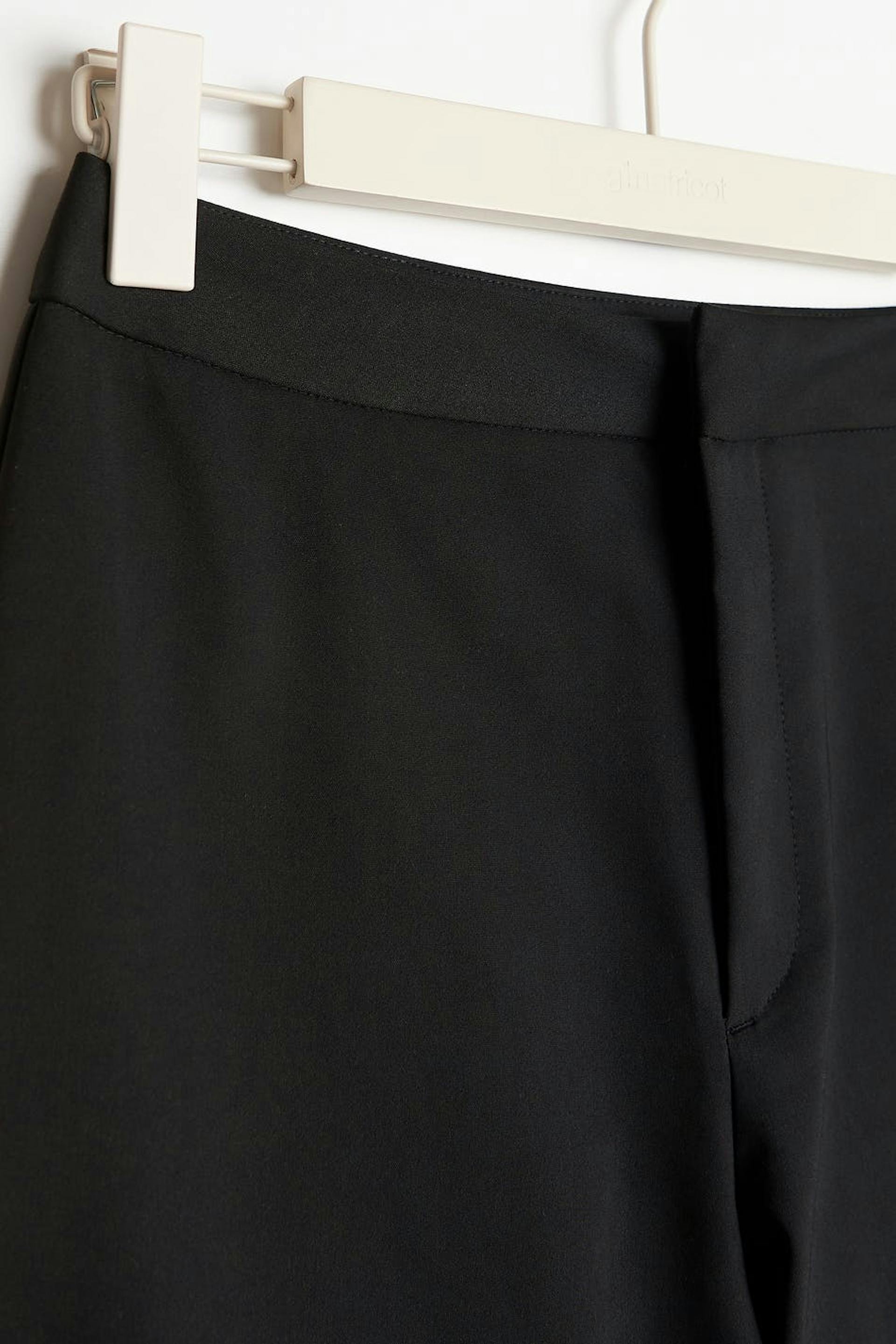 Pitkät housut slim-leikkauksella. Housut ovat mustia ja niissä on halkio vetoketjulla. Niissä on kudottu laatu ja sepalus vetoketjulla. Sinulle, joka olet ainakin 176 cm pitkä.