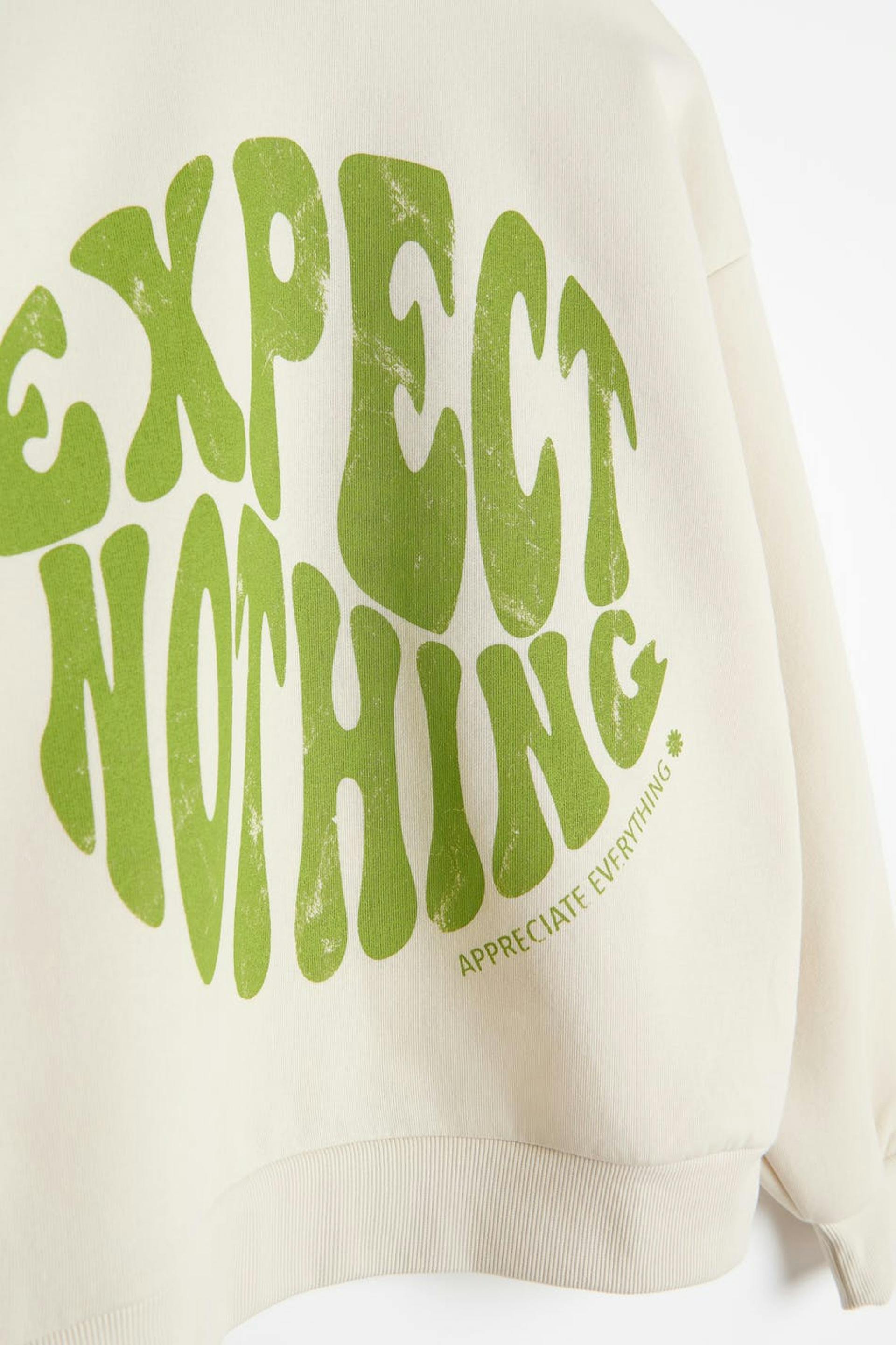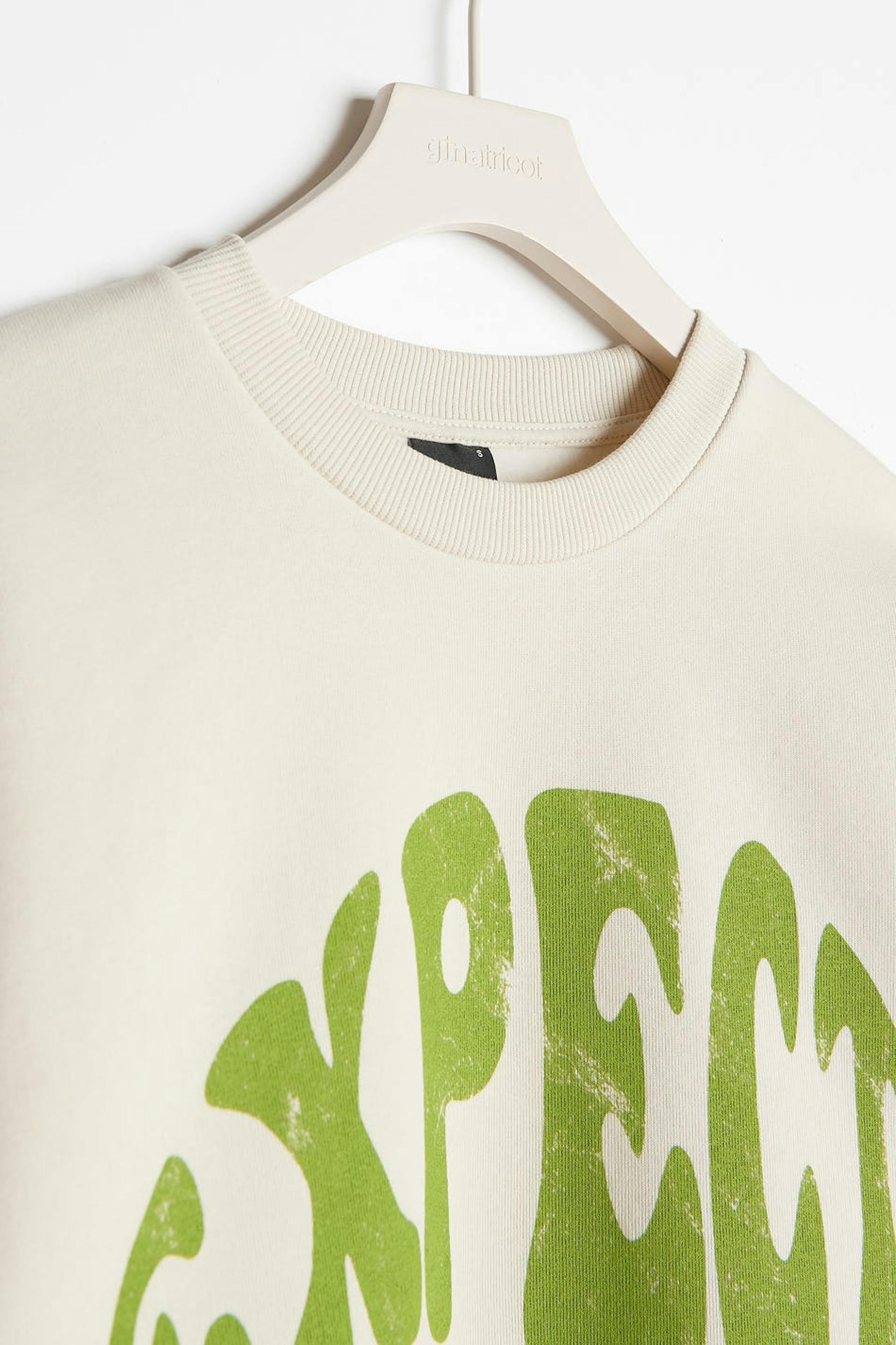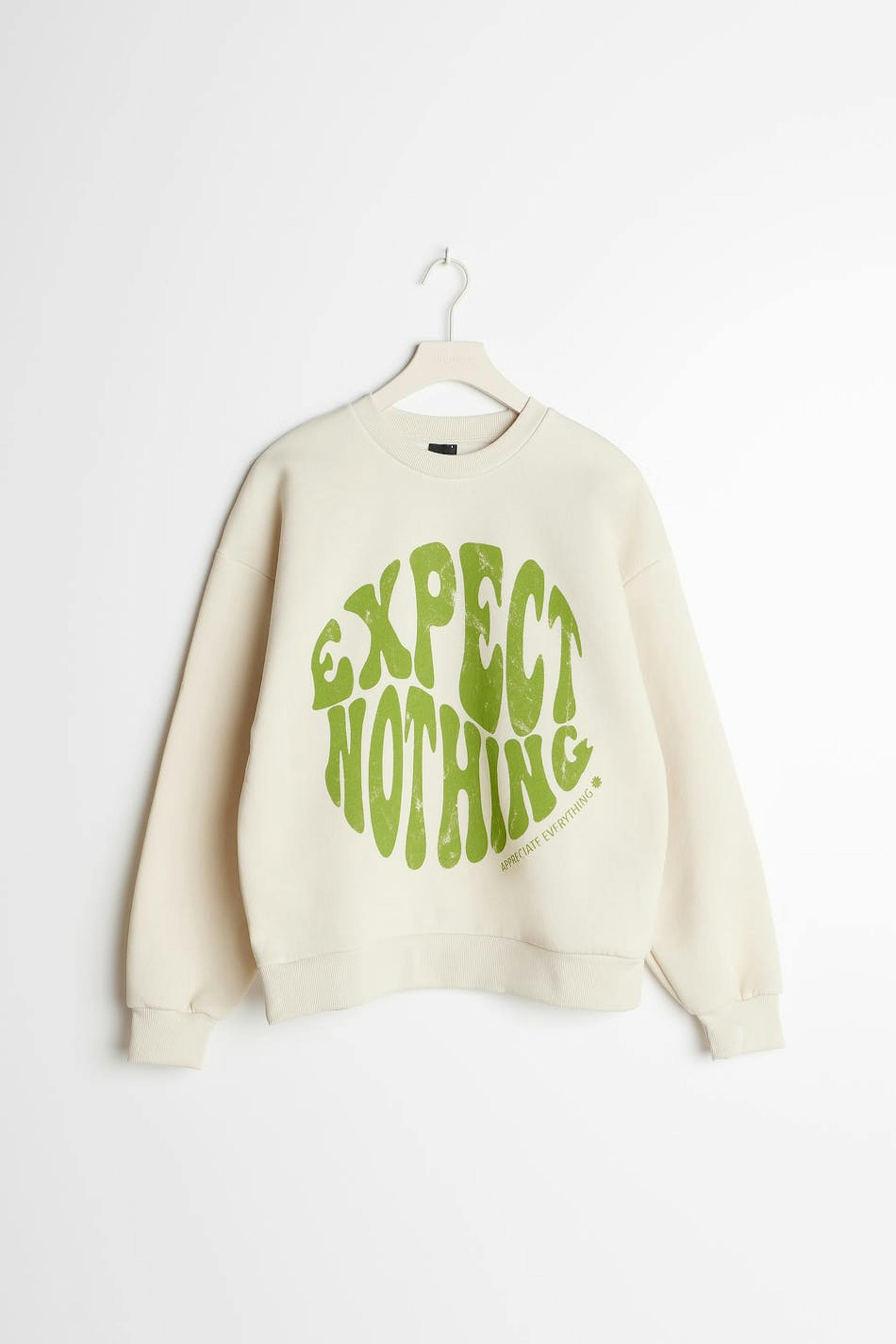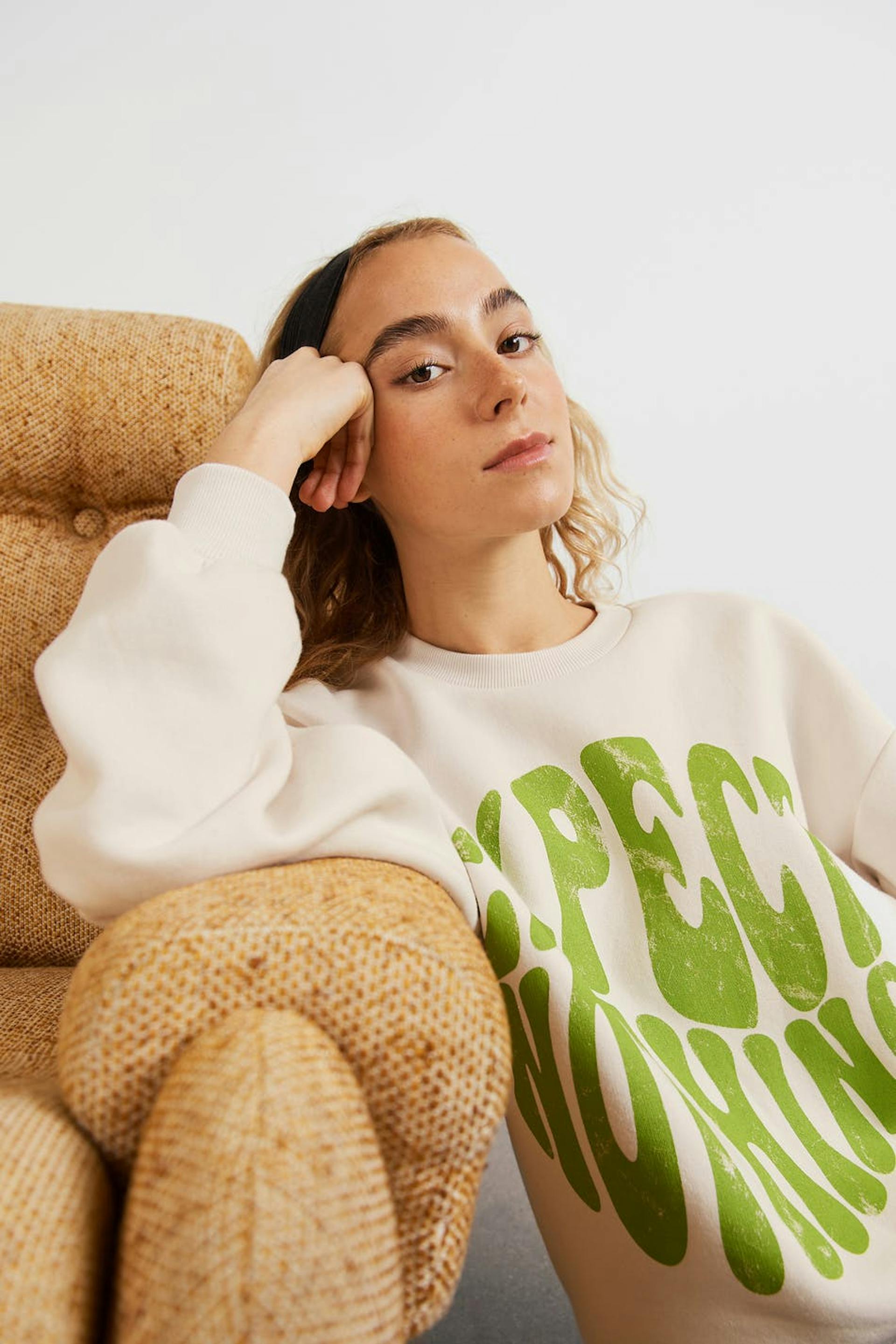 Collegepusero vihreällä printillä. Collegepusero on valkoinen ja siinä on oversized-malli. Siinä on pyöristetty kaula-aukko ja joustinneule hihansuissa ja helmassa. • Materiaali: 70% Puuvilla, 30% Polyesteri • Pesuohjeet: Konepesu enintään 30°C • Tavarantoimittaja: Kardem Tekstil San ve Tic A.-RS • Tuotantoyksikkö: Kaizen d.o.o. Smederevo