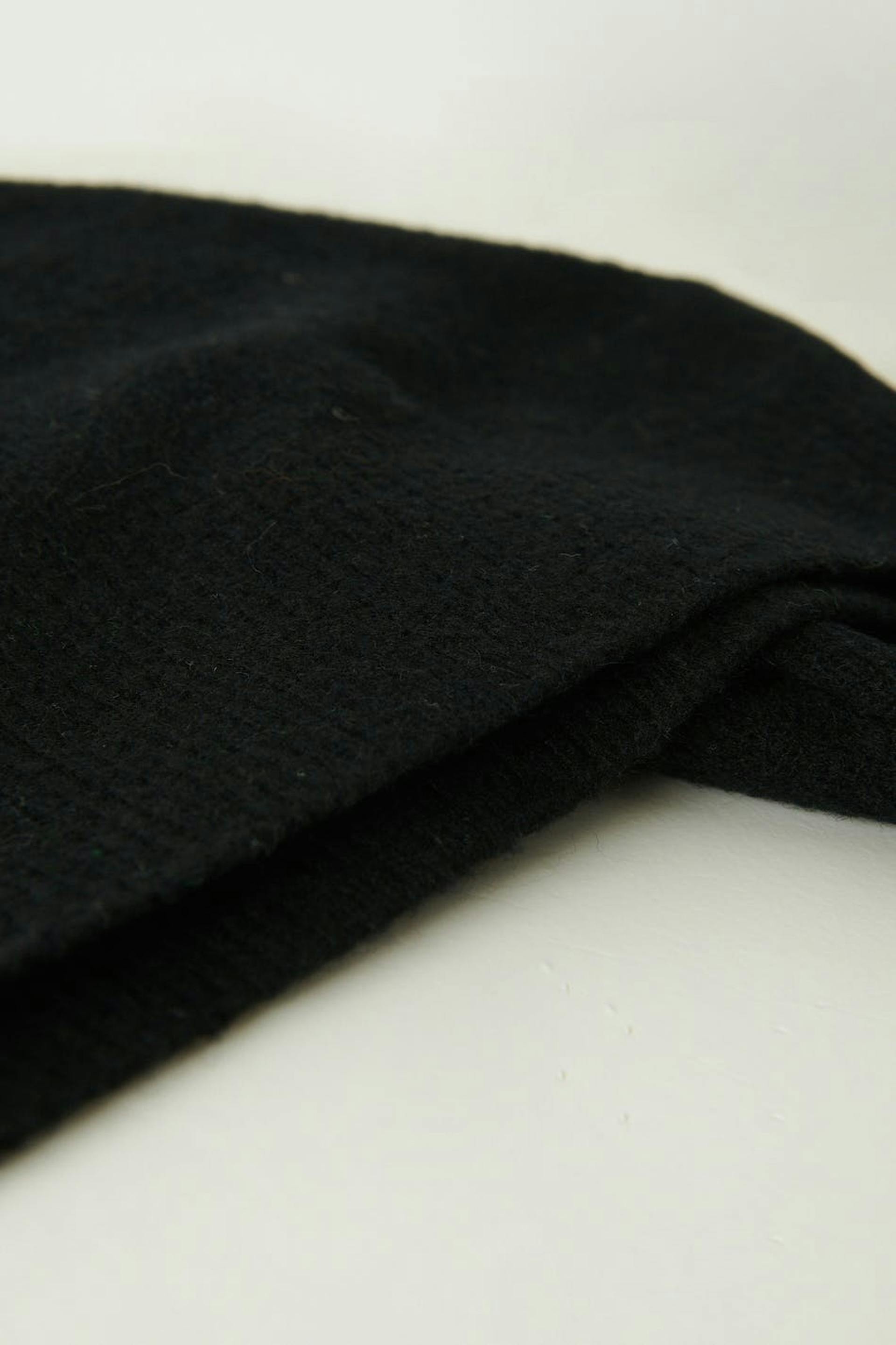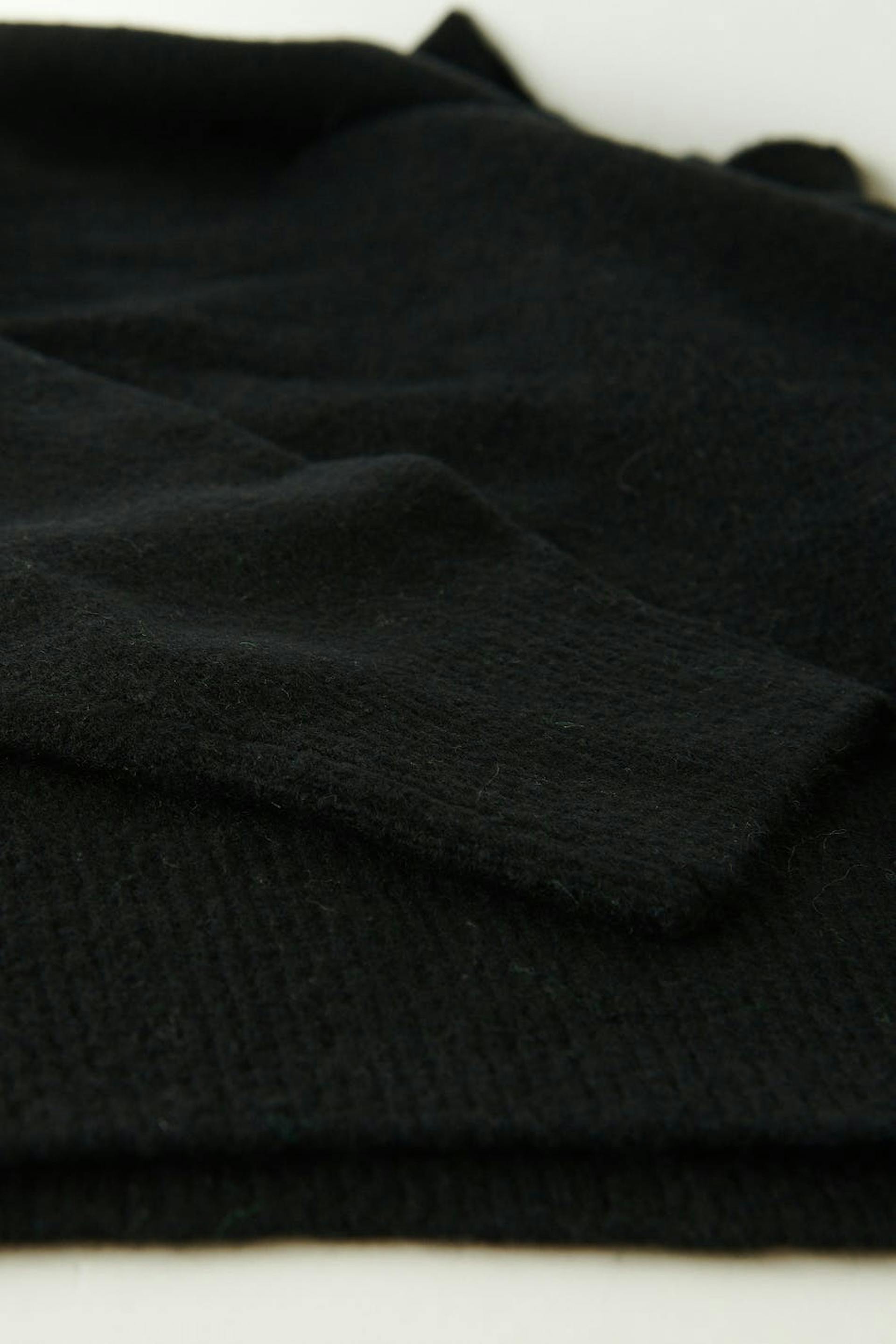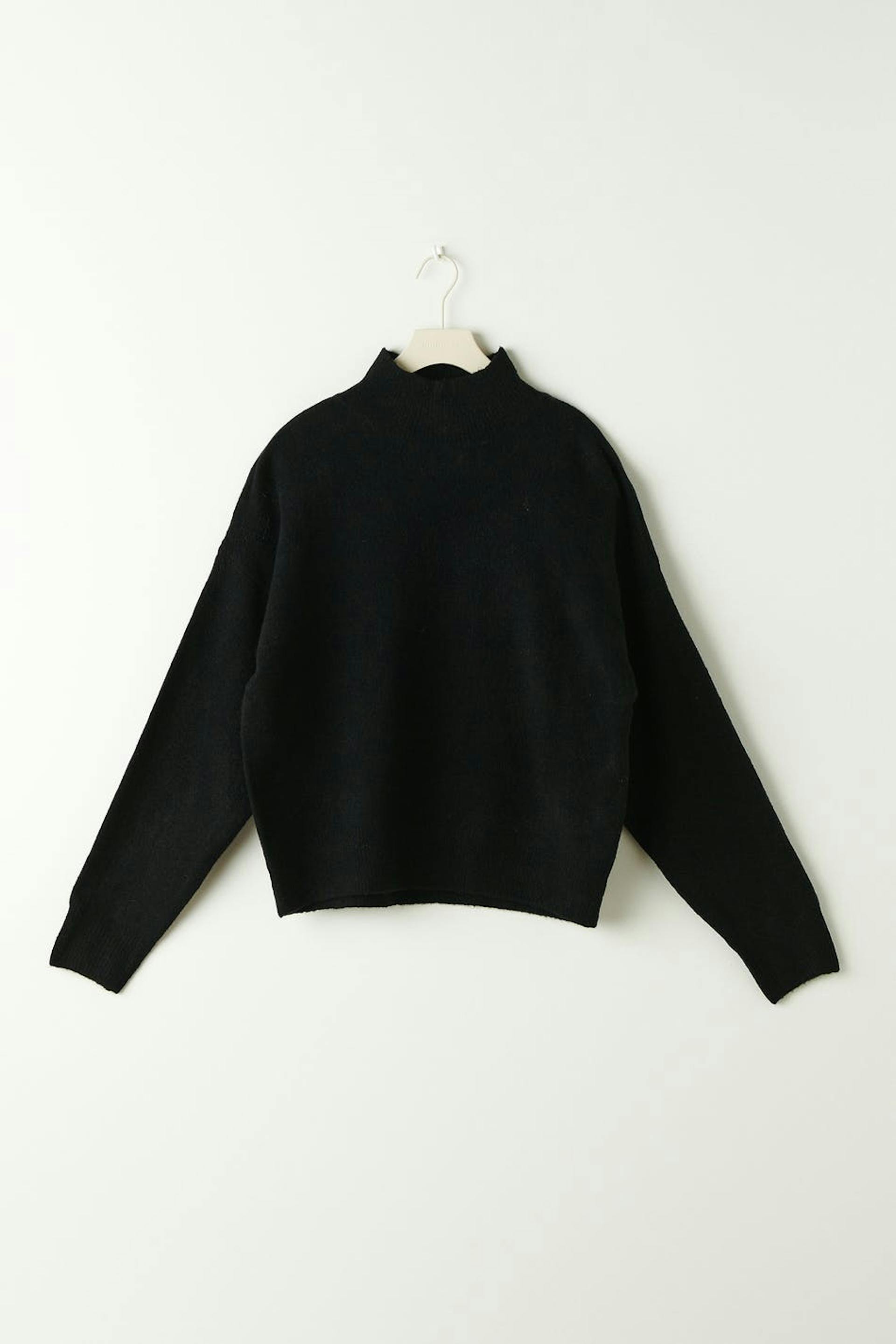Neulottu paita poolokauluksella. Paita on musta ja siinä on laatikkomainen malli. Siinä on pudotetut olkapäät ja resorihelma.