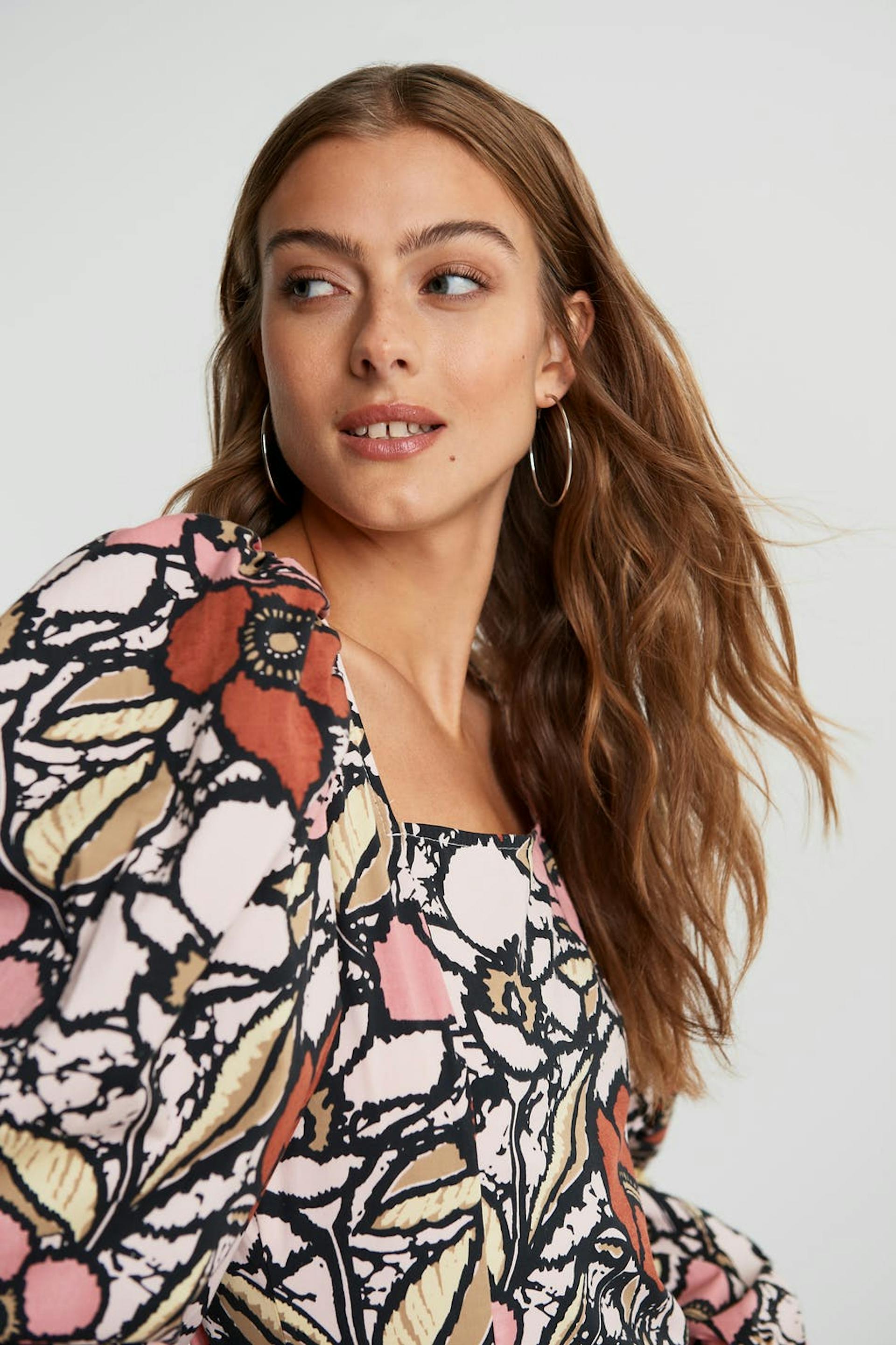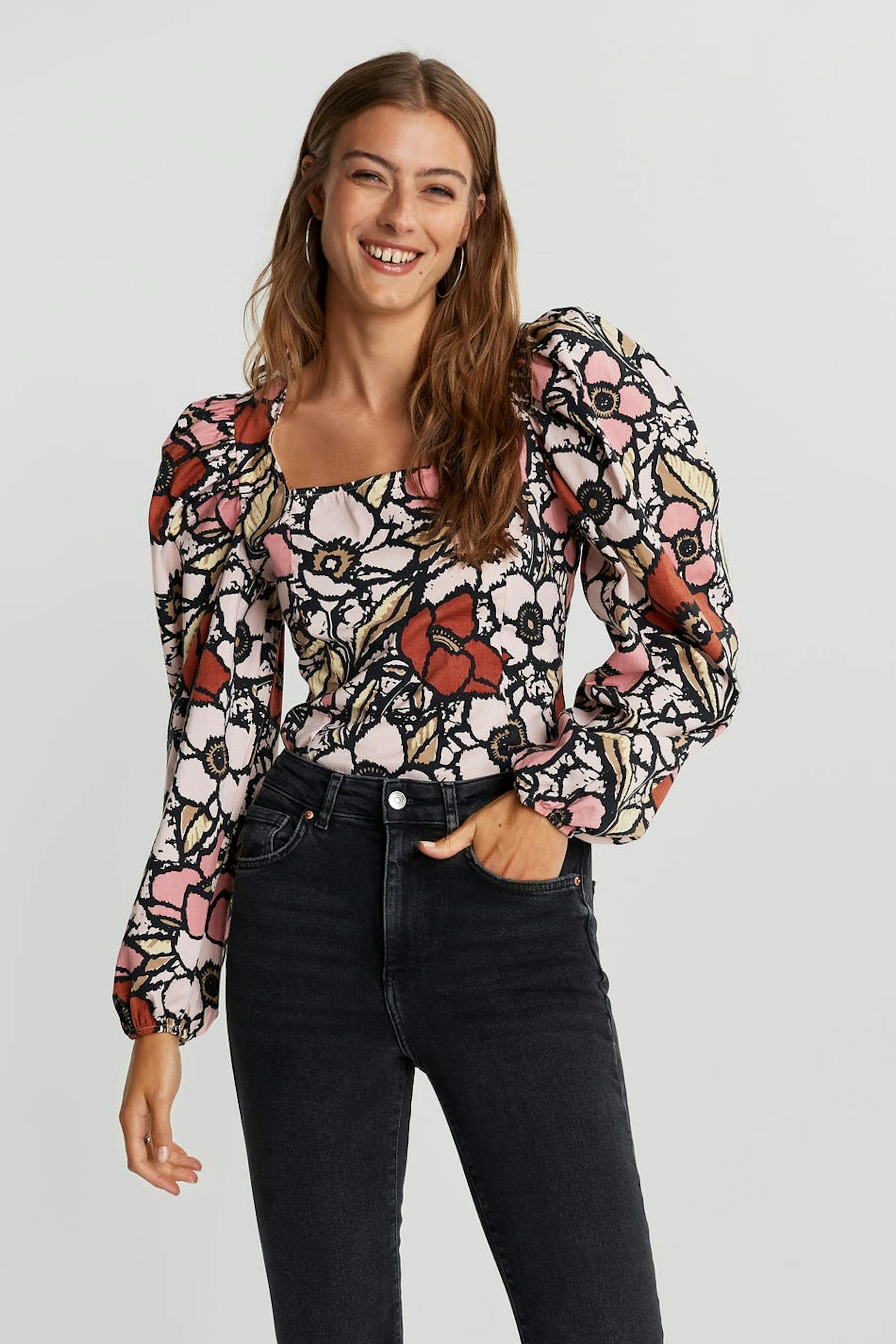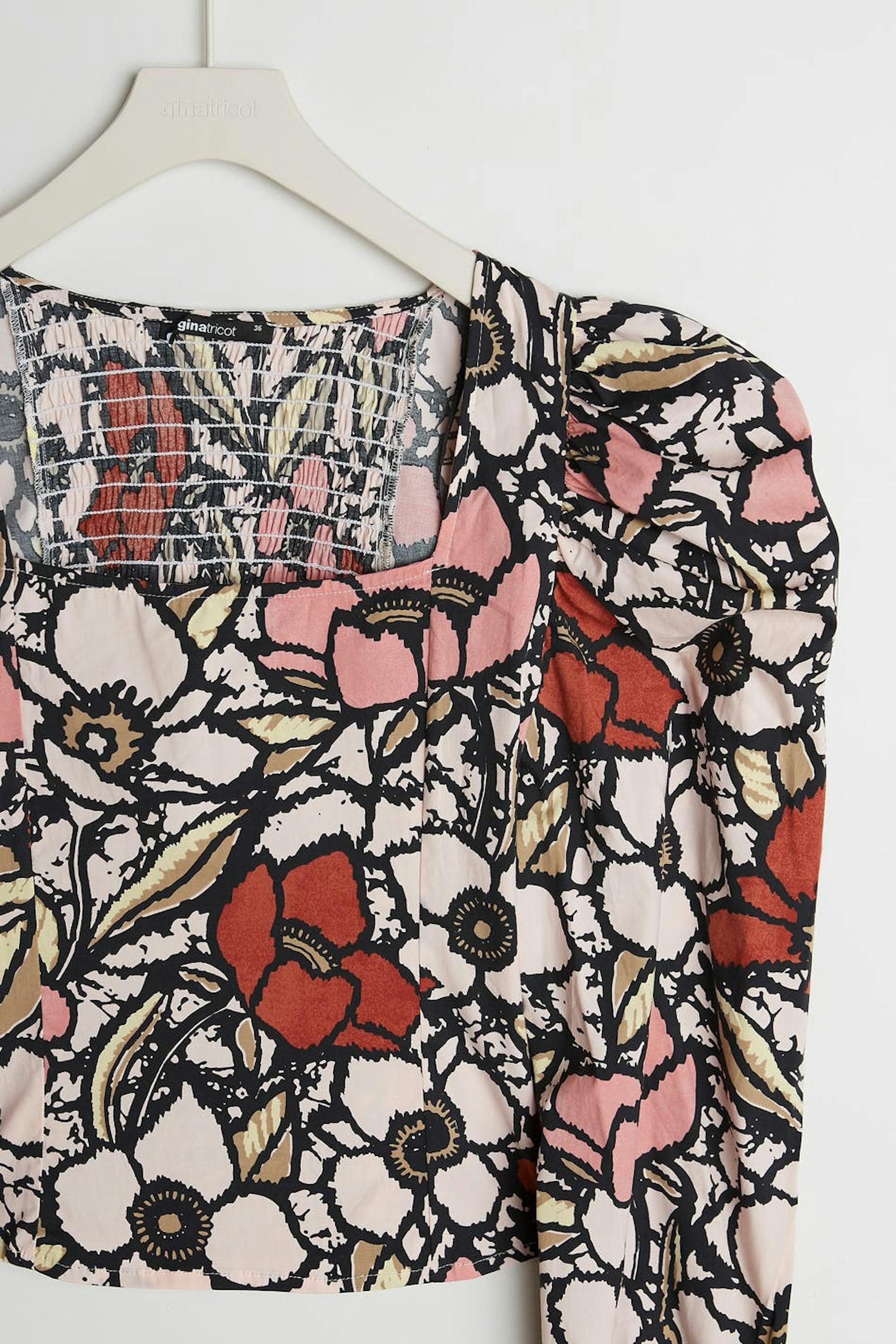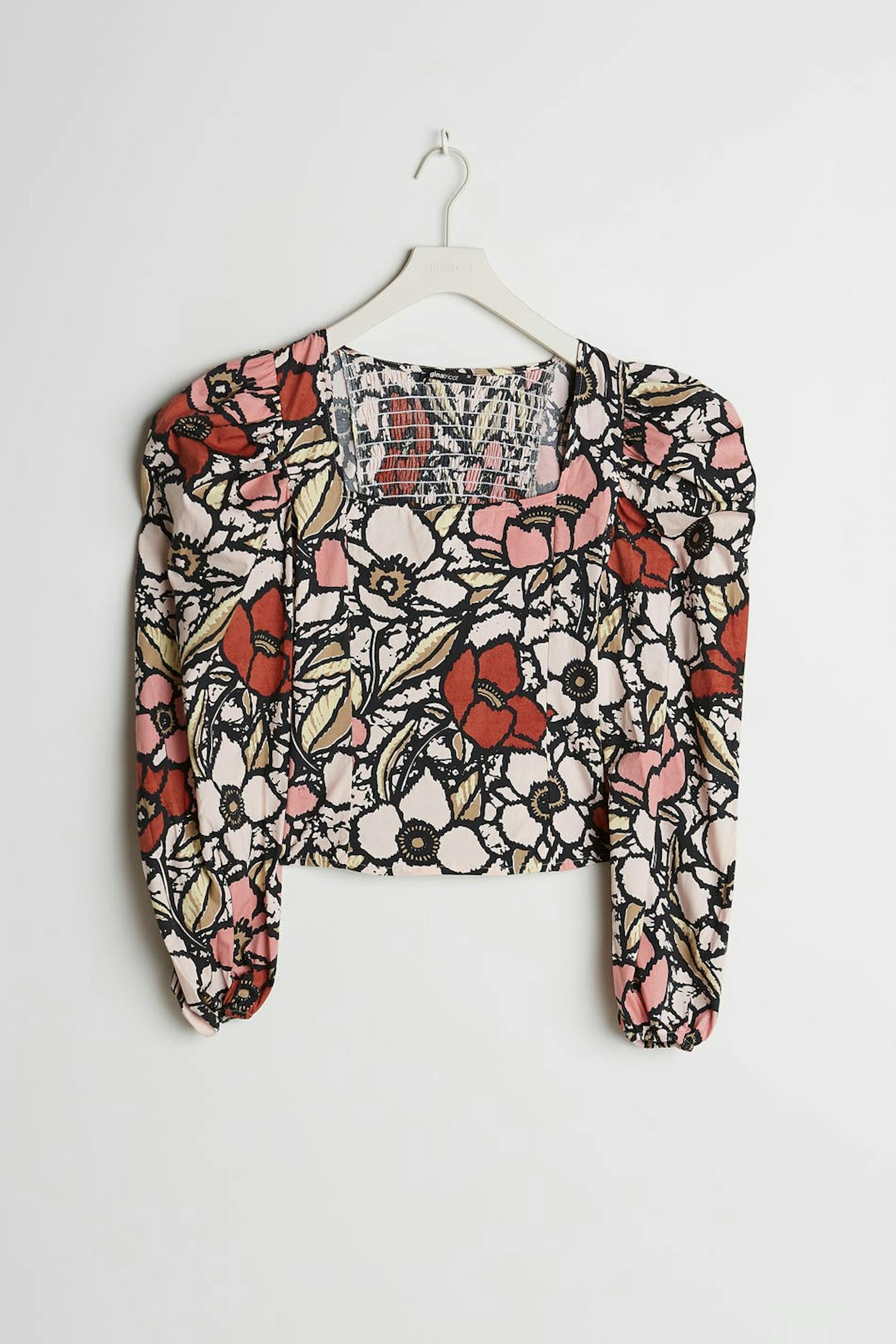 Kukallinen pusero pitkillä, kookkailla puff sleeve-paidoilla. Pusero on punainen ja siinä on neliöpääntie. Se valmistetaan popliinista ja siinä on rypytys selässä ja joustonauha hihansuissa.