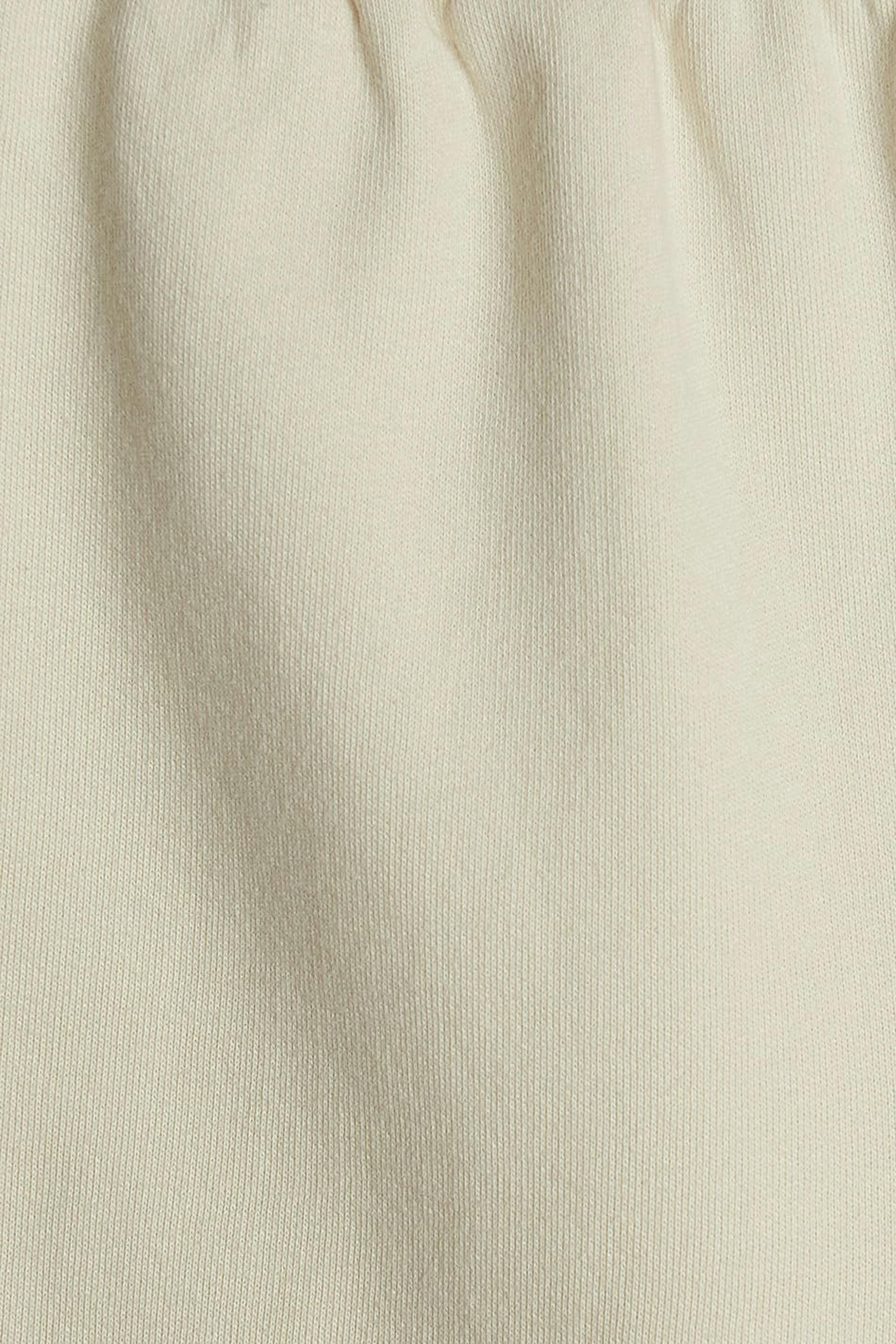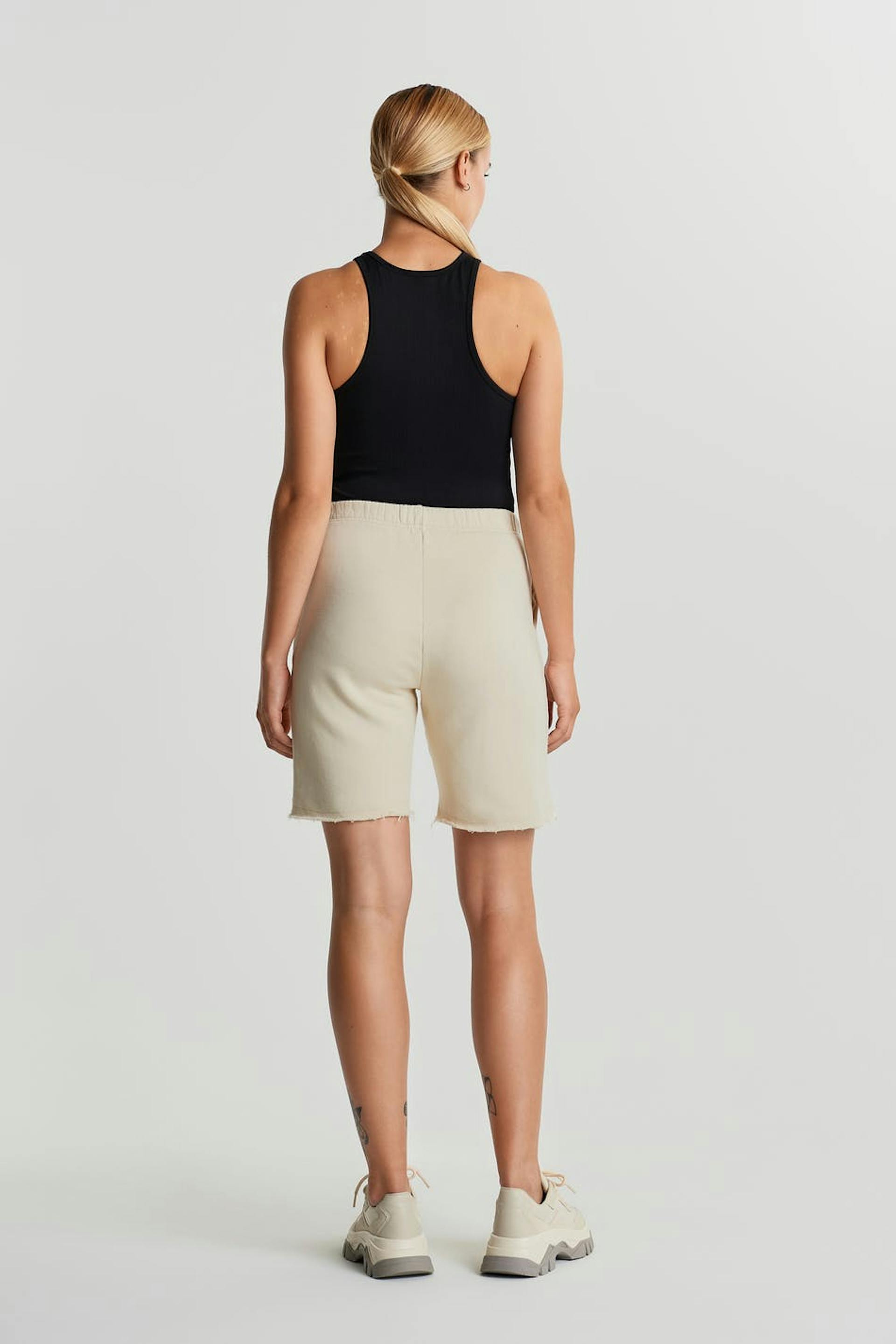 Pehmeät shortsit väljällä istuvuudella. Shortsit ovat valkoisia ja niissä on korkea vyötärö. Niissä on sivutaskut ja joustonauha vyötäröllä.