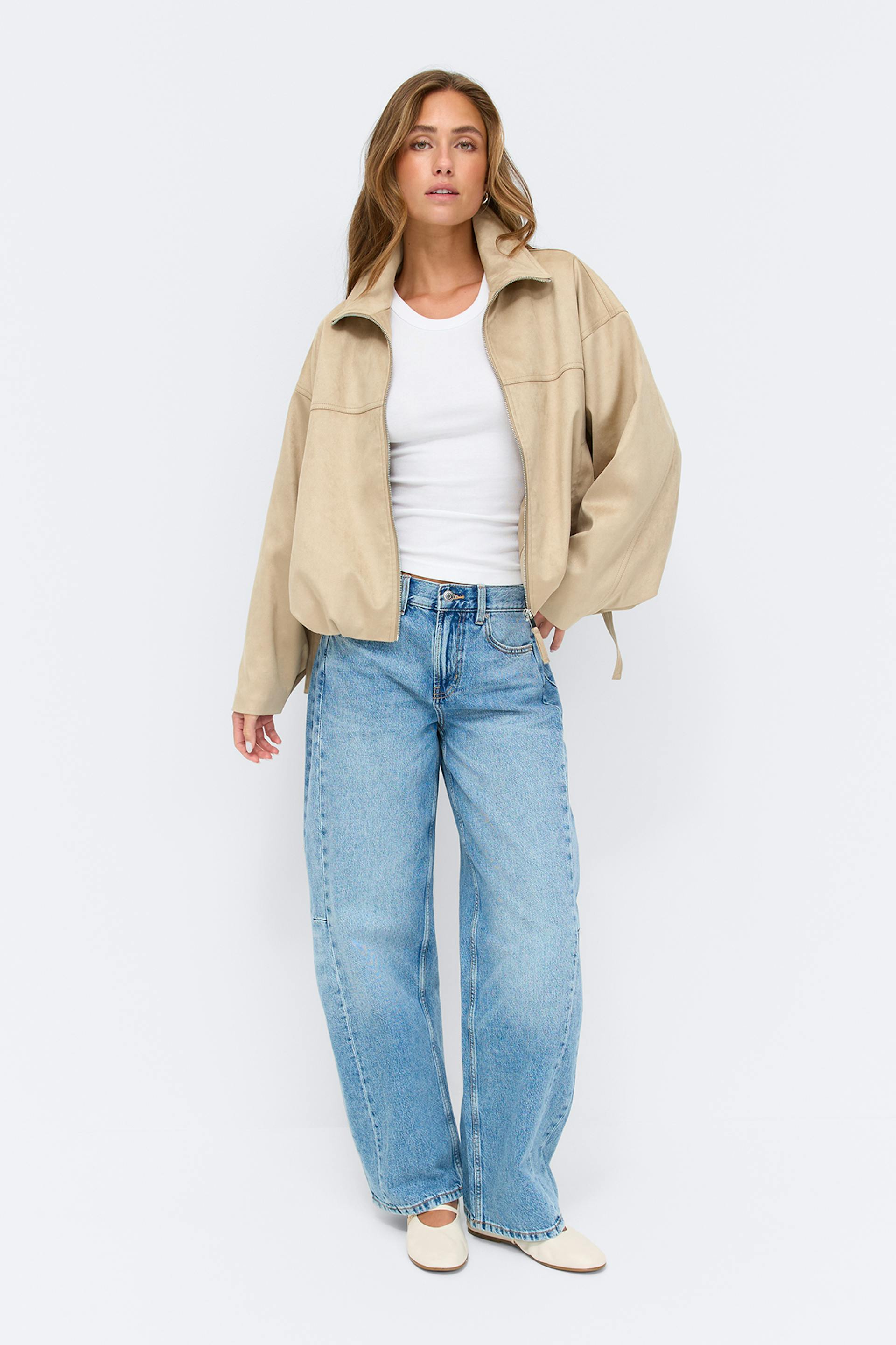 Faux suede high neck jacket