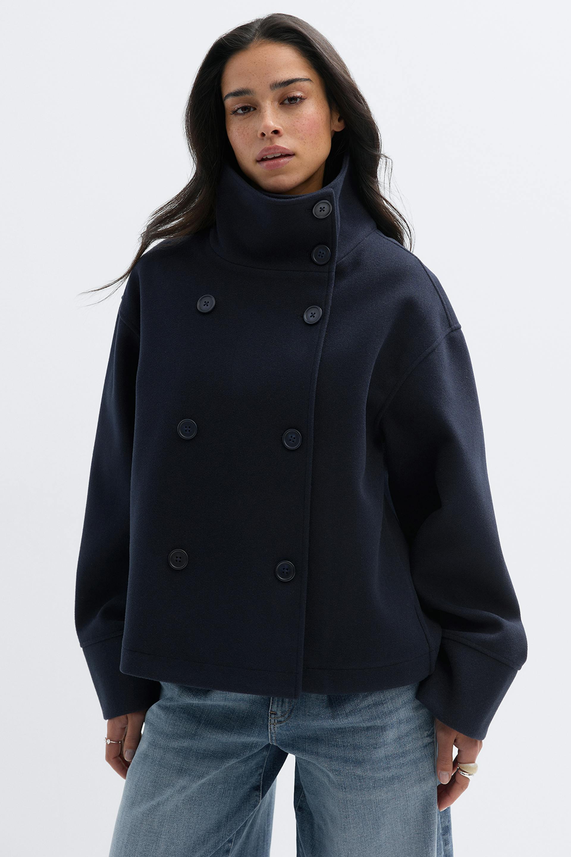 High neck short felt jacket